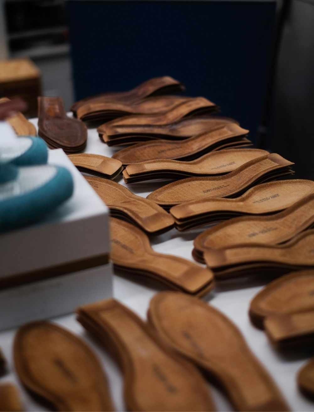 Il s'agit tout simplement d'une pièce de cuir utilisée dans la fabrication des chaussures lors de la phase du montage. Ici, elles sont superposées et alignées en attendant d'être assemblées avec les "tiges" de nos souliers.