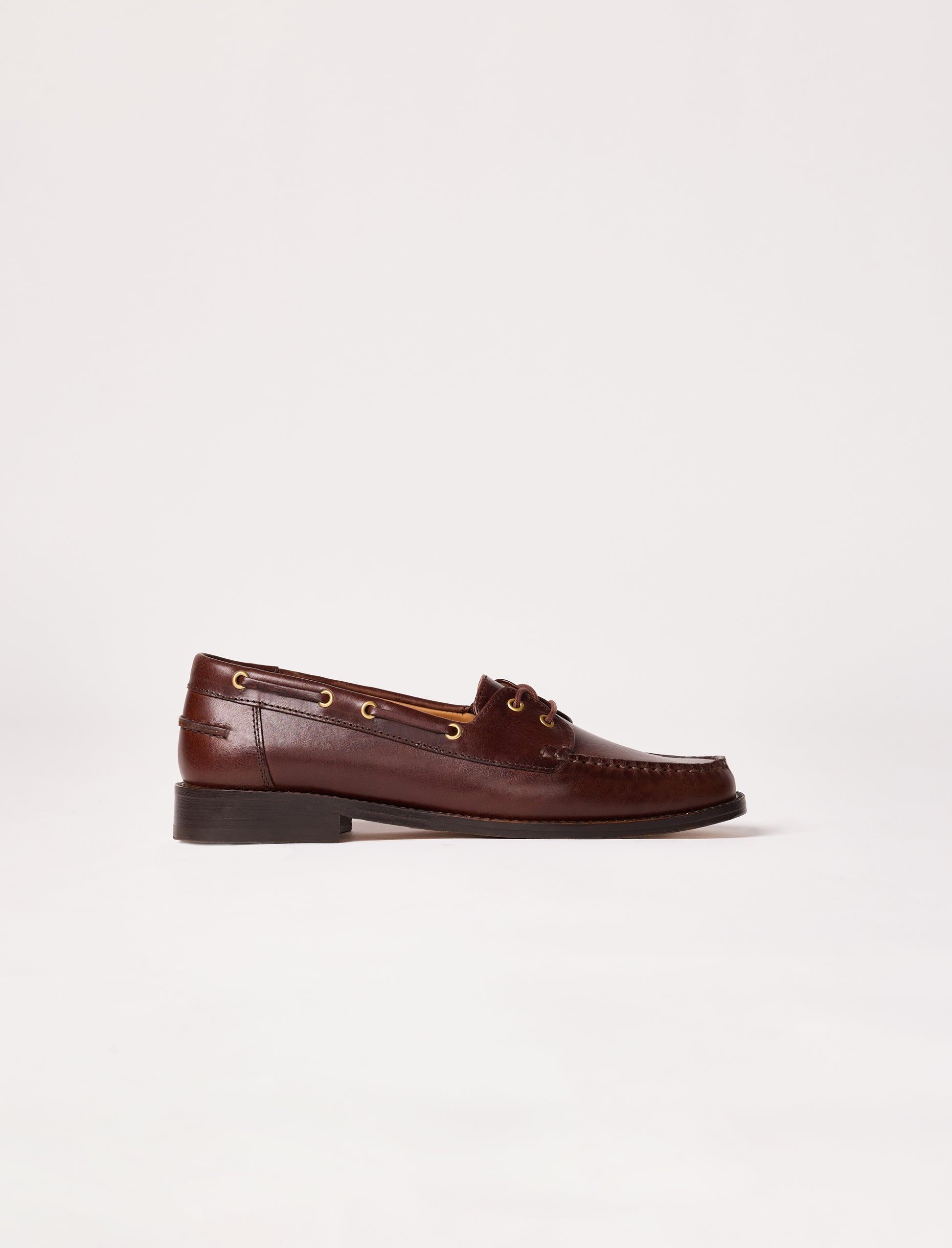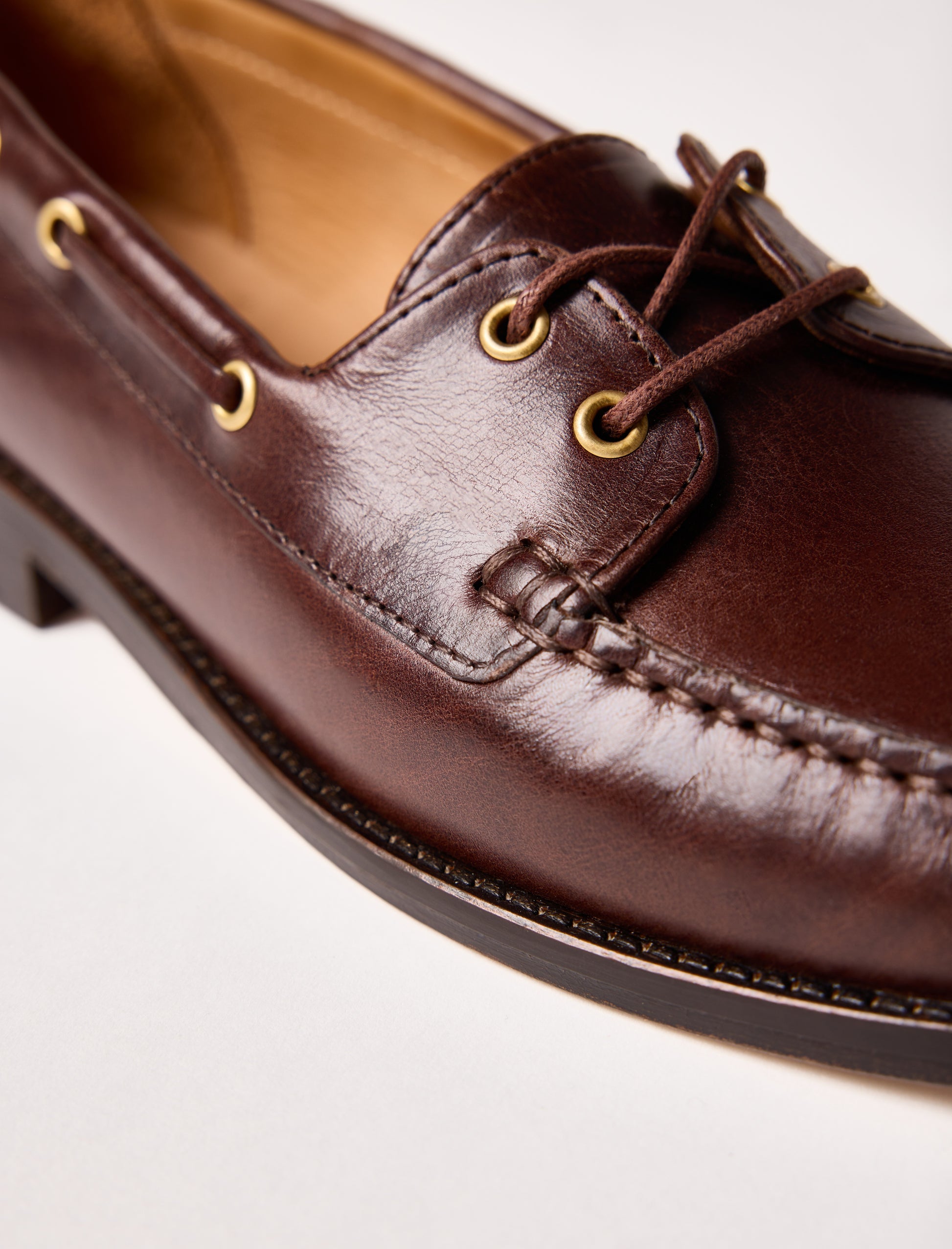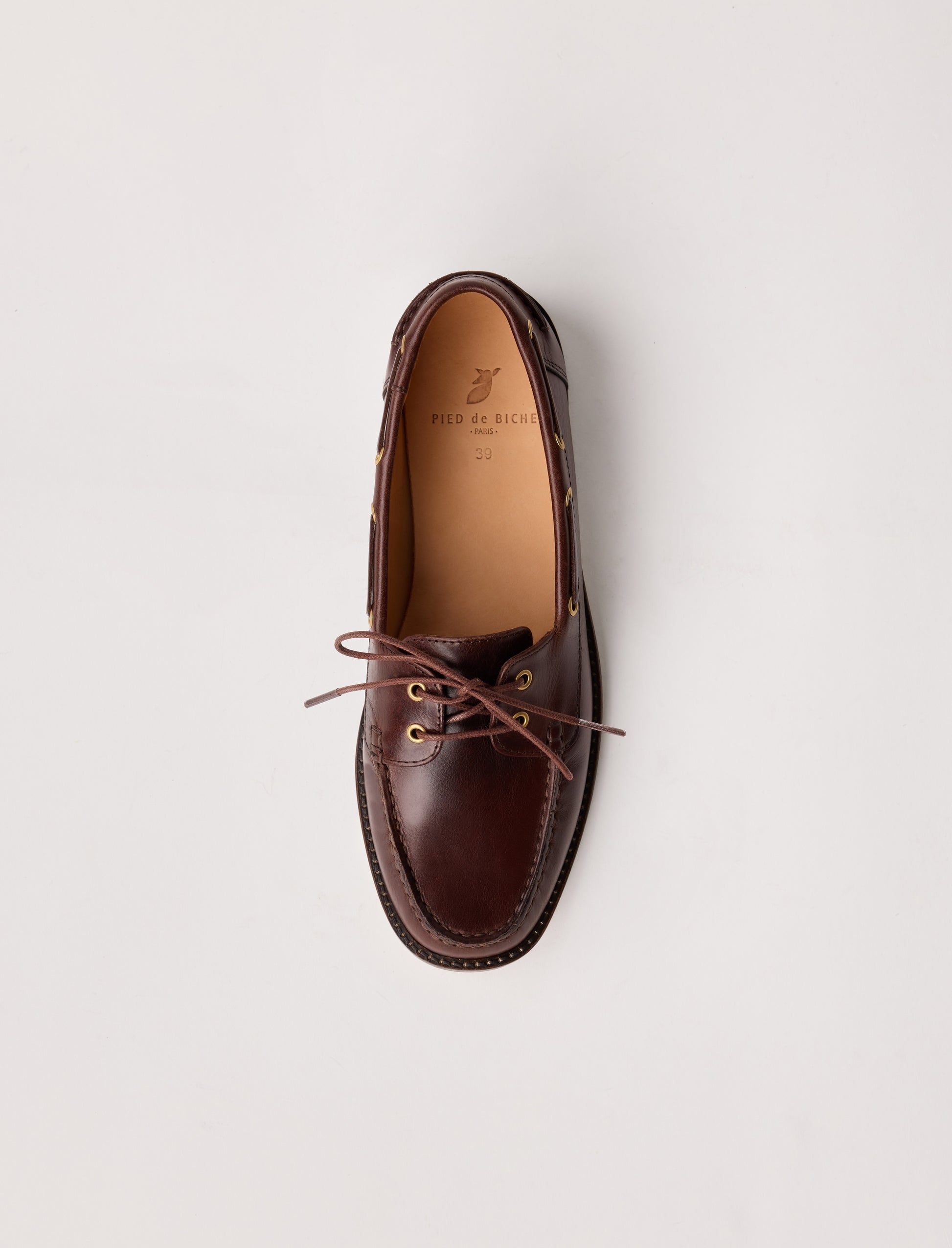 Neuheit der Saison: Der Bootsschuh Albertine interpretiert den klassischen Stil in einer feminineren, urbanen Variante. Gefertigt aus Pull-up-Leder, begeistert er durch seine natürliche Patina, die mit der Zeit an Charakter gewinnt. Seine klare Silhouette, die feinen, gewachsten Baumwollbänder und die lederähnliche Sohle verleihen ihm einen Look, der zugleich elegant und leger ist. Gefertigt im Blake-Nähtverfahren vereint er Komfort mit Raffinesse und bleibt dem handwerklichen Erbe von Pied de Biche treu.