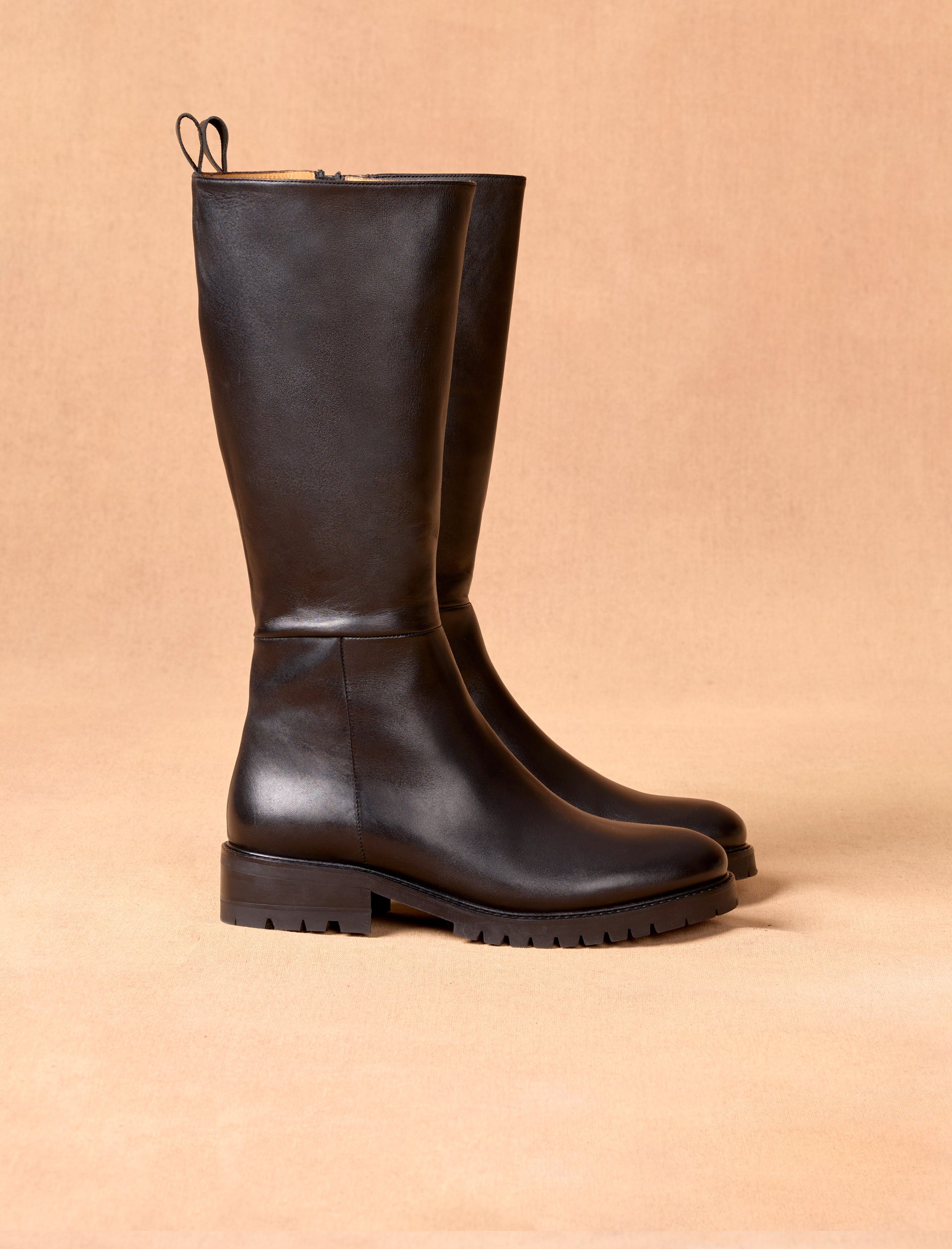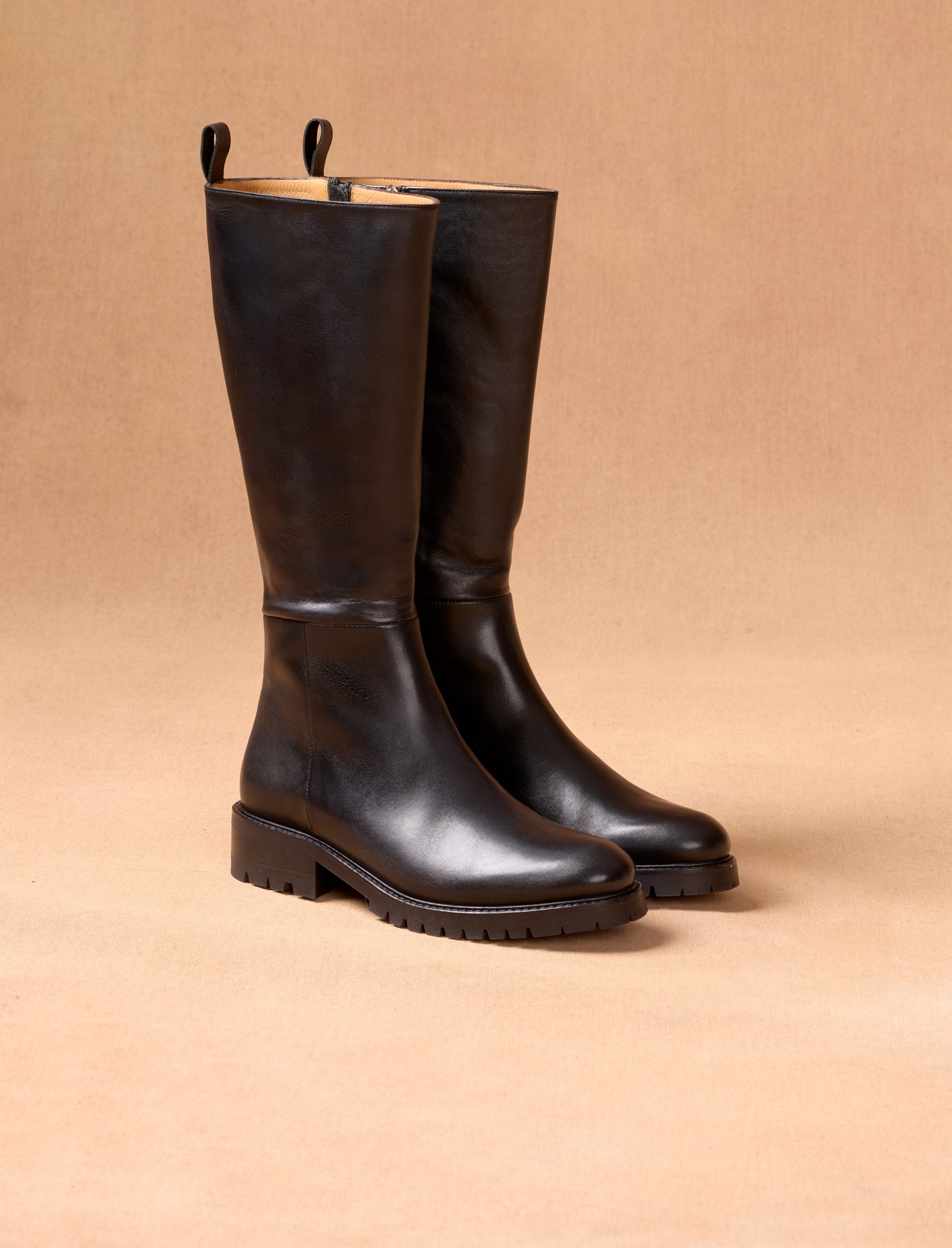 Ingrid, das sind elegante Lederstiefel mit einer modischen, profilierte Sohle.