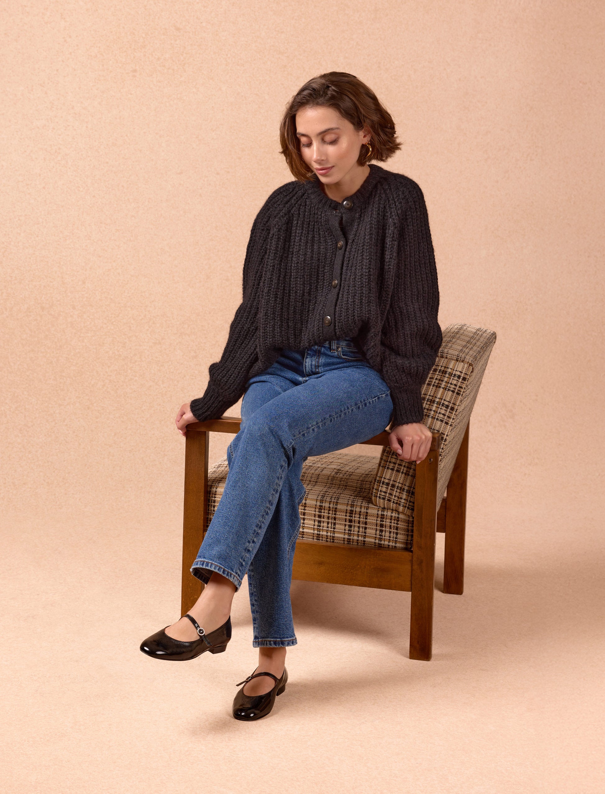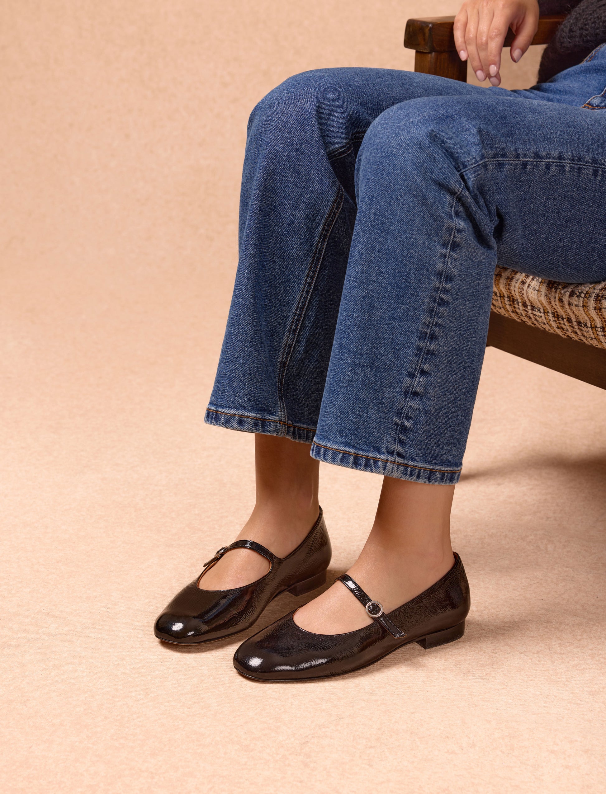 - Ballerinas aus schwarzem, lackiertem Ziegenleder