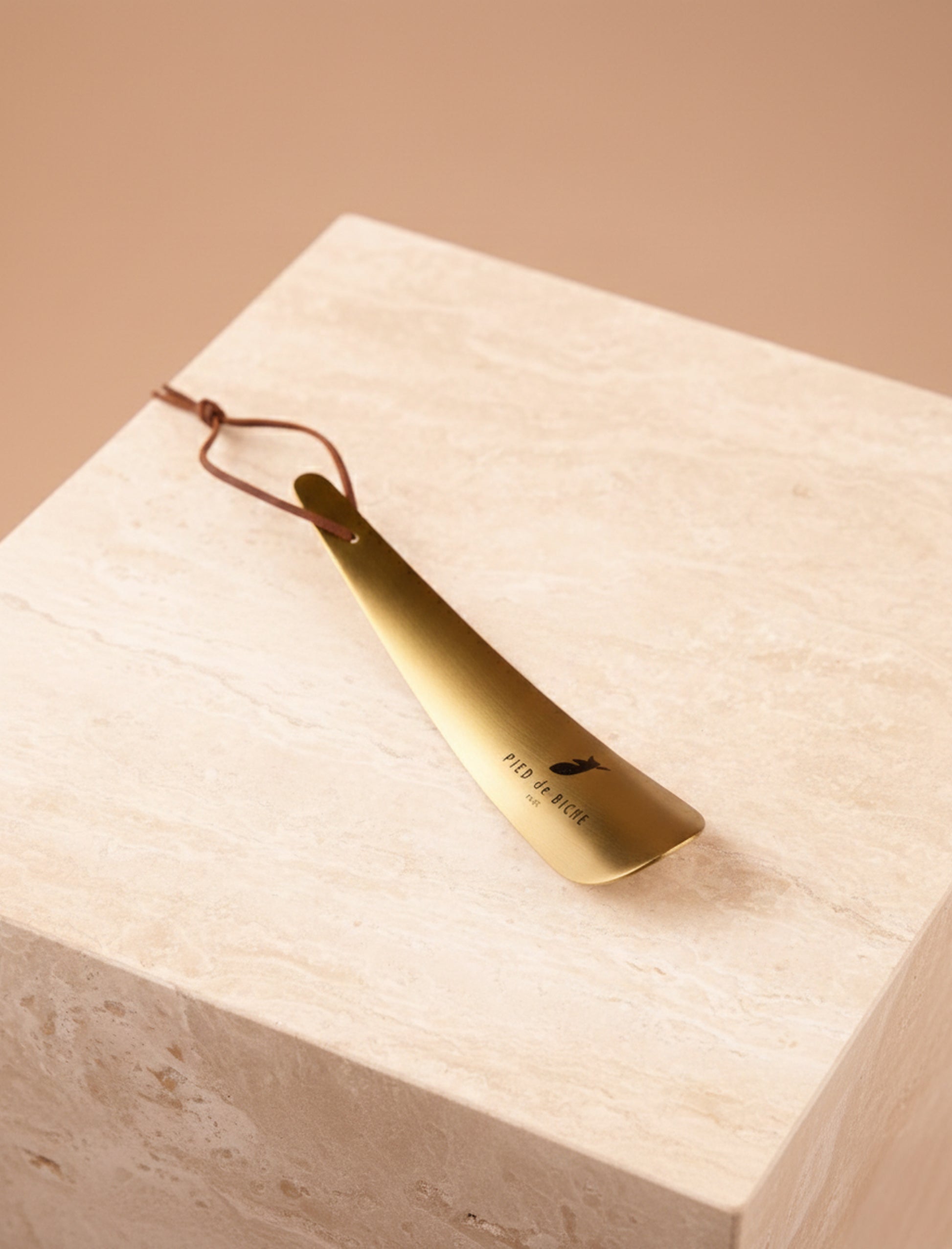 - Metallklinge mit gebogener Form, die das Anziehen der Schuhe erleichtert