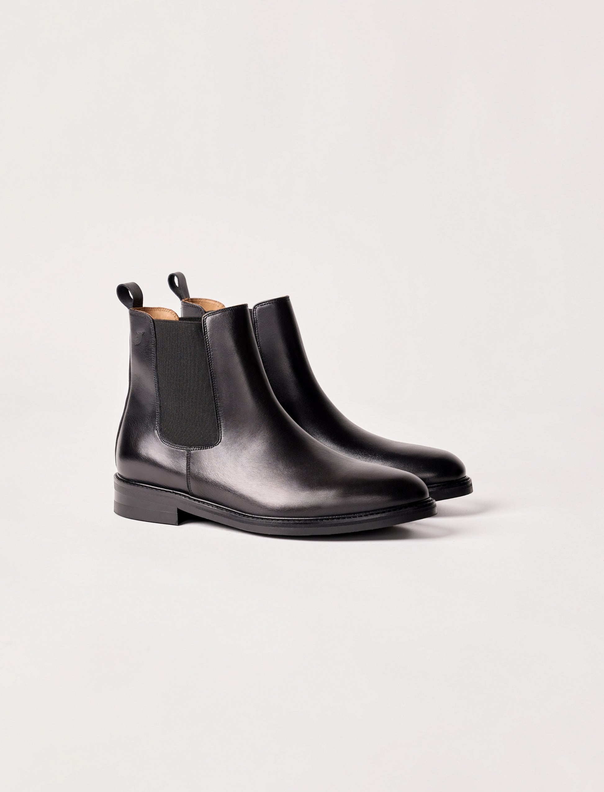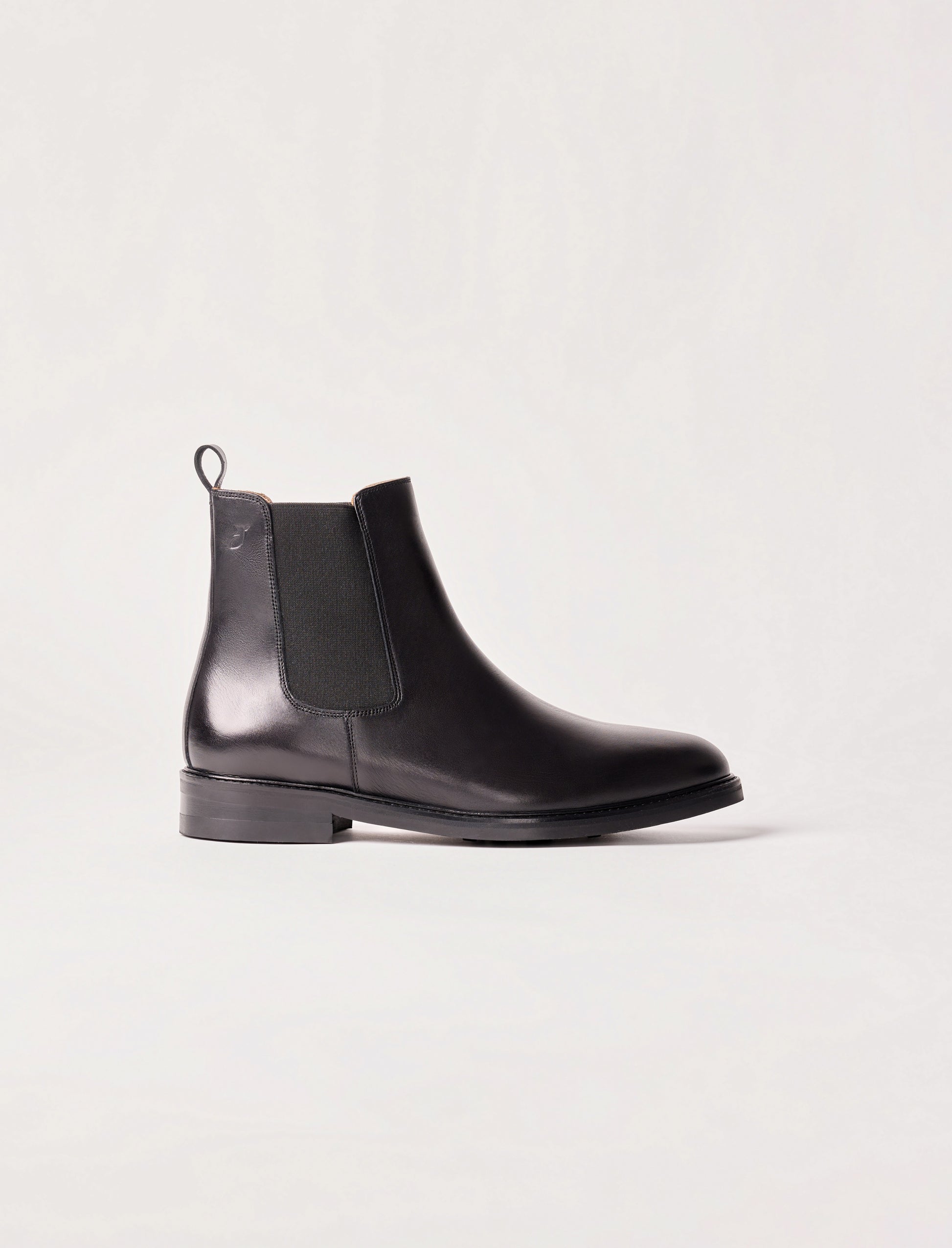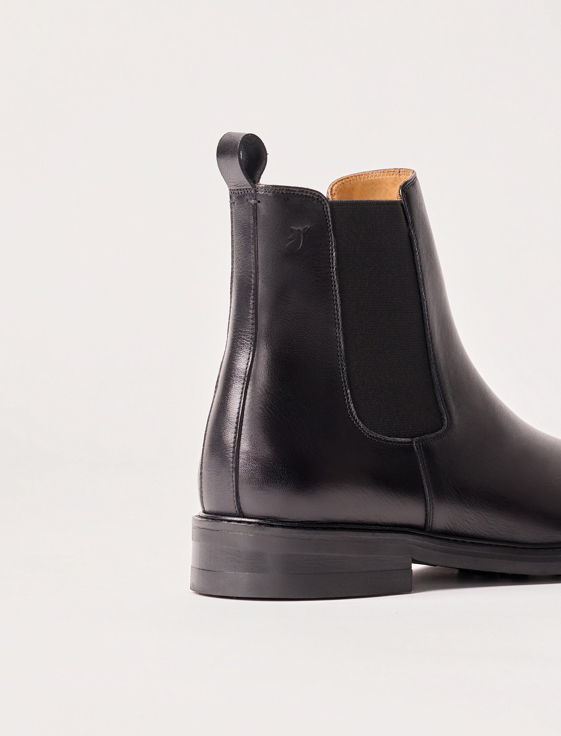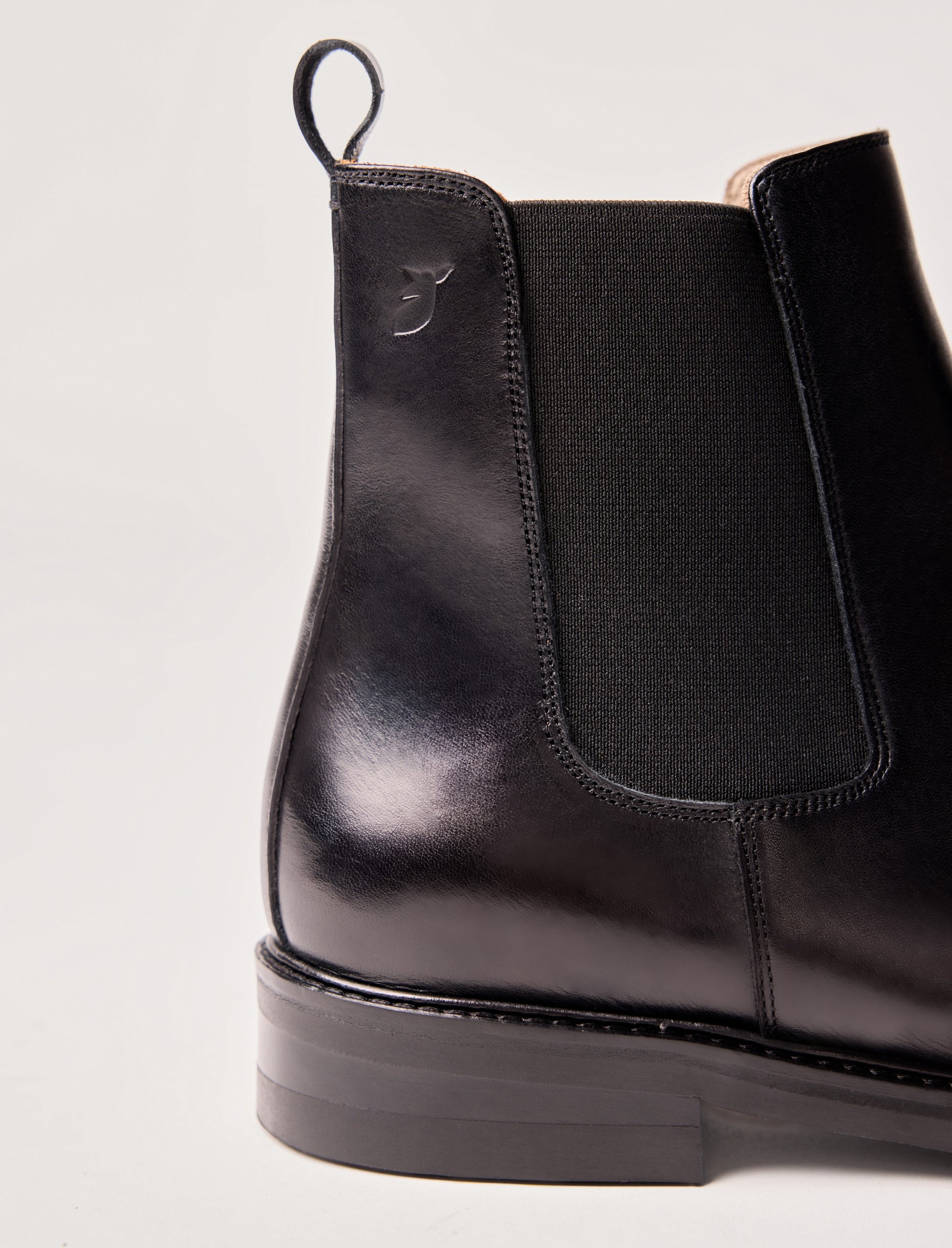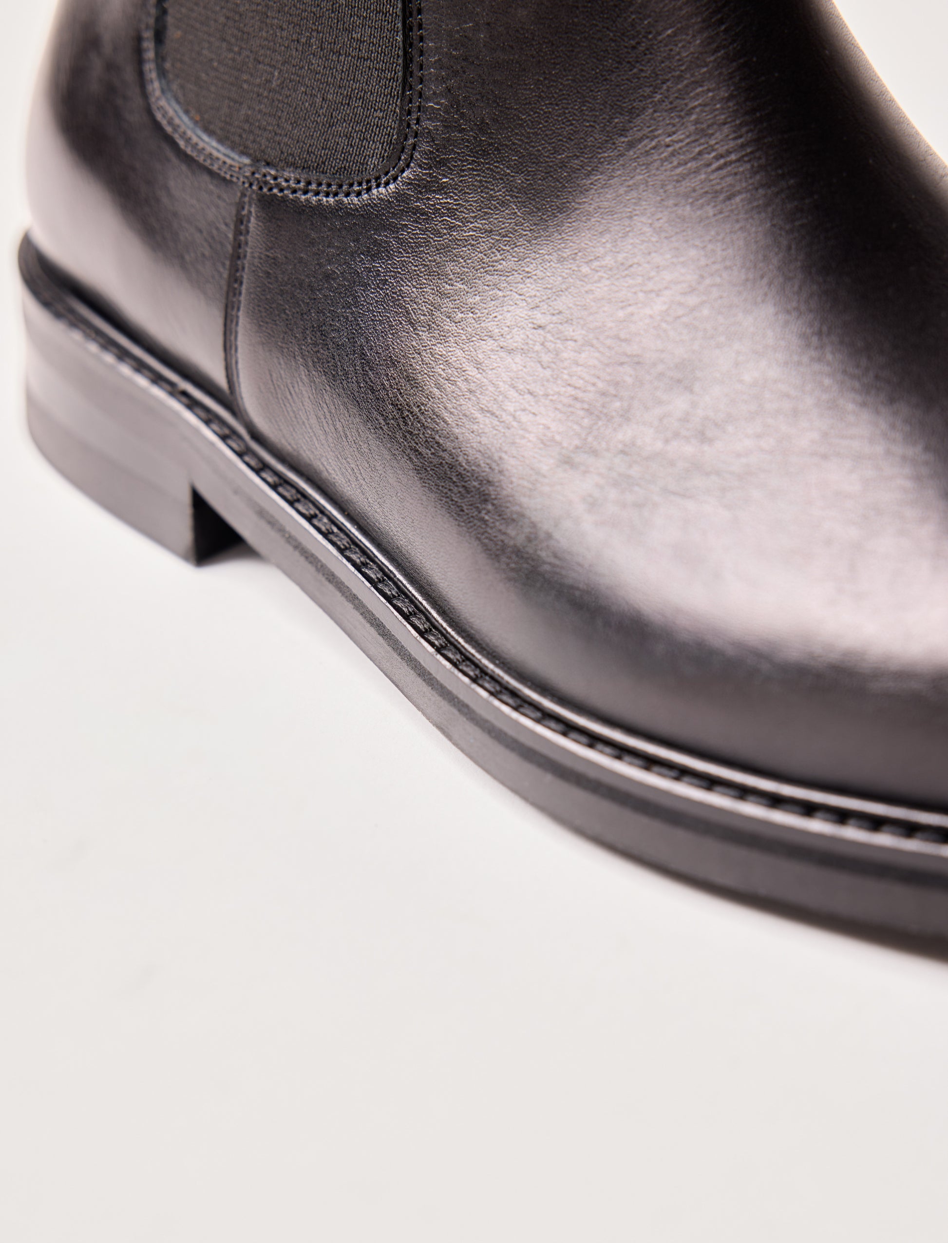 - Schwarze glatte Leder-Chelsea-Stiefeletten