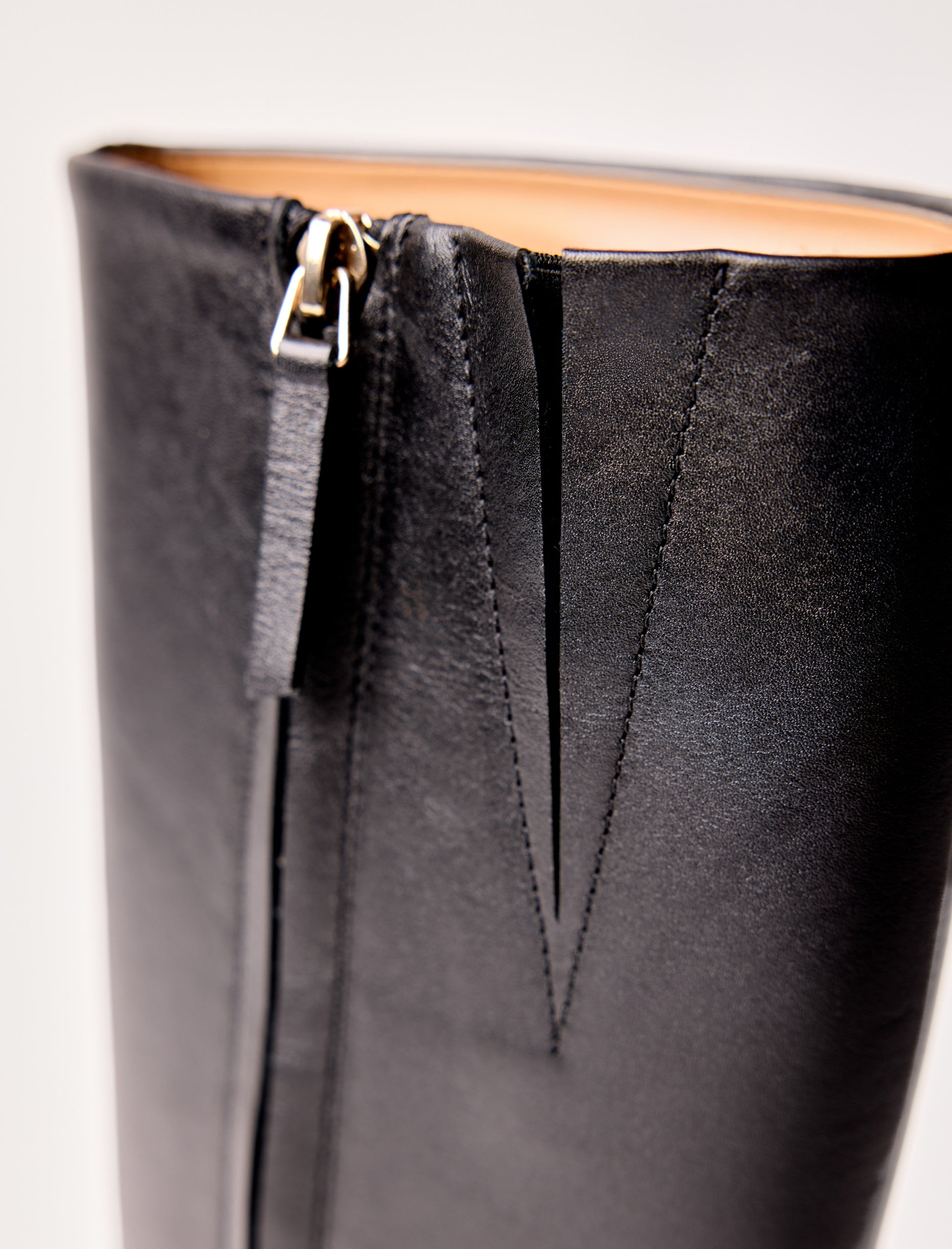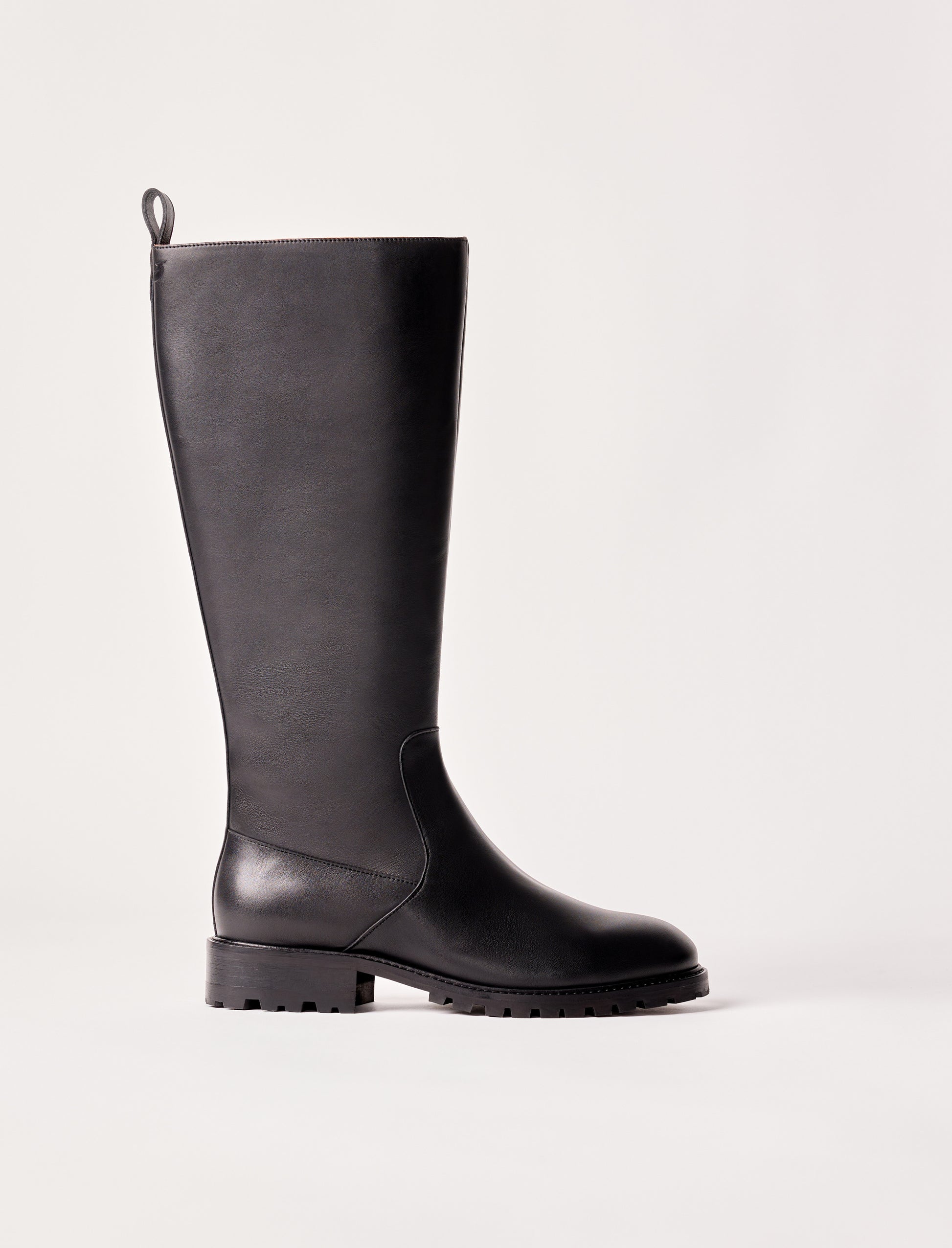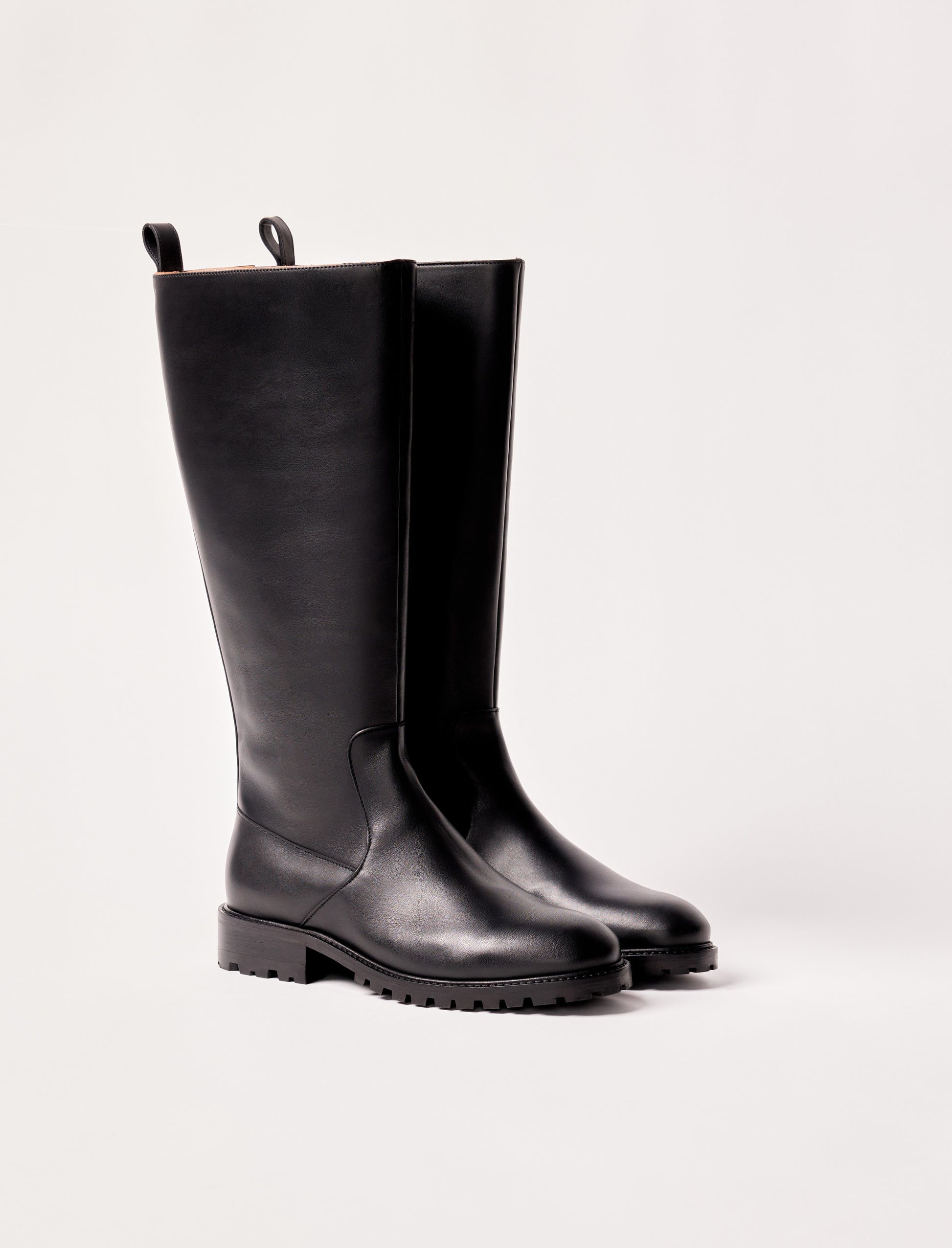 - Reitstiefel aus glattem schwarzem Leder mit Innenreißverschluss und Lederzuglasche