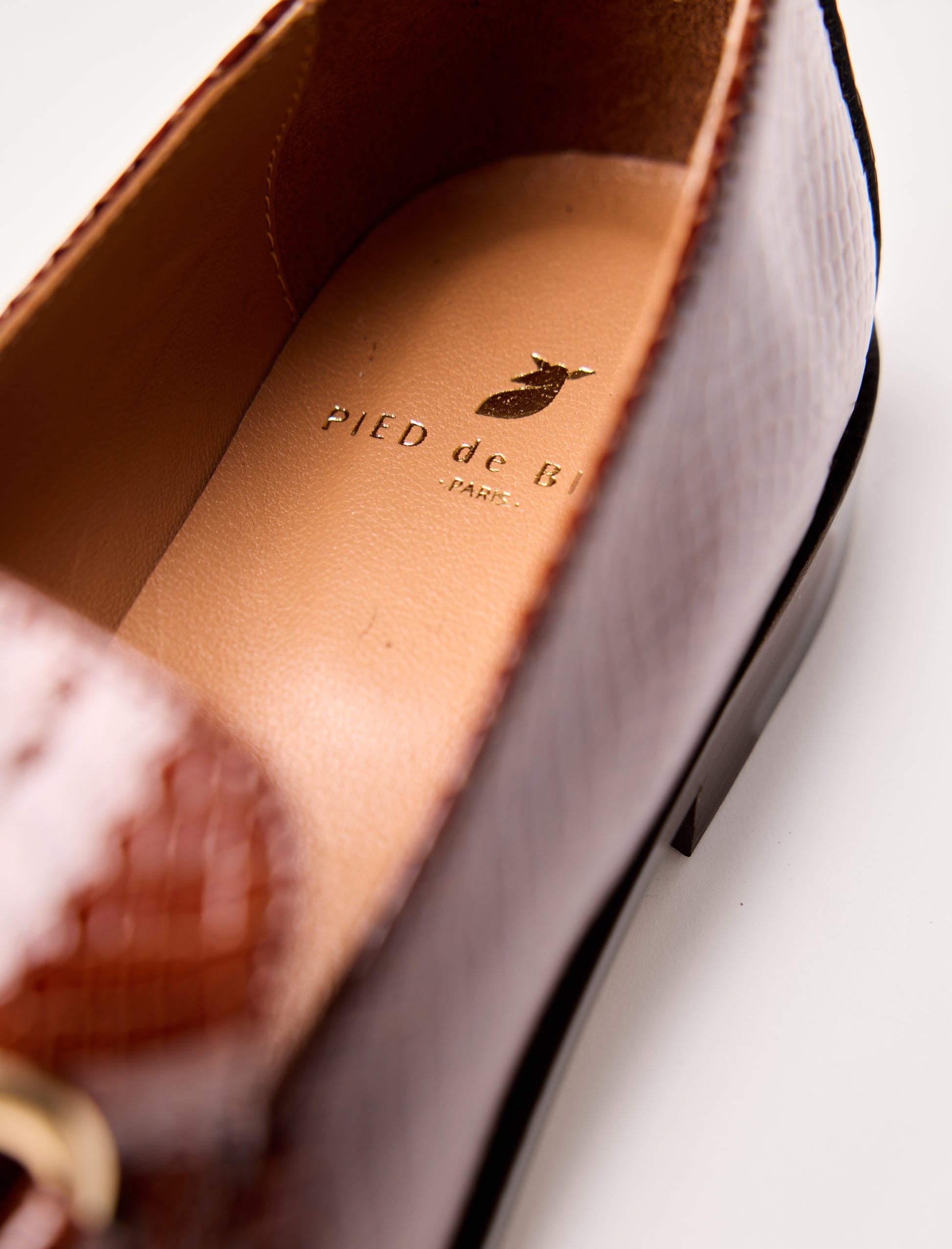 - Mokassins mit Schnalle aus lackiertem Rindsleder in Schuppenoptik