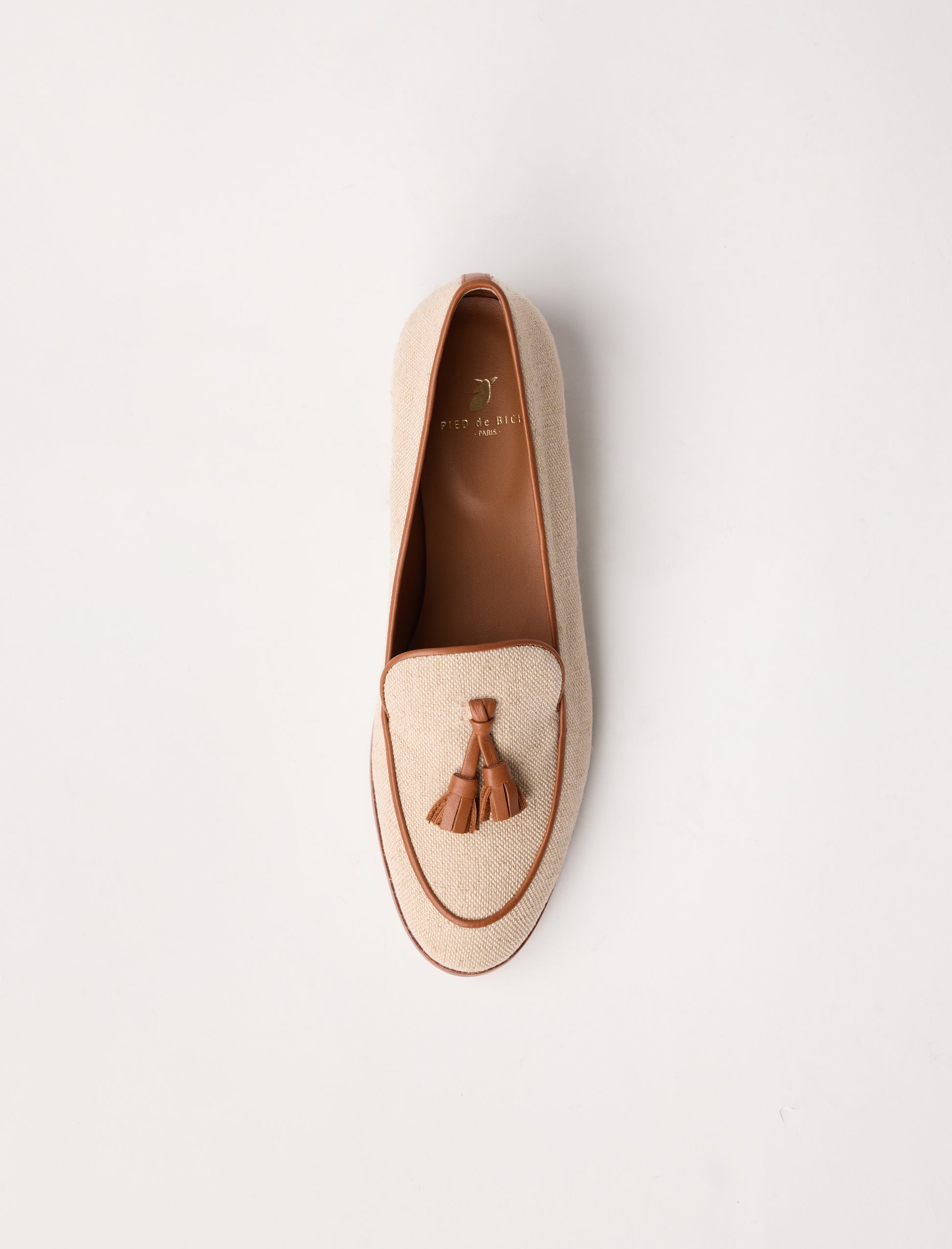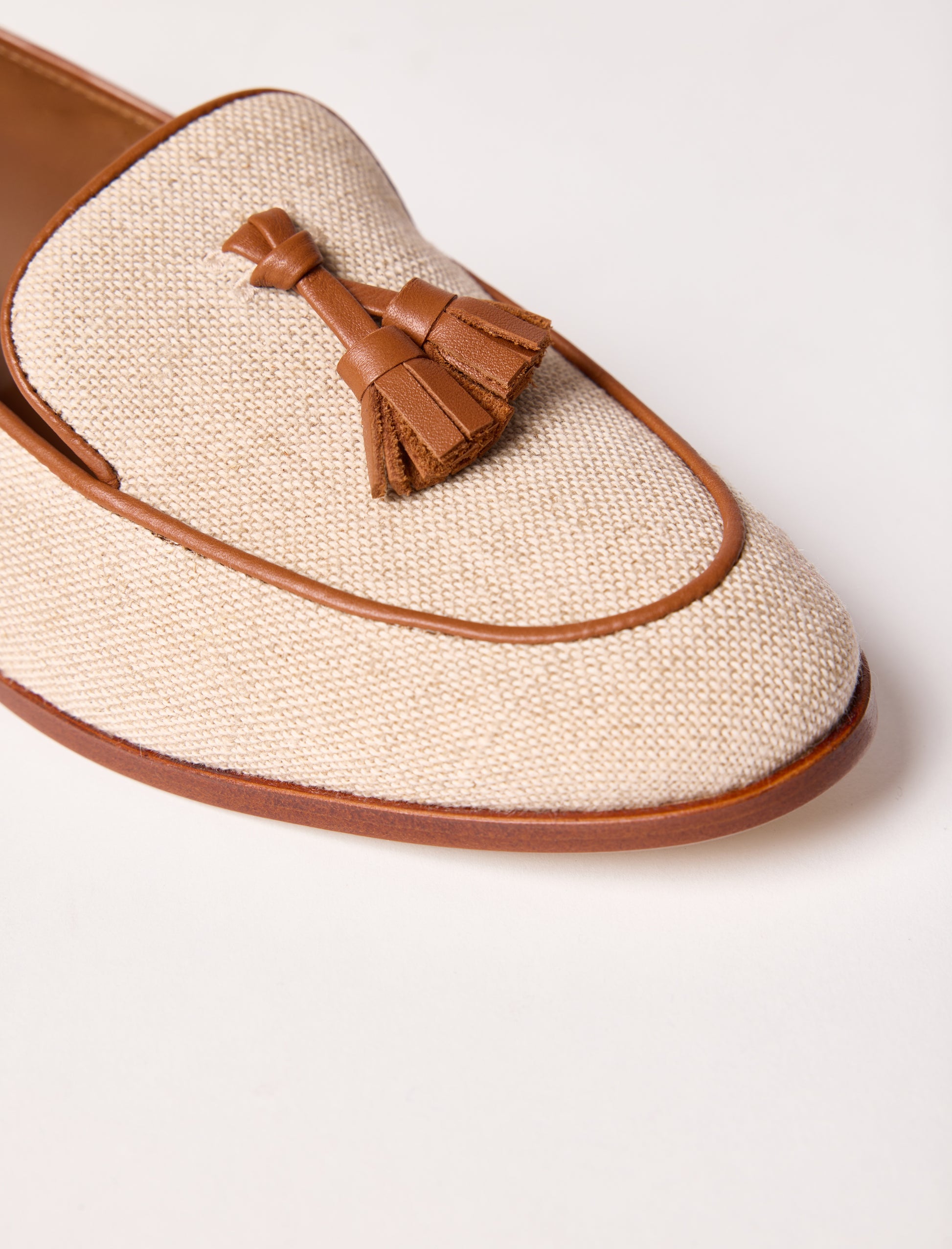 - Leinen-Slipper (70% Baumwolle, 30% Leinen) mit Lederquasten