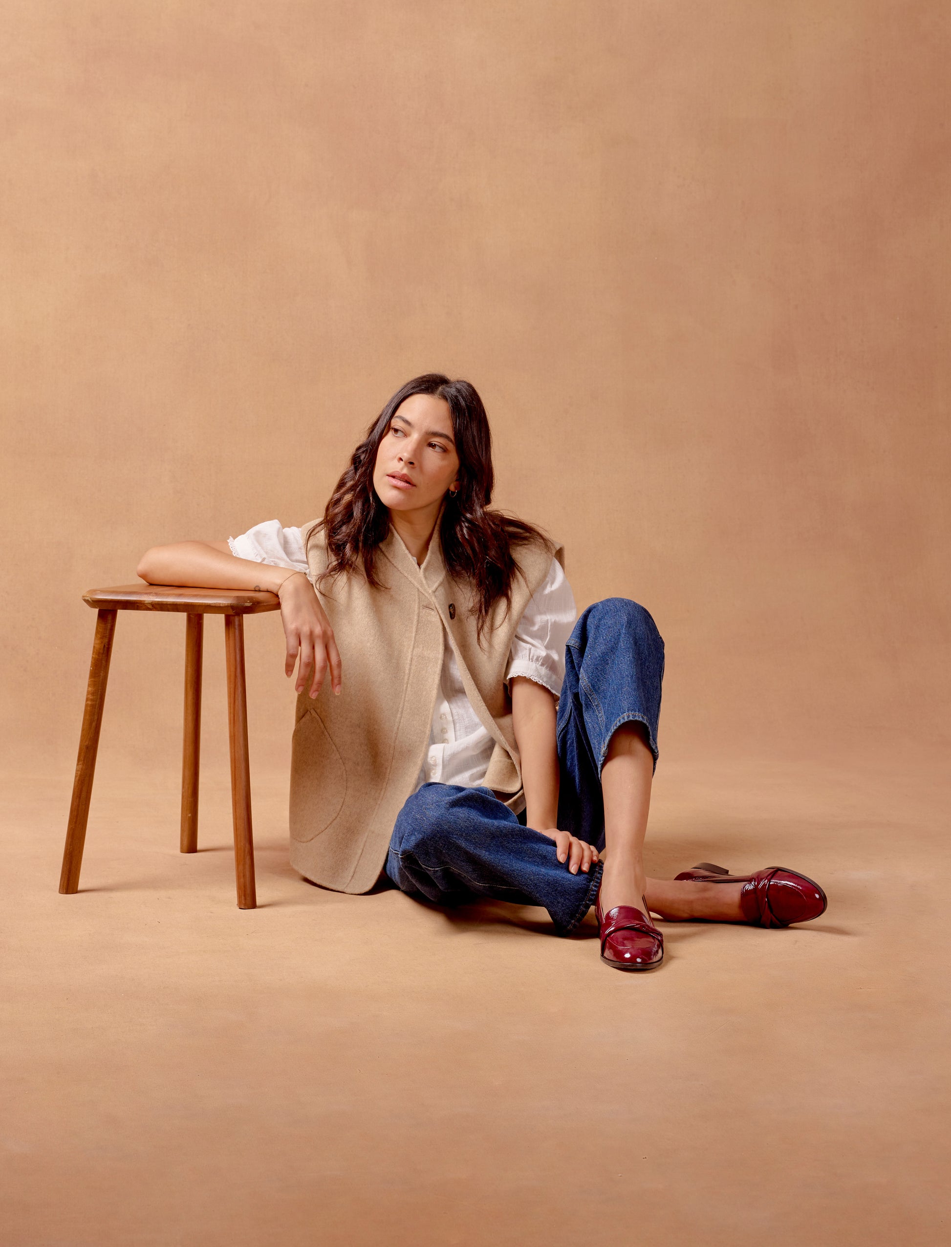 Der ikonische Lilly-Loafer kehrt zurück in einem eleganten Muskat-Ton. Gefertigt aus lackiertem Leder, verleiht dieses Material ein glänzendes Finish für einen anspruchsvollen Look. Unter der gepflegten Oberfläche, ebenfalls aus Rindsleder, befindet sich ein Komfortkissen, das zusätzlichen Halt bietet – perfekt für lange Tage. Mit seinem dezenten 2 cm hohen Absatz und der eleganten Drehung auf dem Oberteil des Schuhs sind diese Details sowohl funktional als auch stilvoll.