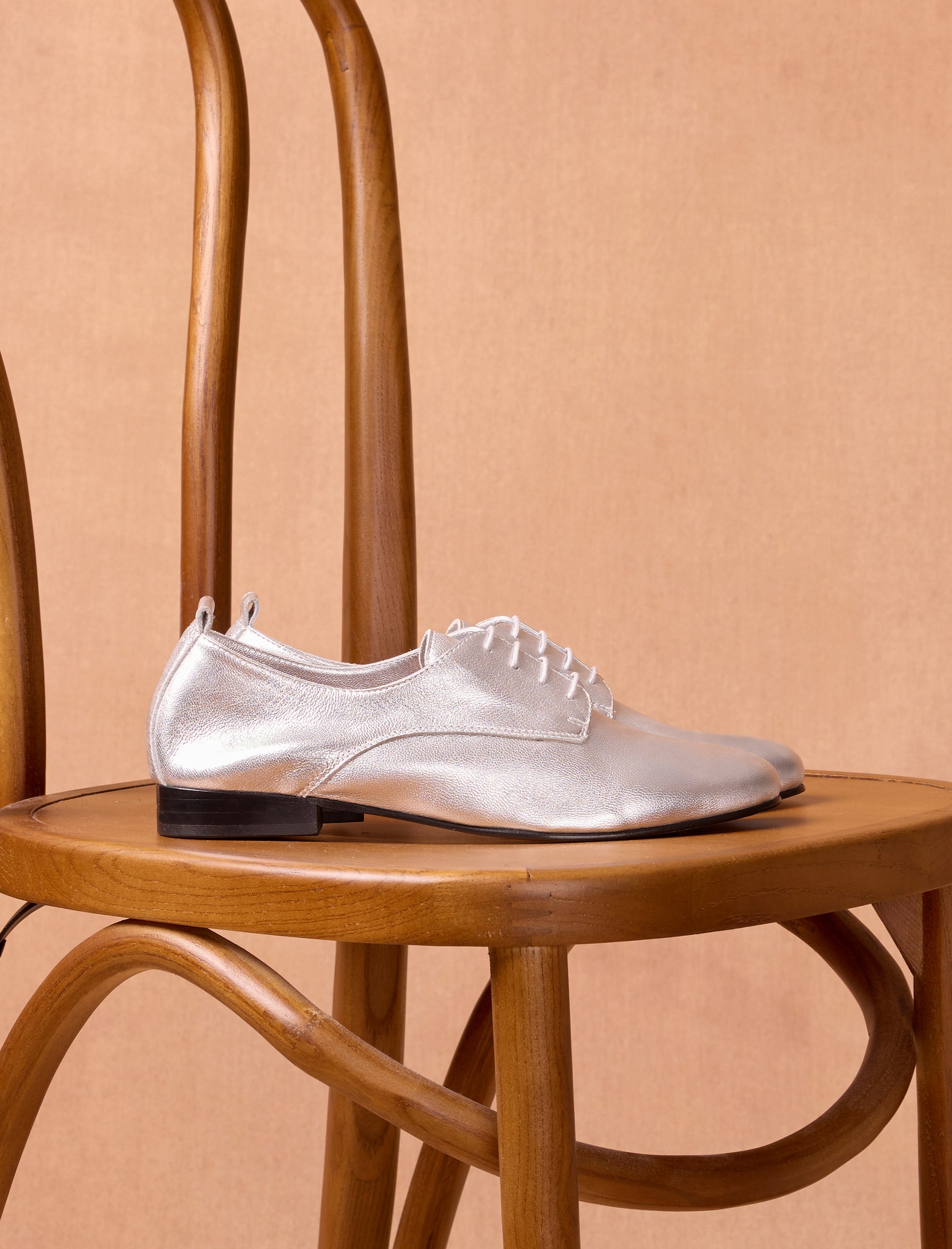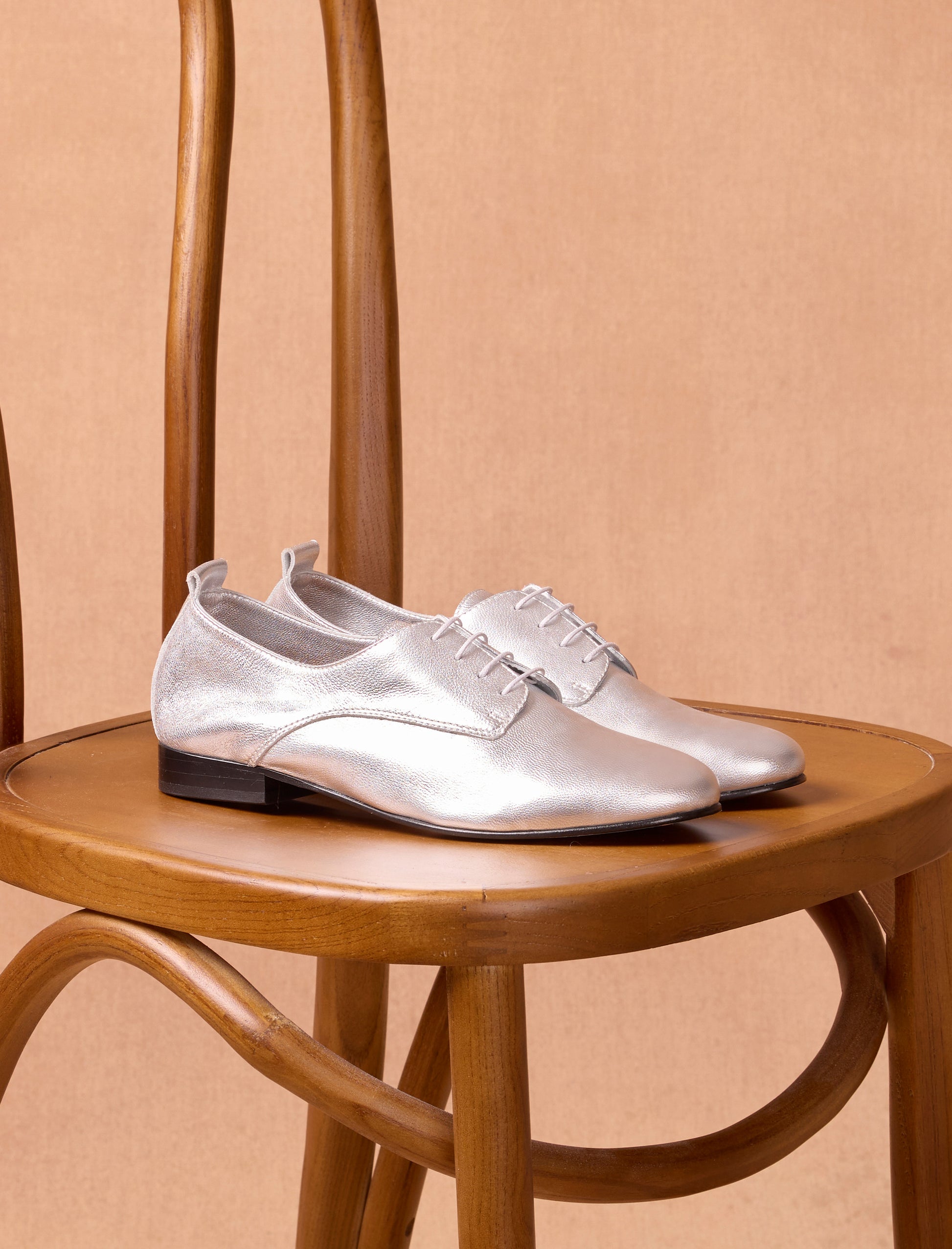 - Derbies aus silberlaminiertem Kalbsleder