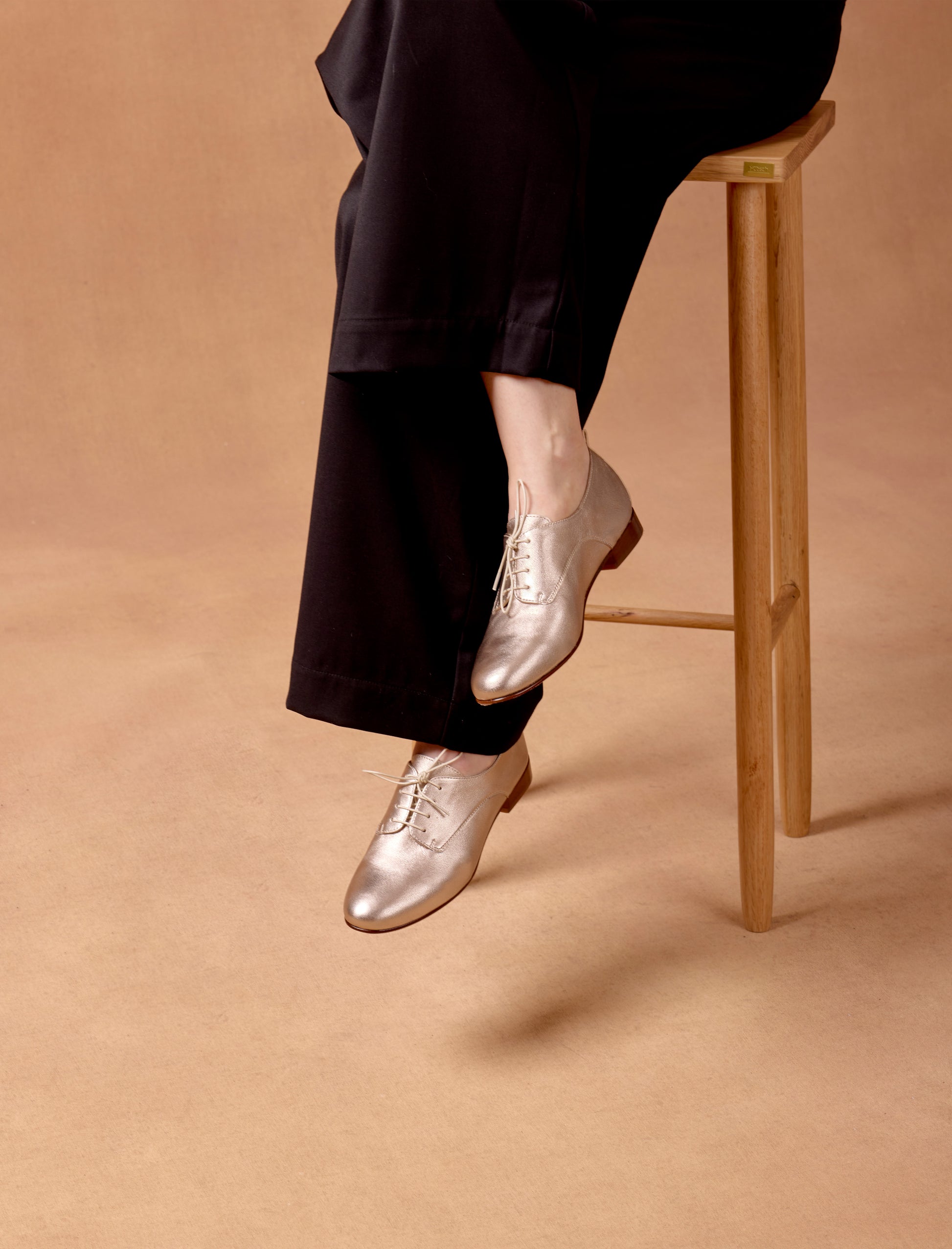 - Derbies aus laminiertem Ziegenleder in Goldoptik