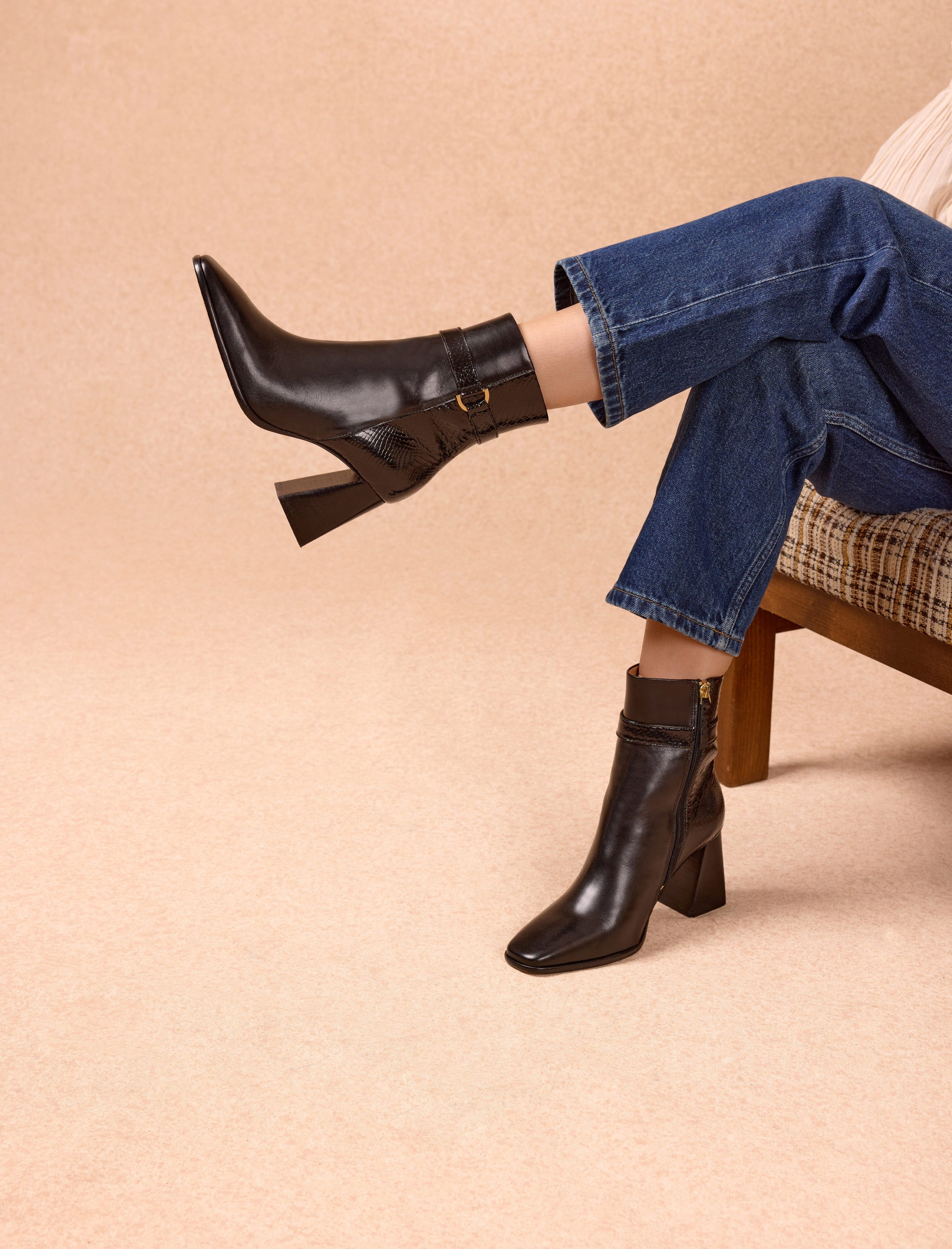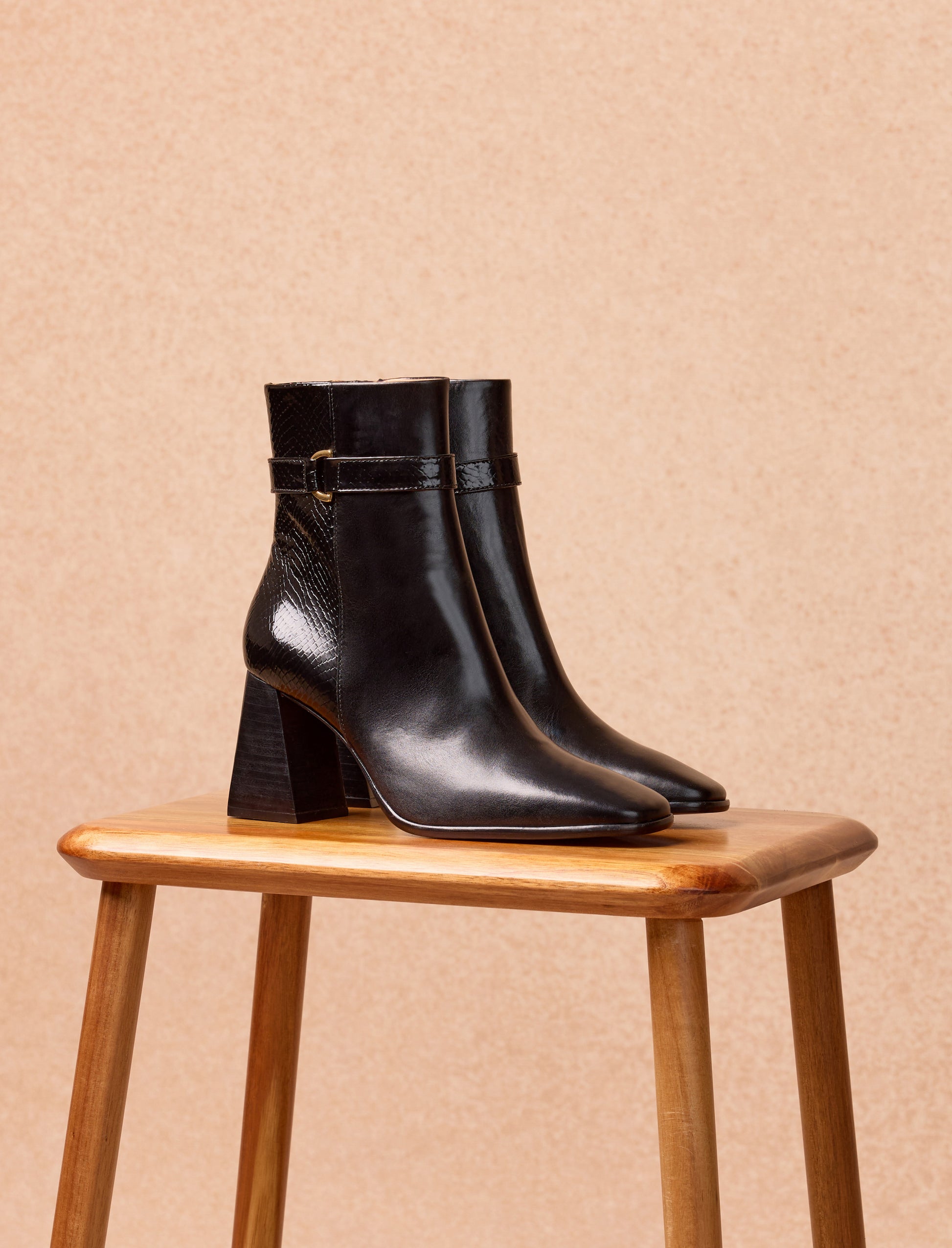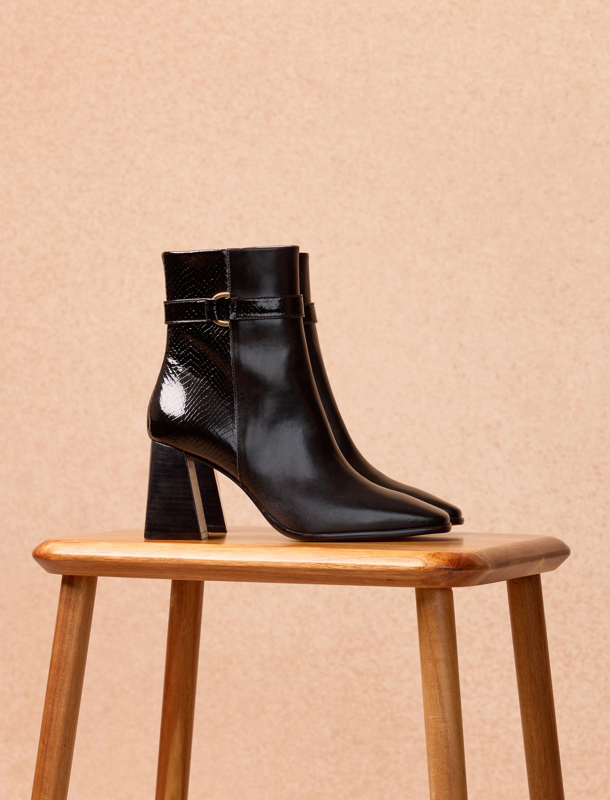 - Stiefeletten aus glattem Rindsleder in Schwarz und lackiertem Schuppenmuster