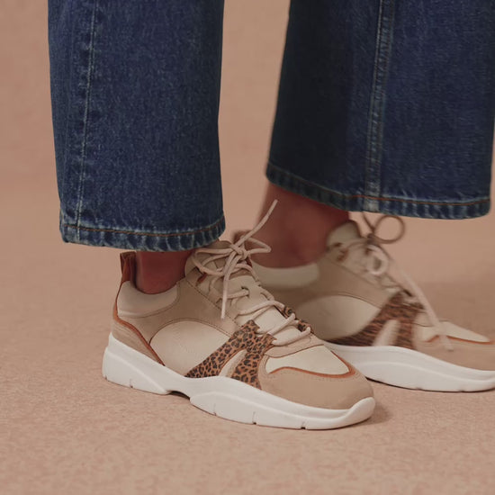 - Outdoor-Sneaker aus samtigem Kalbsleder in Sandfarbe mit Leder-Panelen in Leopardenmuster