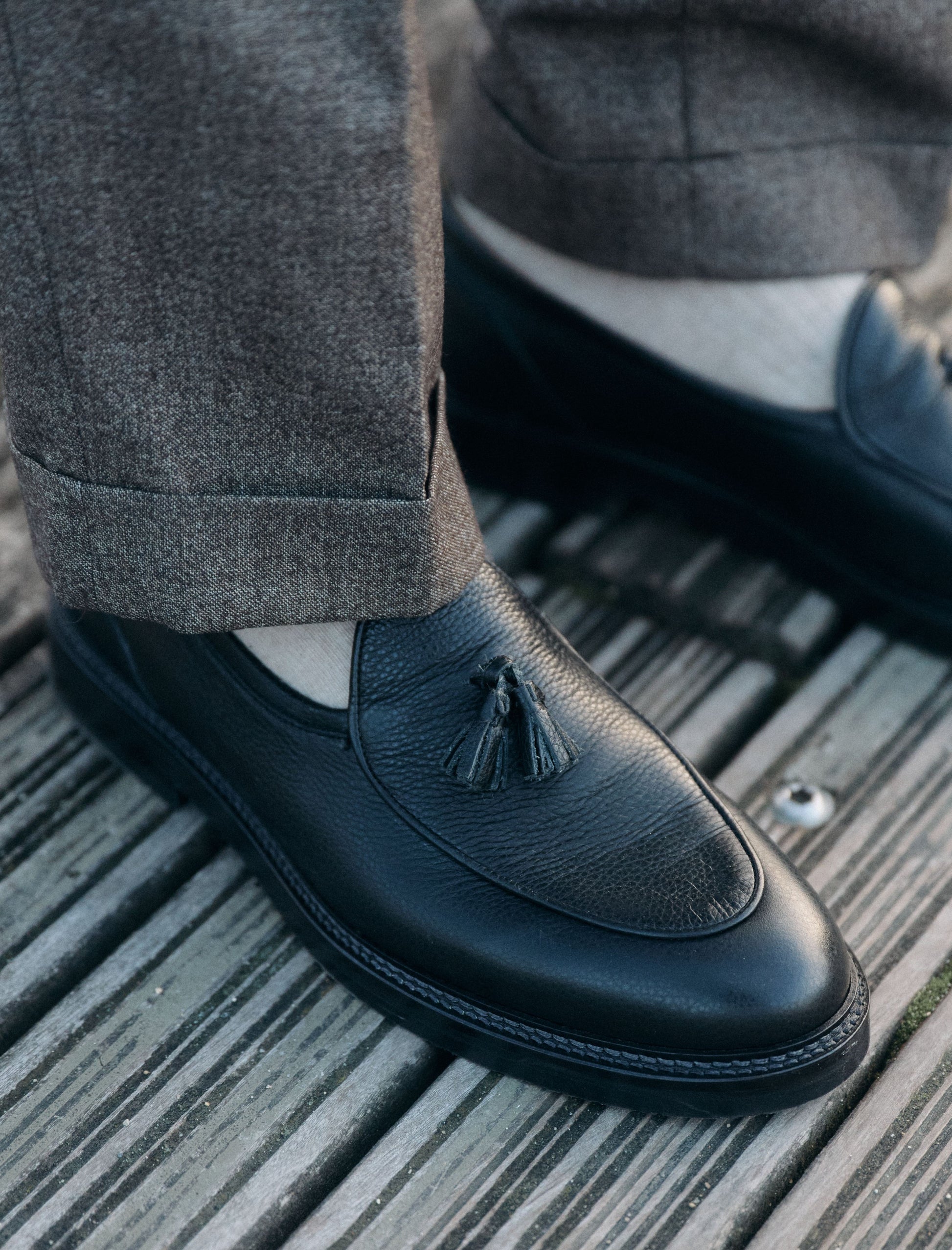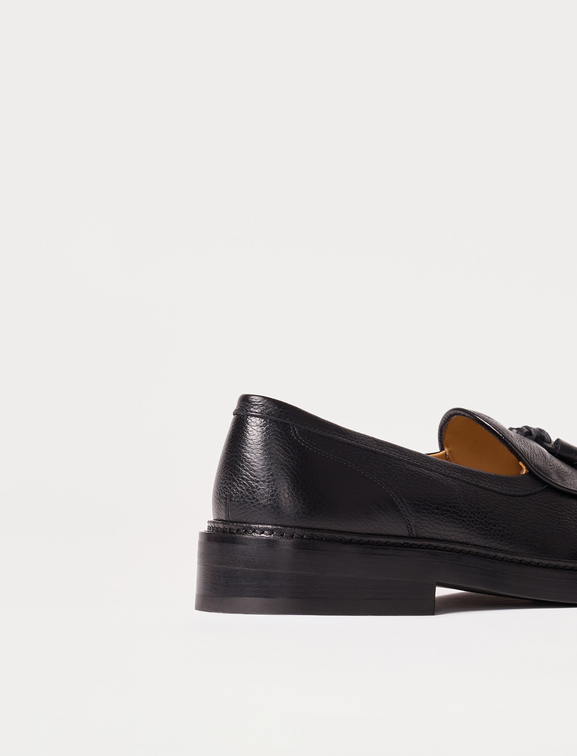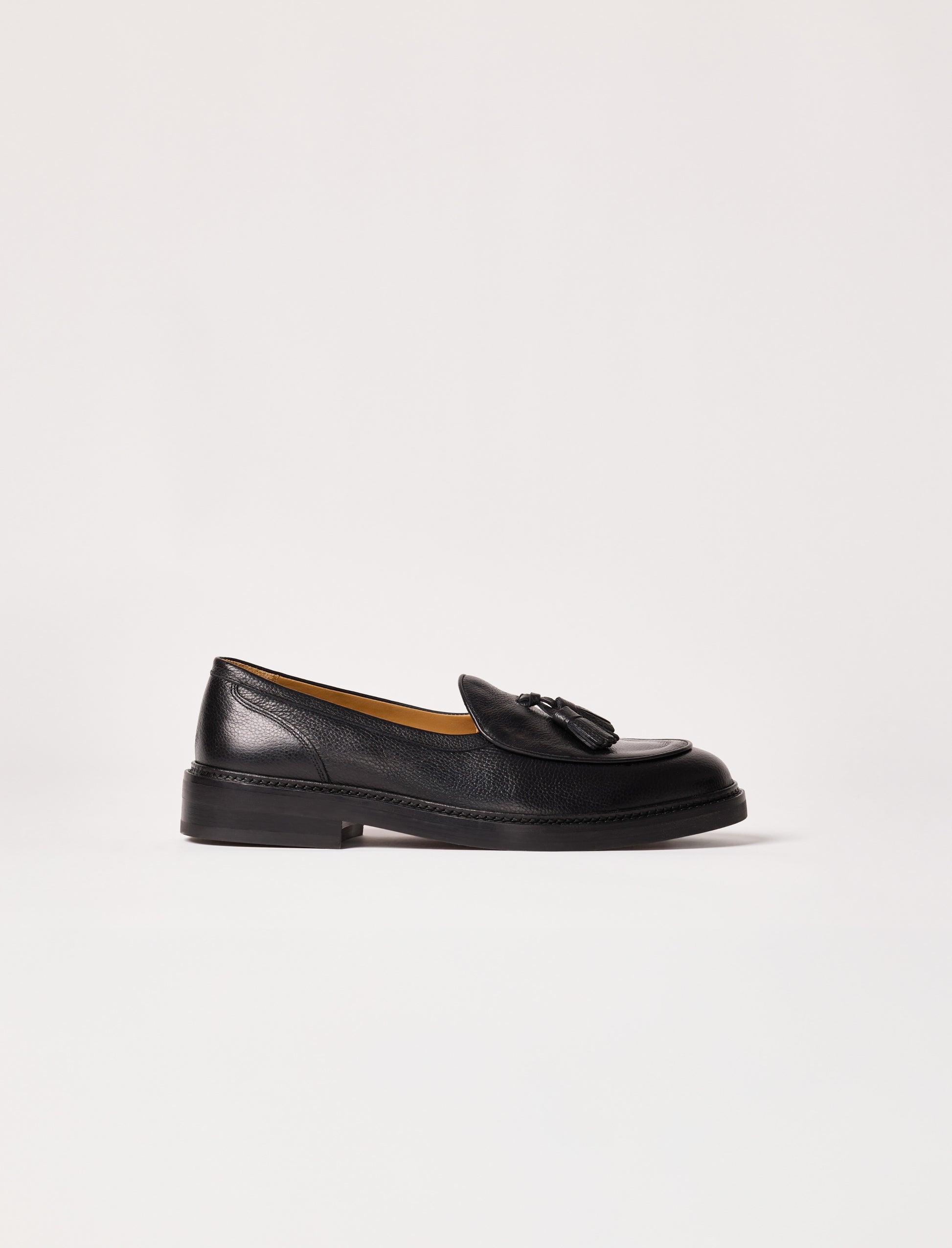 - Schwarz gefütterte Loafers mit Quasten aus genarbtem Rindsleder