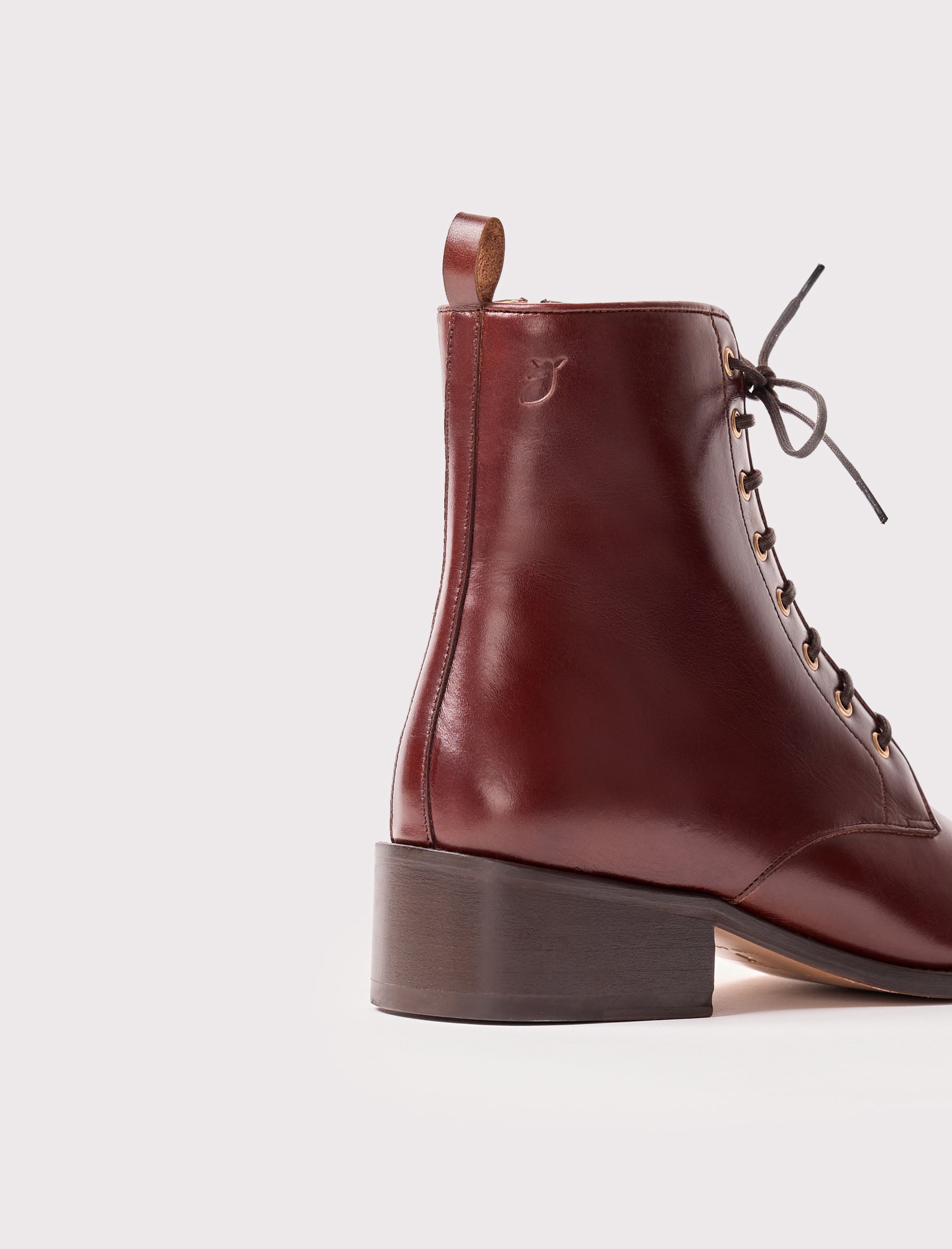 - Stiefeletten Solène aus geöltem, glattem Leder in Burgunderrot