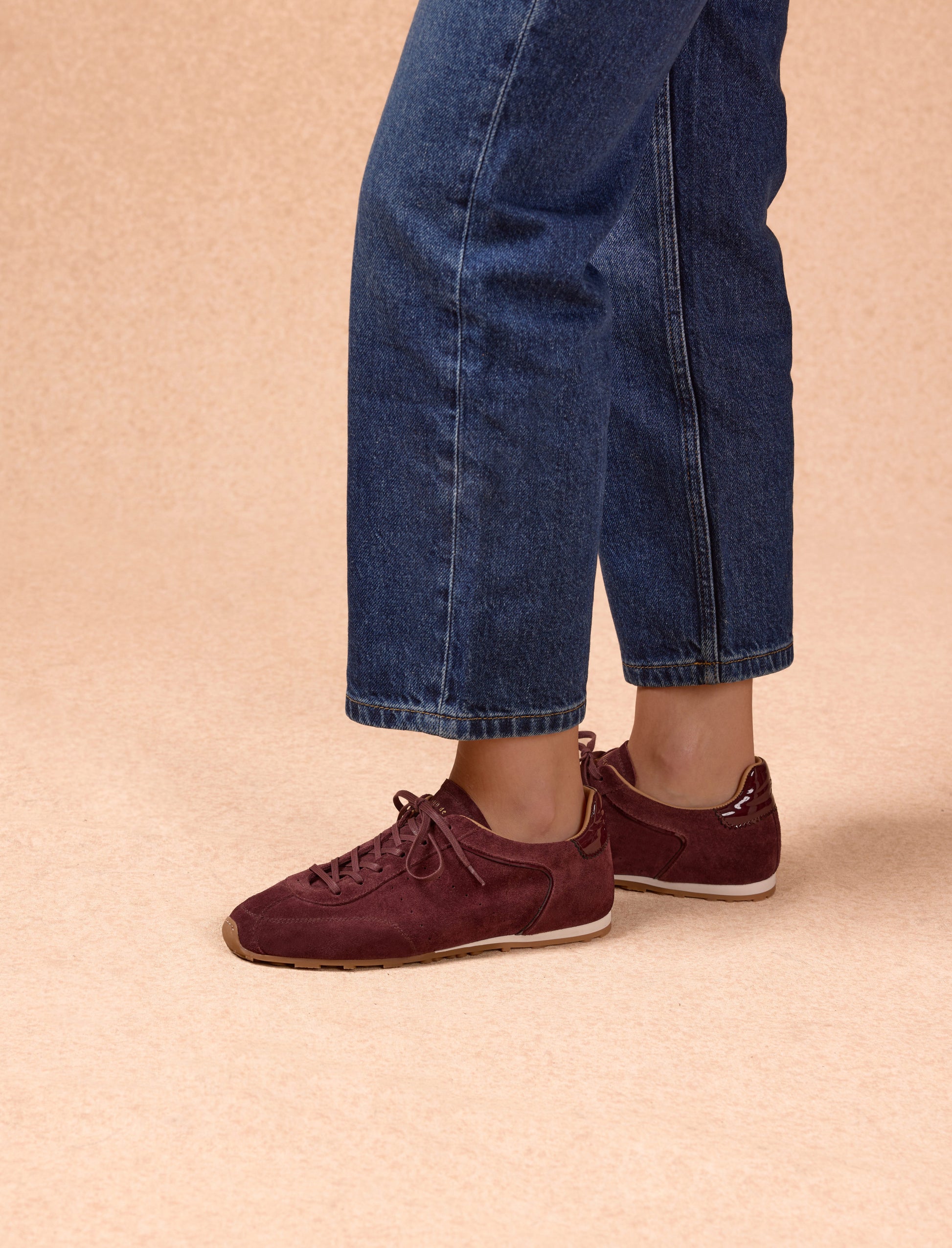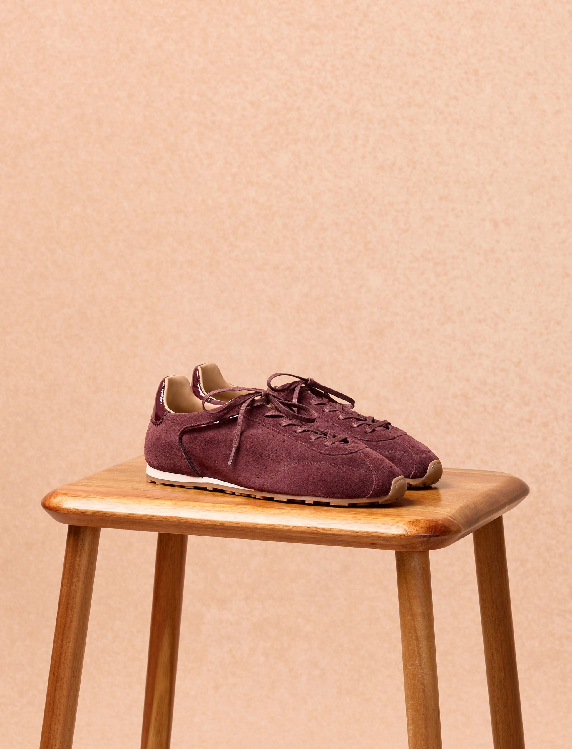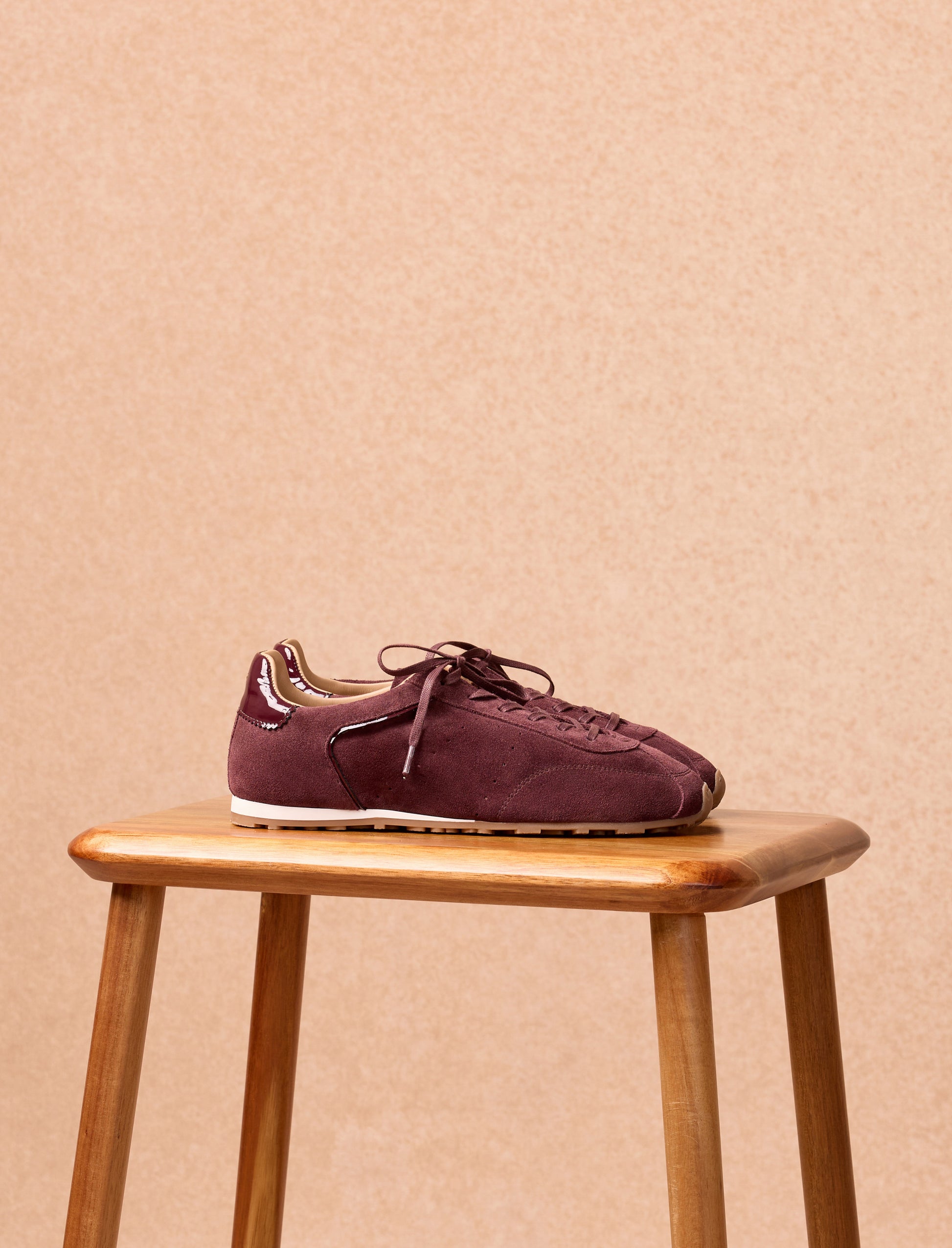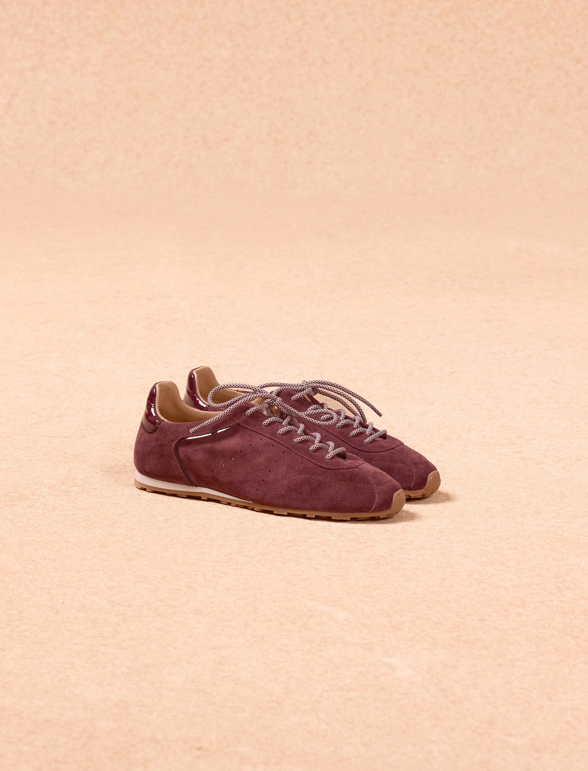 - Leder-Sneakers aus auberginefarbenem Wildleder, mit Einsätzen aus Lackleder