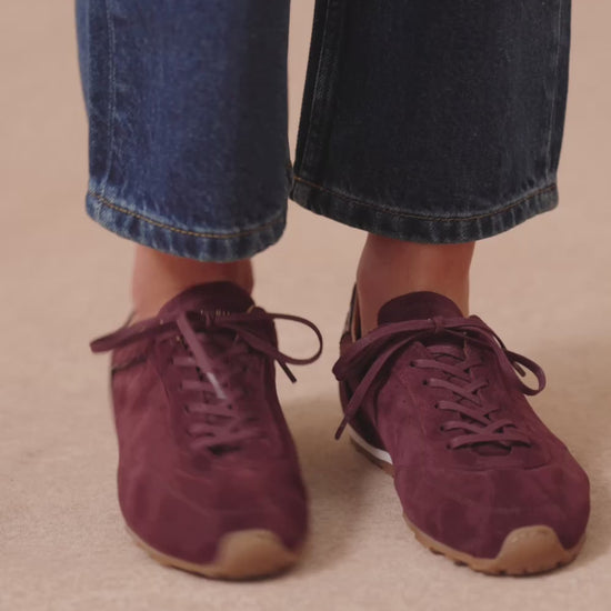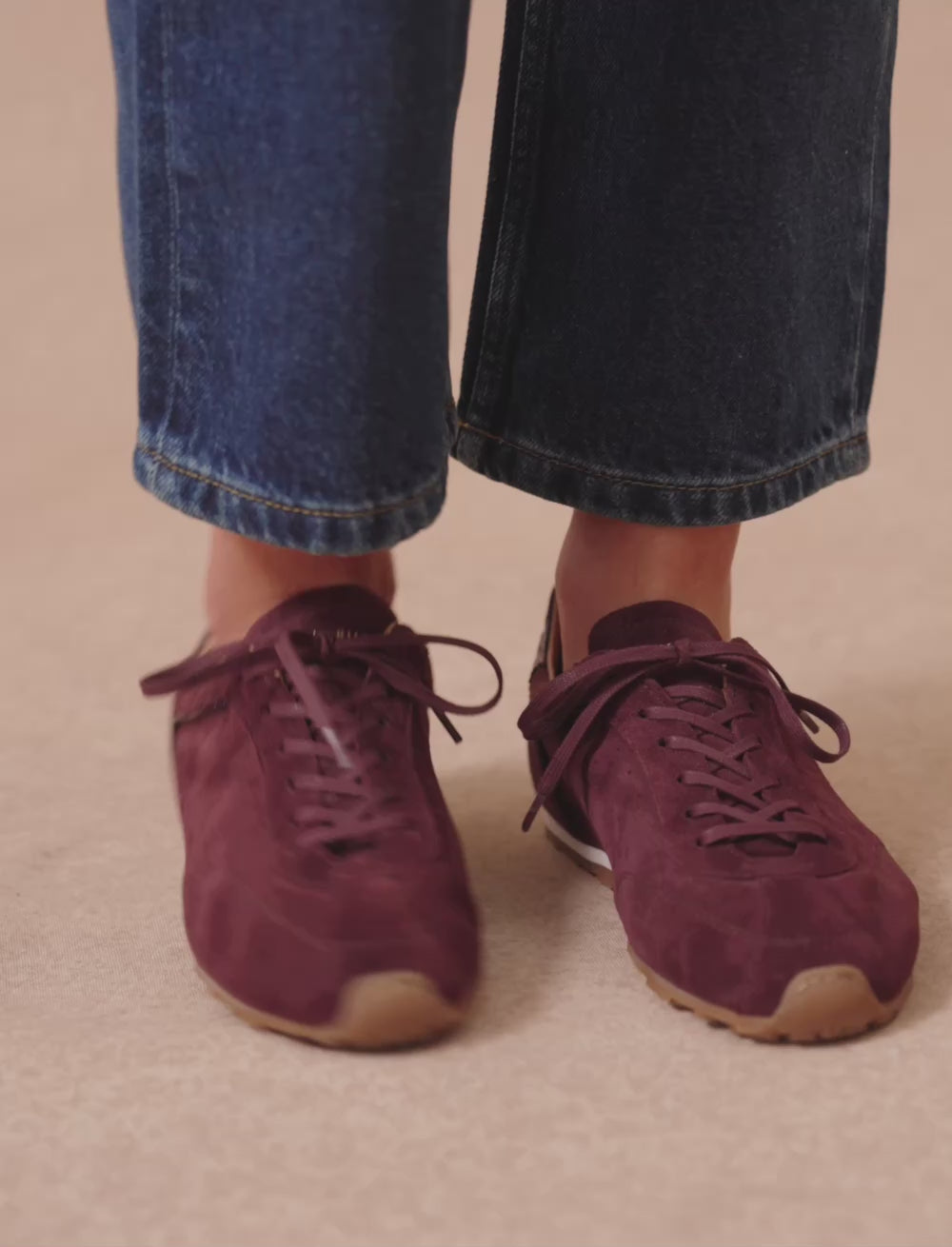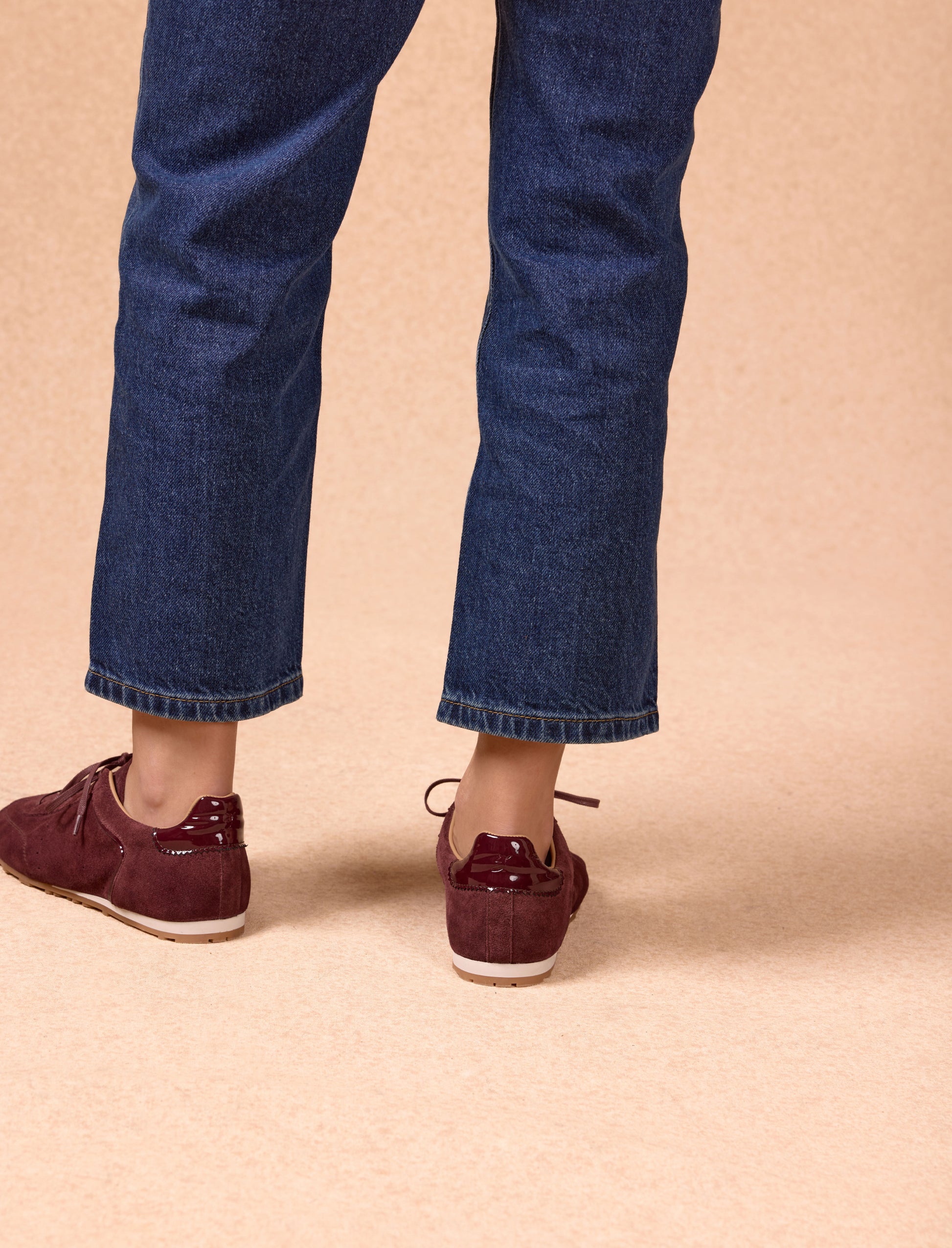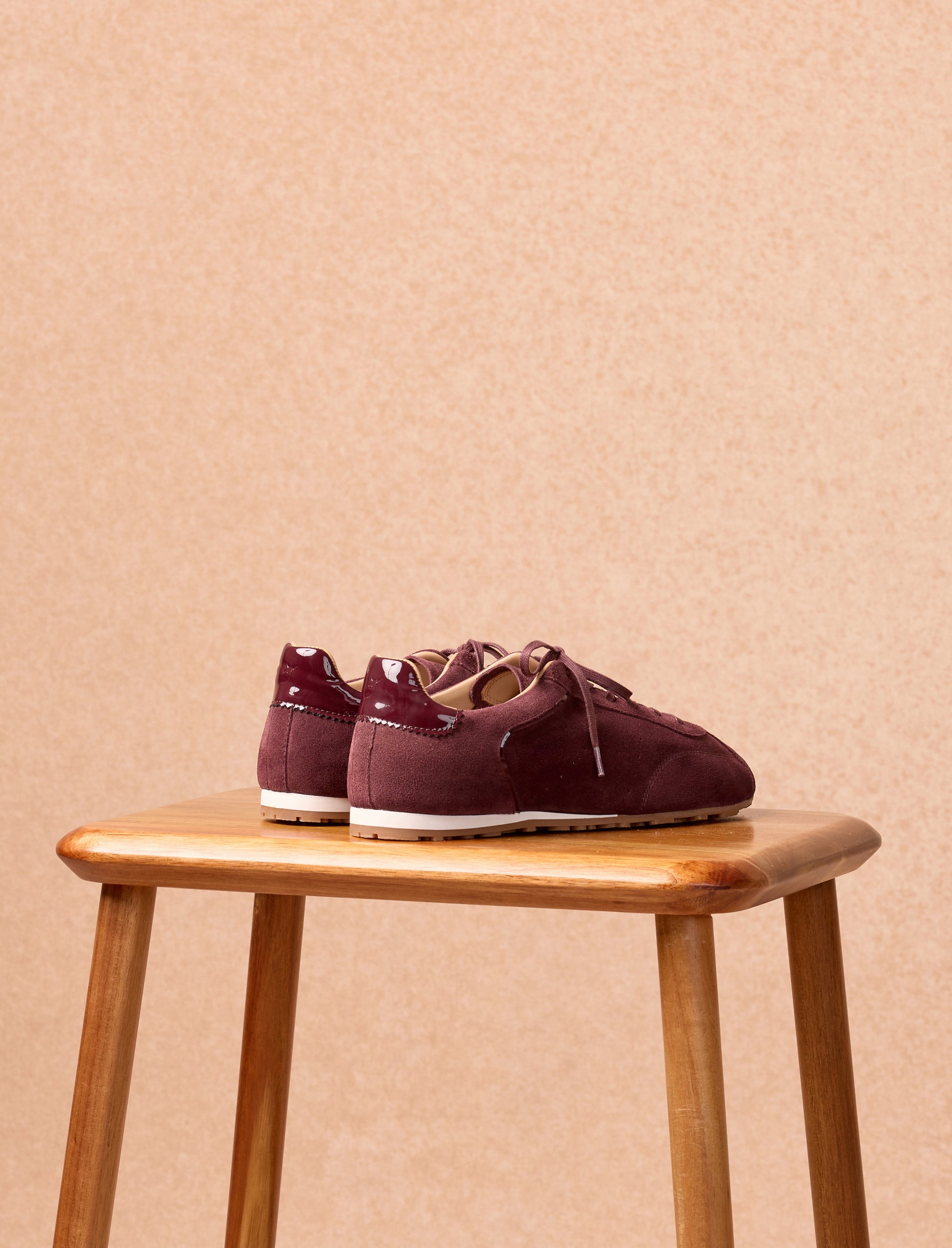 - Leder-Sneakers aus auberginefarbenem Wildleder, mit Einsätzen aus Lackleder