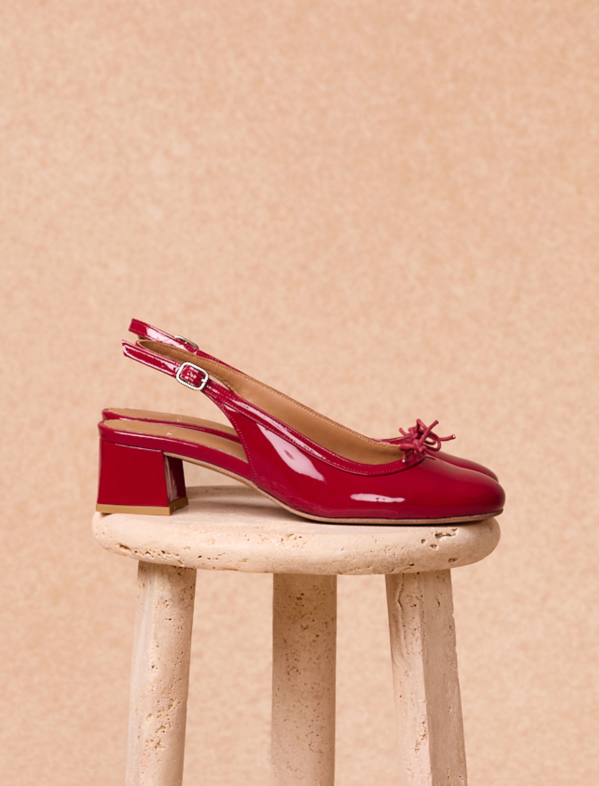 - Rote Lackleder-Krabbelschühchen mit Schleife vorne und Slingback-Schnalle hinten