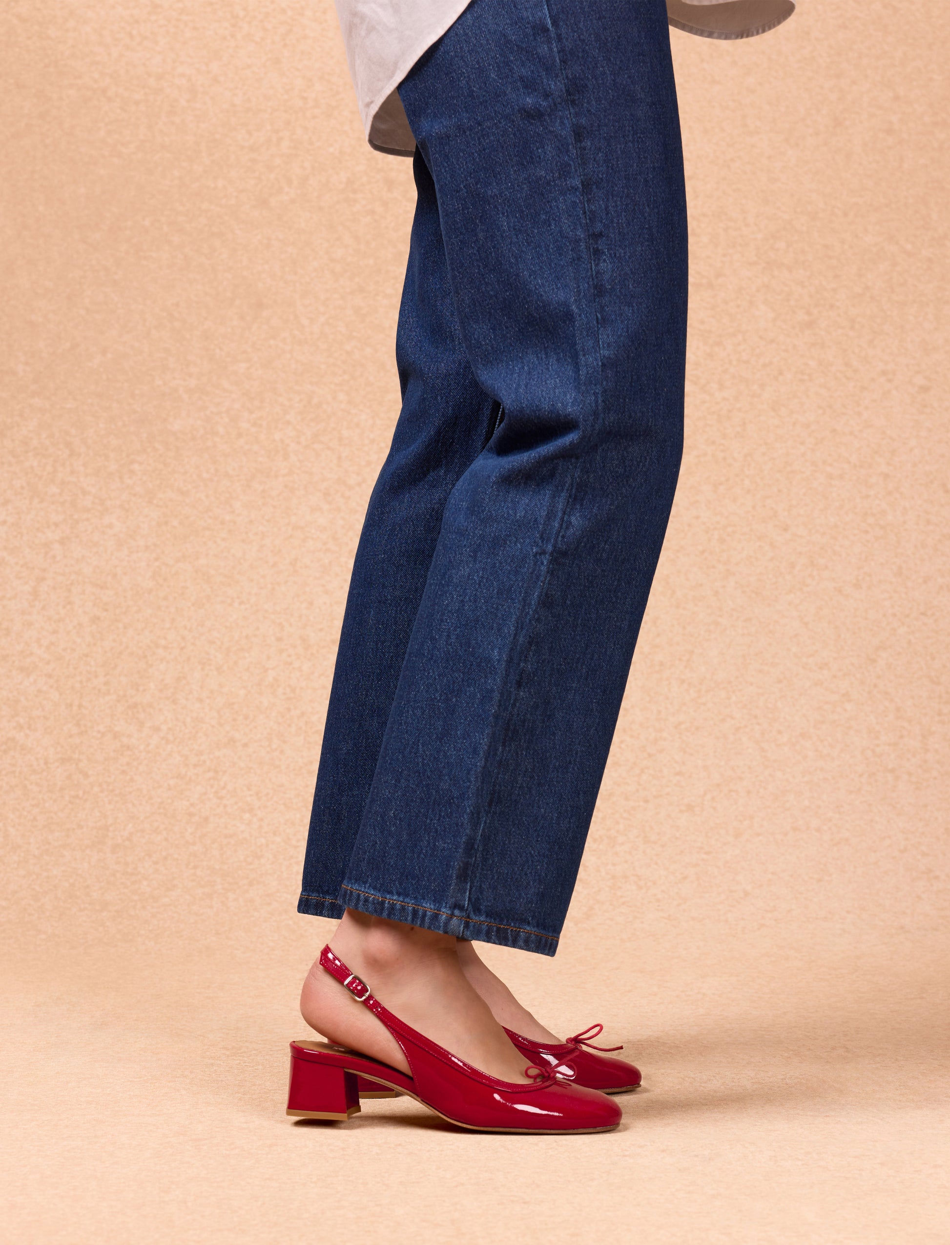 Der Sandale Valentina vereint retro-Chic mit einem Hauch Glamour. Ihr 4,5 cm hoher Absatz, kombiniert mit einer Schleife vorne und einem Slingback-Riemen hinten, verleiht Ihrer Silhouette eine feminine Note. Perfekt, um Ihren Sommeroutfits einen preppy Akzent zu verleihen.