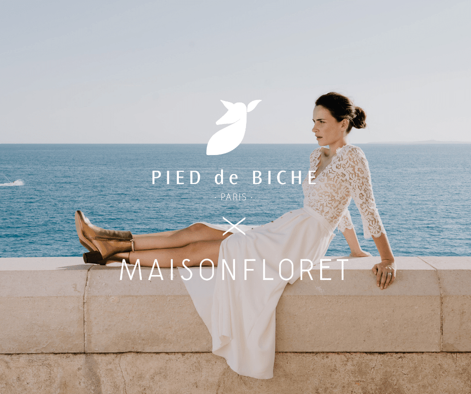 This is the first collaboration between Pied de Biche and Maison Floret. However, we know each other well. Have you noticed our “marriage” collection on our website and in boutiques? Brides are dressed in gowns from Maison Floret. We share common values such as artisanal craftsmanship, a strong emphasis on quality, and close relationships with our clients. Our mutual trust and enthusiasm for this collection inspired us to consider a follow-up. Given the current circumstances, weddings have been postponed, rescheduled, and for many couples, planned during winter. We seized this opportunity to create THE pair of ankle boots. Elegant, refined, and unique, the Alma ankle boots perfectly match the universe of Pied de Biche and Maison Floret.