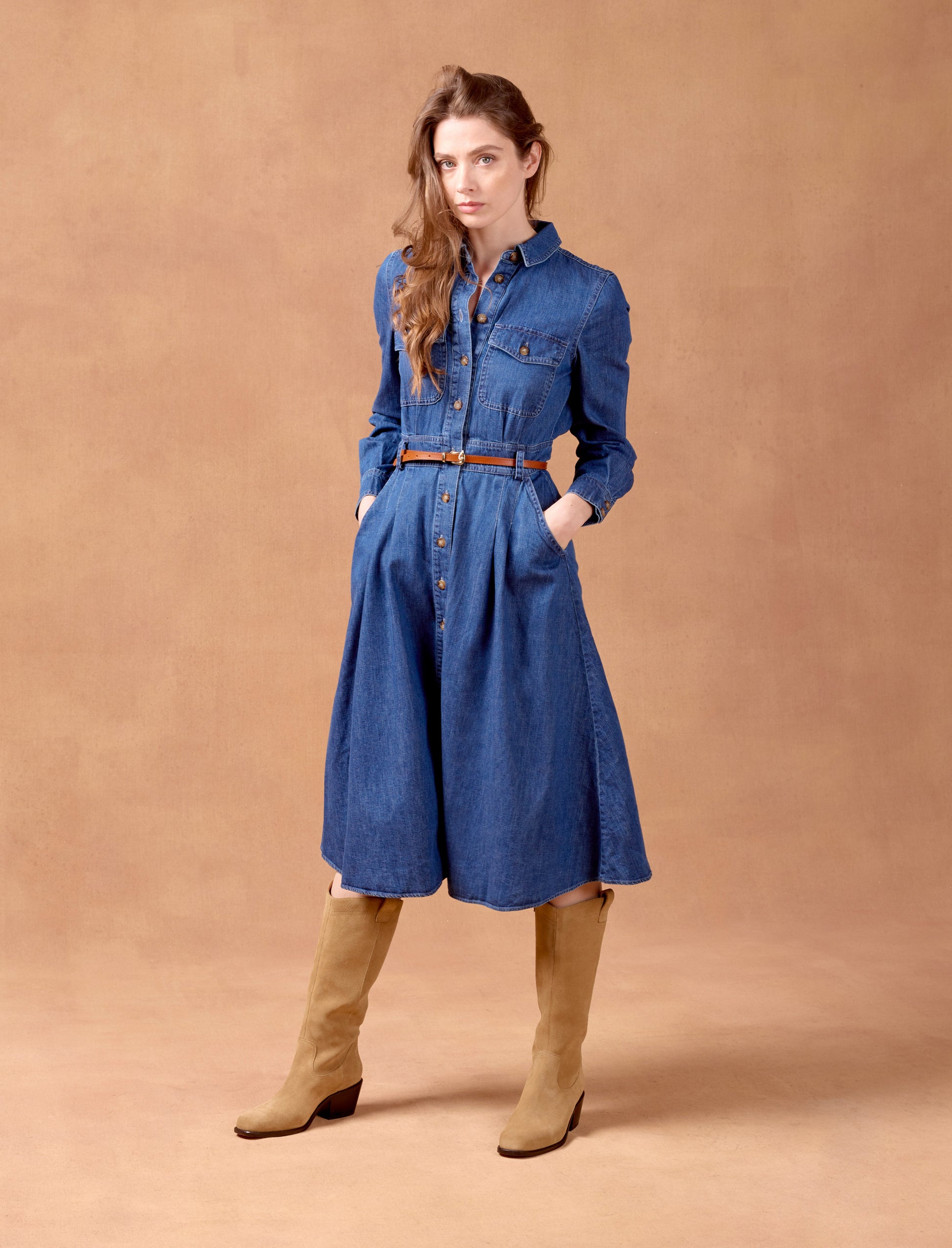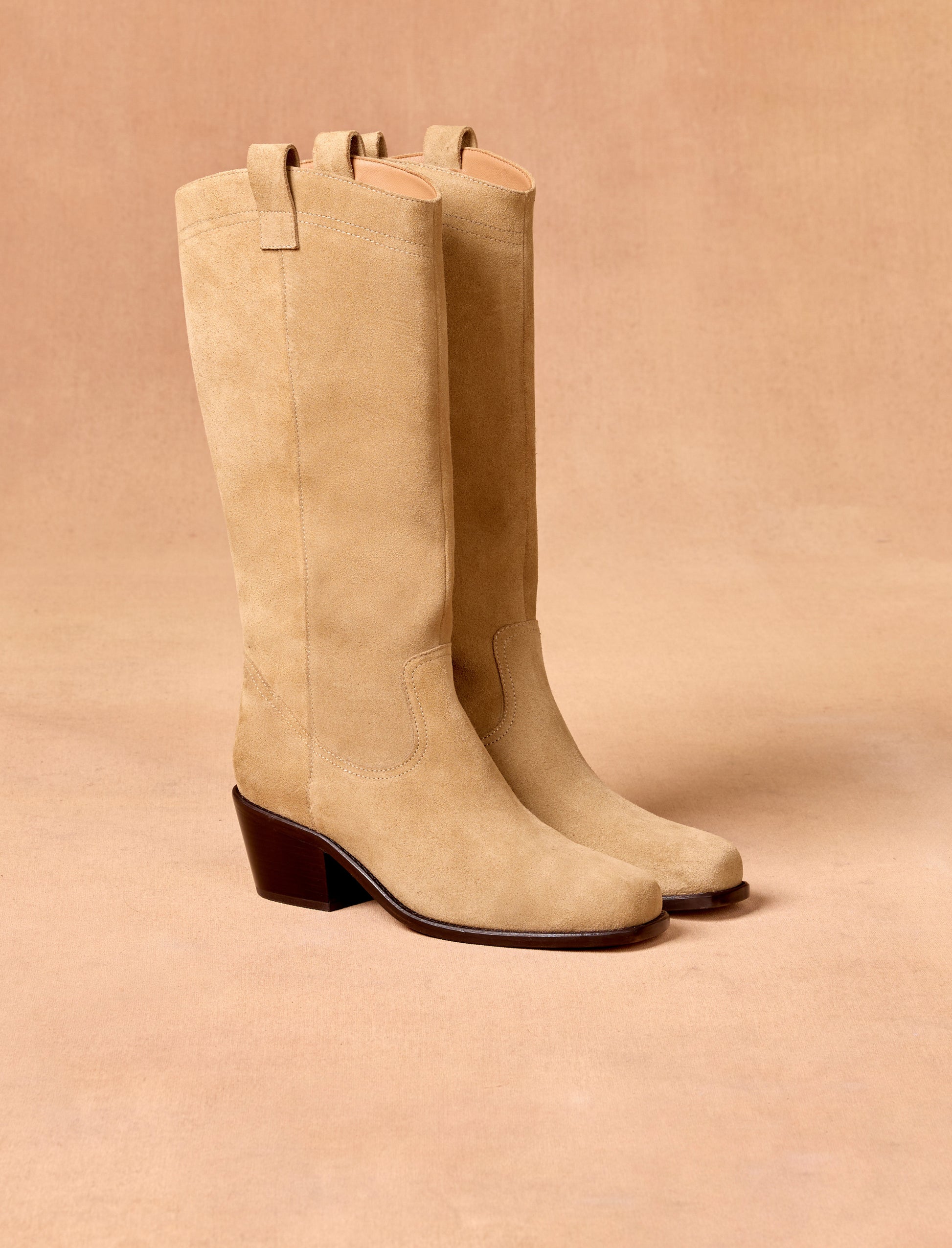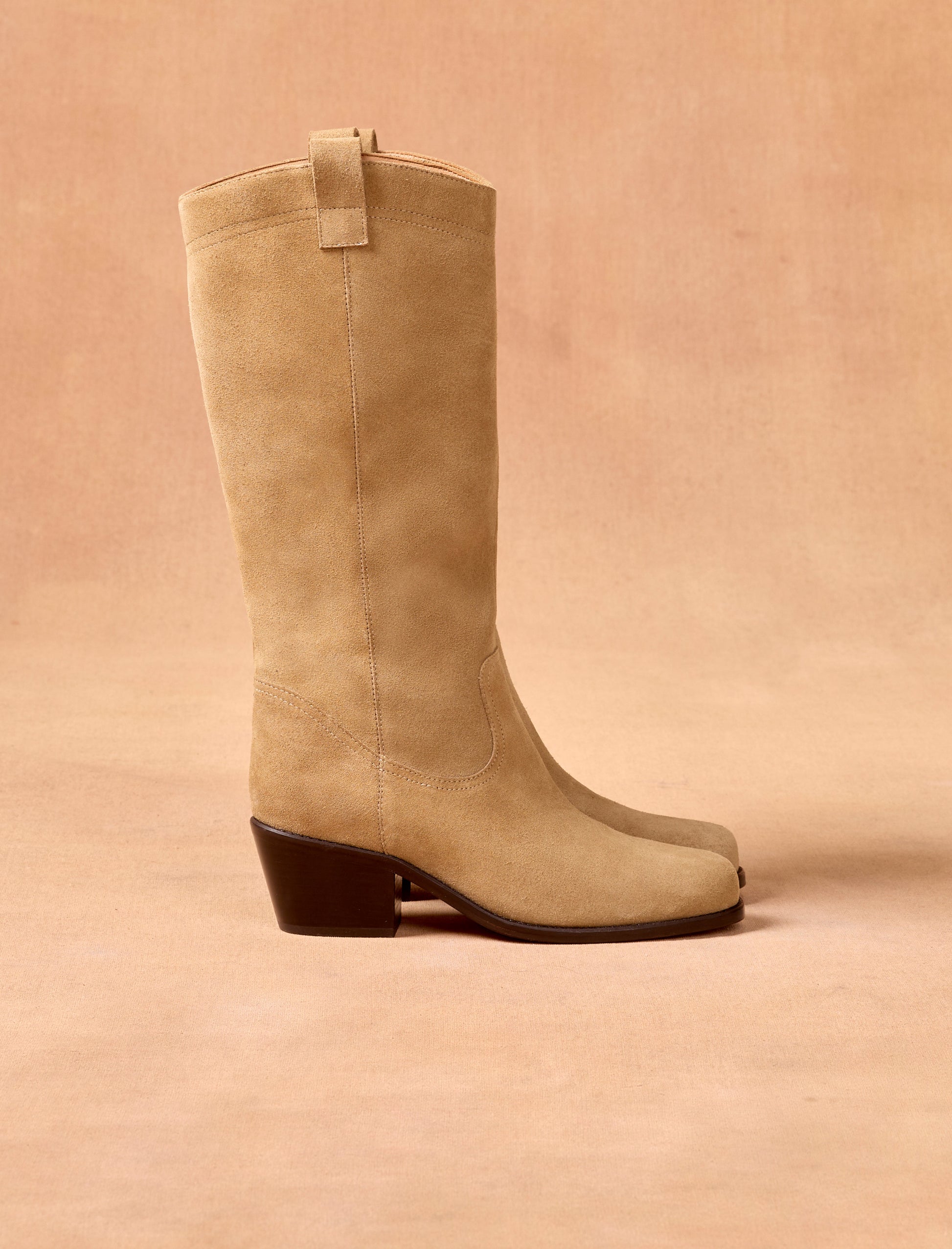 The cowboy boots make a grand return at Pied de Biche! Featuring a slanted heel, a rounded toe, and a tall shaft, these boots perfectly embody the spirit of the American West. These women's boots offer a contemporary and bold look. Equipped with pull tabs at the top of the shaft, our Arianne cowboy boots are easy to slip on. They effortlessly pair with a denim mini skirt or bohemian-style dresses.