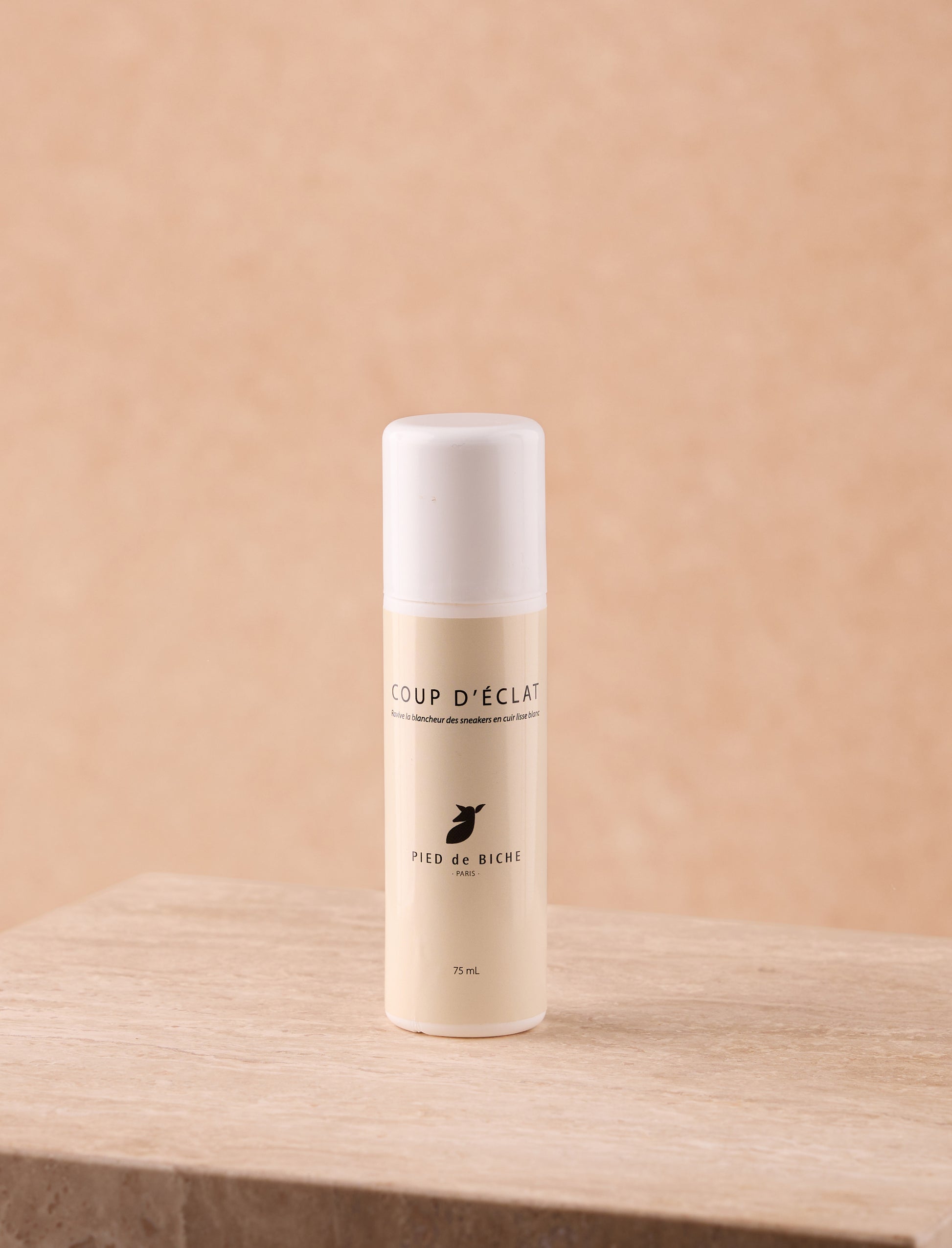 Discover the Coup d'éclat: an essential care product that recolors, nourishes, and protects the leathers, textiles, and technical materials of white sneakers.