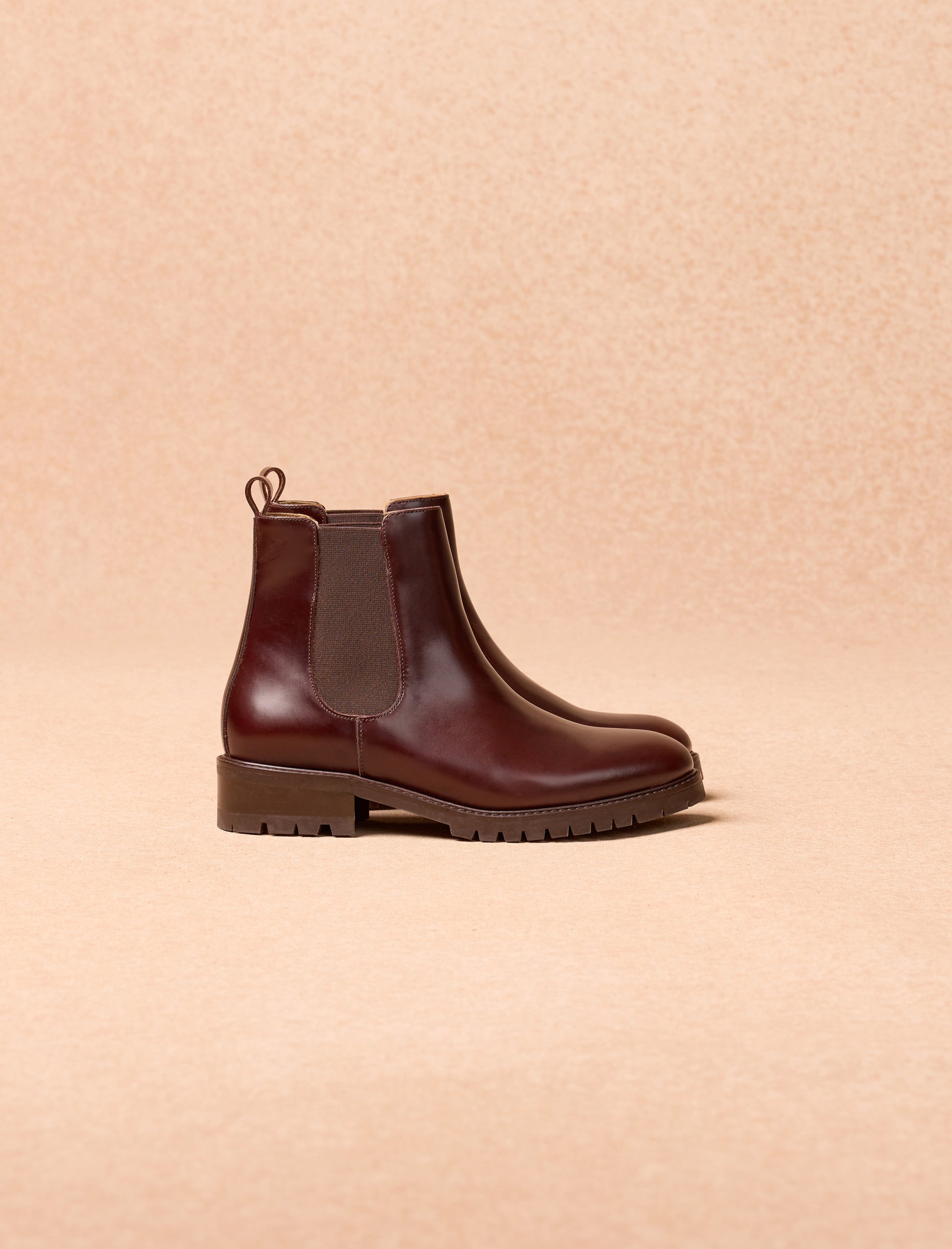 - Chelsea ankle boots crafted from glazed brown calf leather