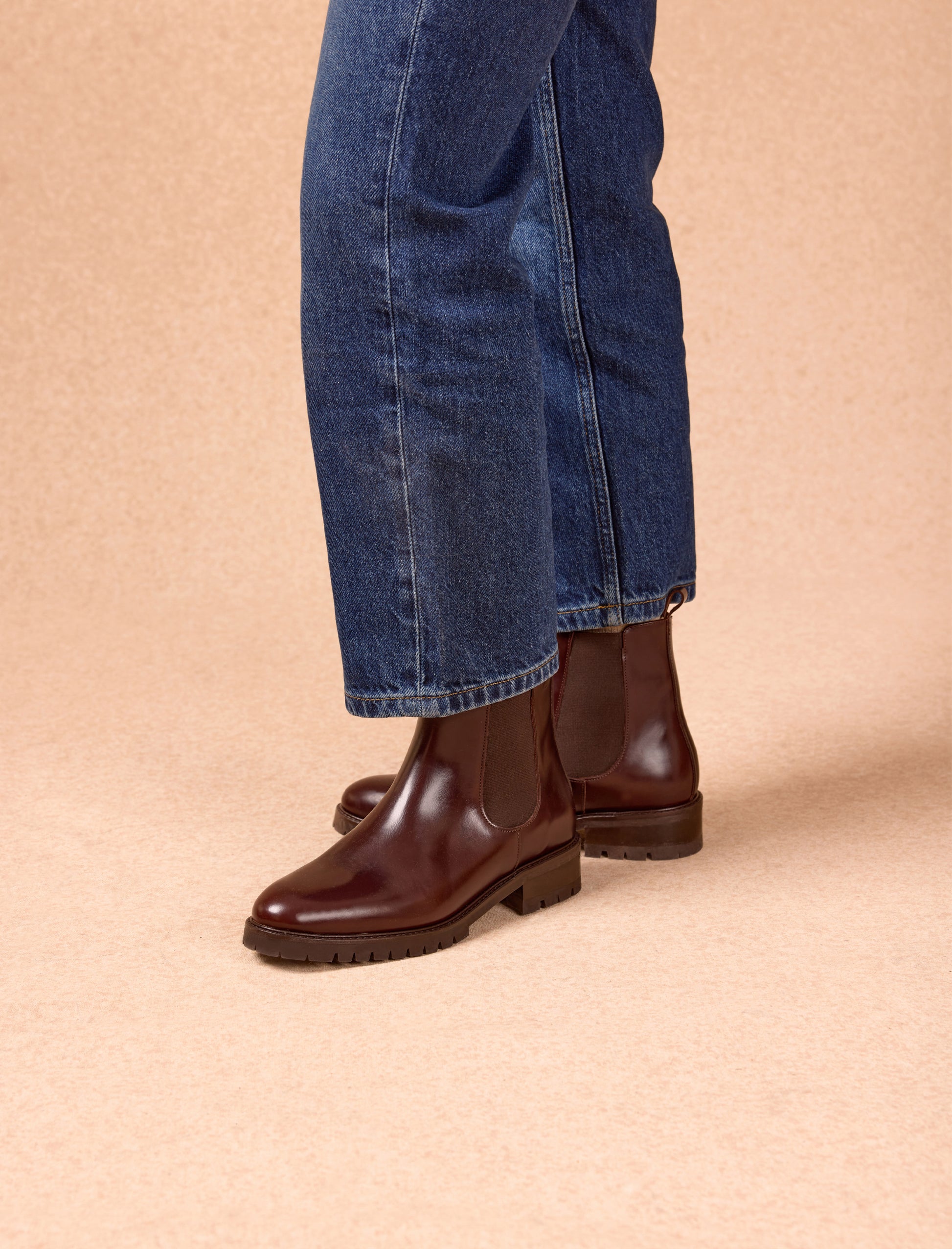 With their timeless silhouette, the Joy Chelsea boots establish themselves as a winter wardrobe essential. Crafted from glazed cowhide leather sourced from Spain, they feature a serrated sole and a 4 cm heel to combine comfort with style. Easy to slip on, they pair just as well with jeans as with a dress, for a look that’s always perfectly balanced.