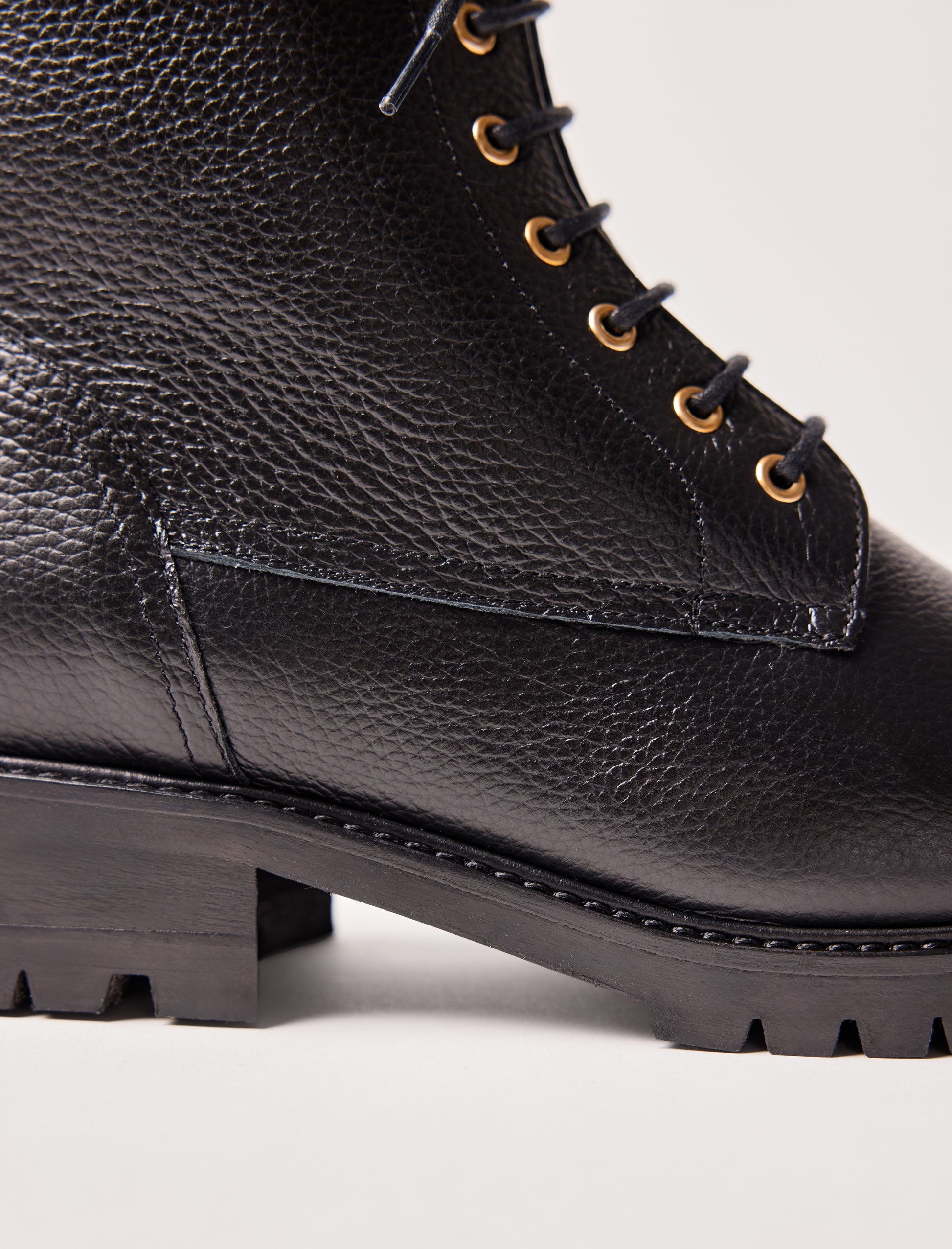 Our insulated combat boots are designed to keep your feet warm and dry during cold, wet winter days. The 100% sheep wool lining provides warmth and comfort, while the rubber outsole offers excellent grip on icy or snowy streets. The side zipper allows for easy on and off.