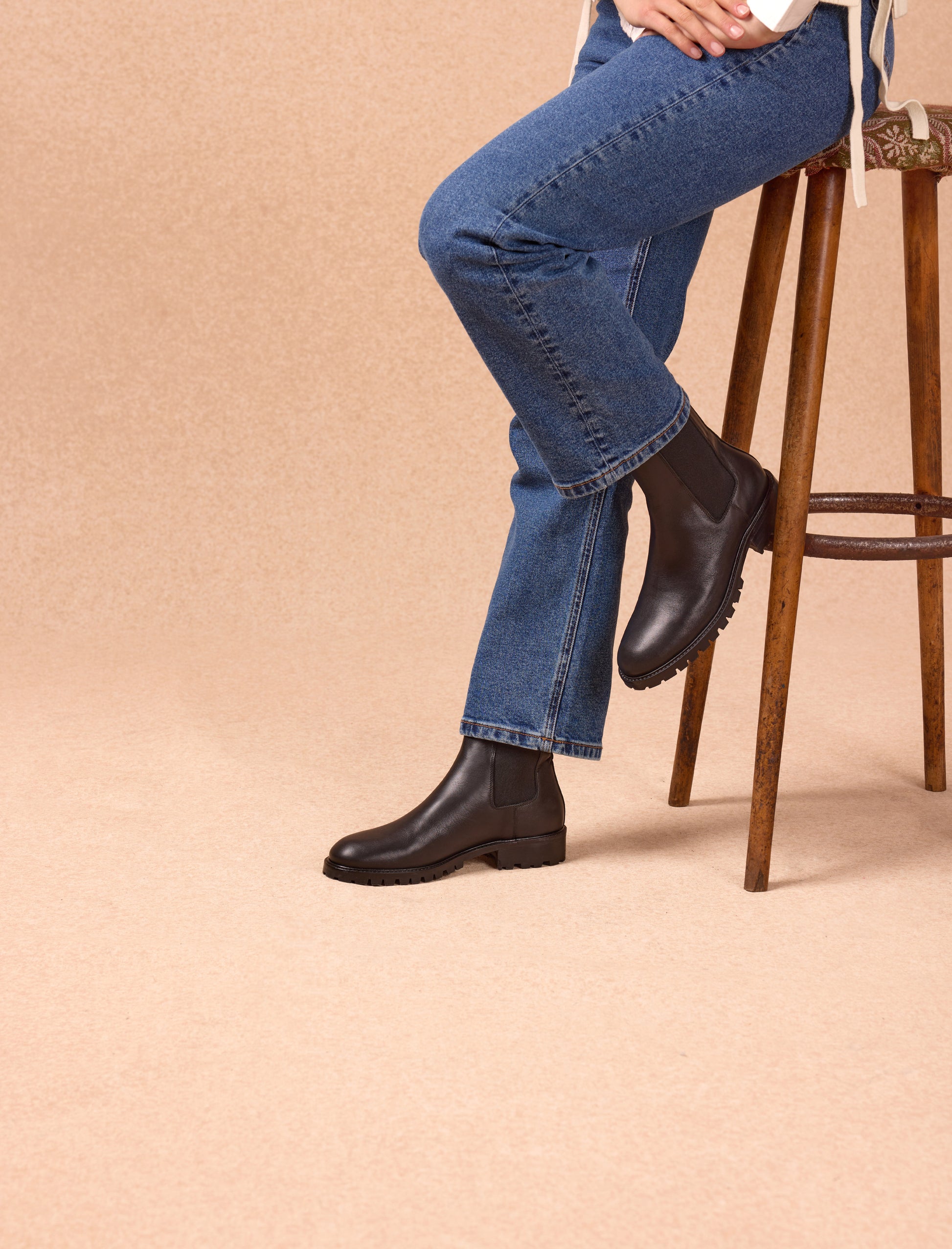 The Margaux black smooth leather Chelsea boots are a must-have for your winter wardrobe. Comfortable thanks to their calfskin leather lining, they feature a ridged rubber sole with a leather toe cap for enhanced grip and durability. A timeless piece, easy to style for everyday wear.