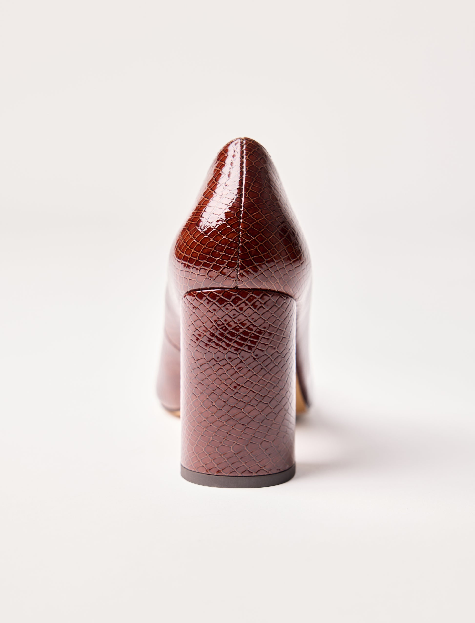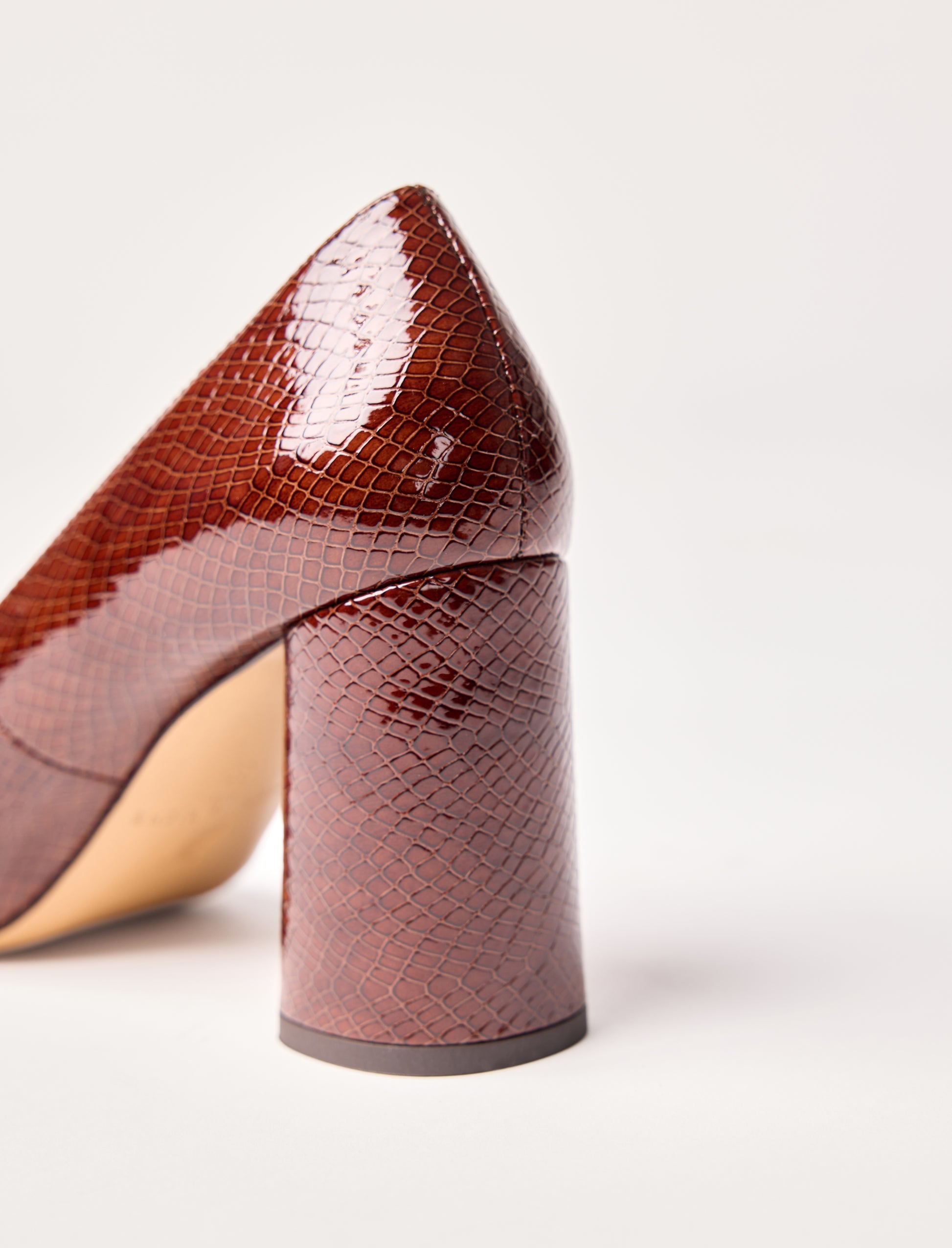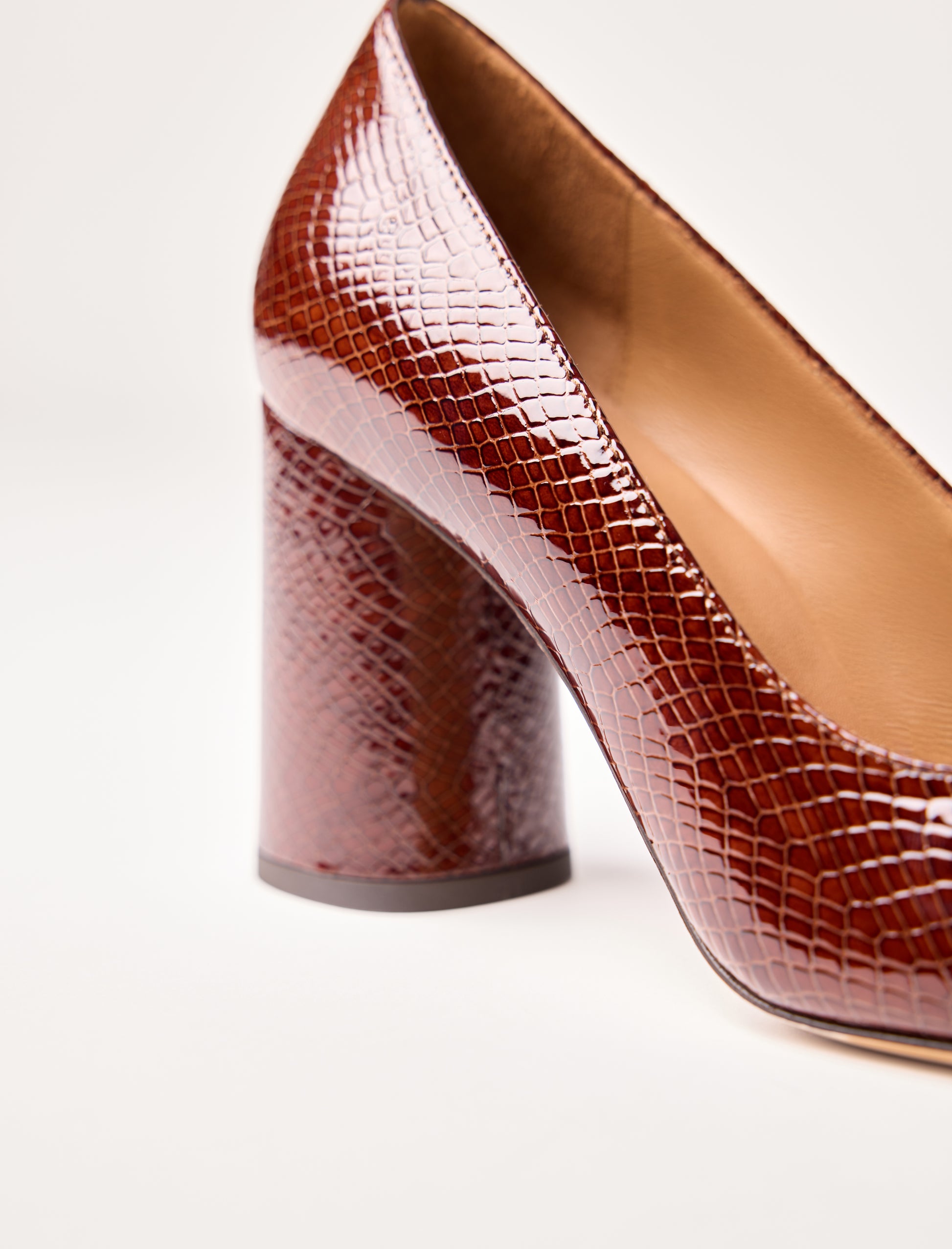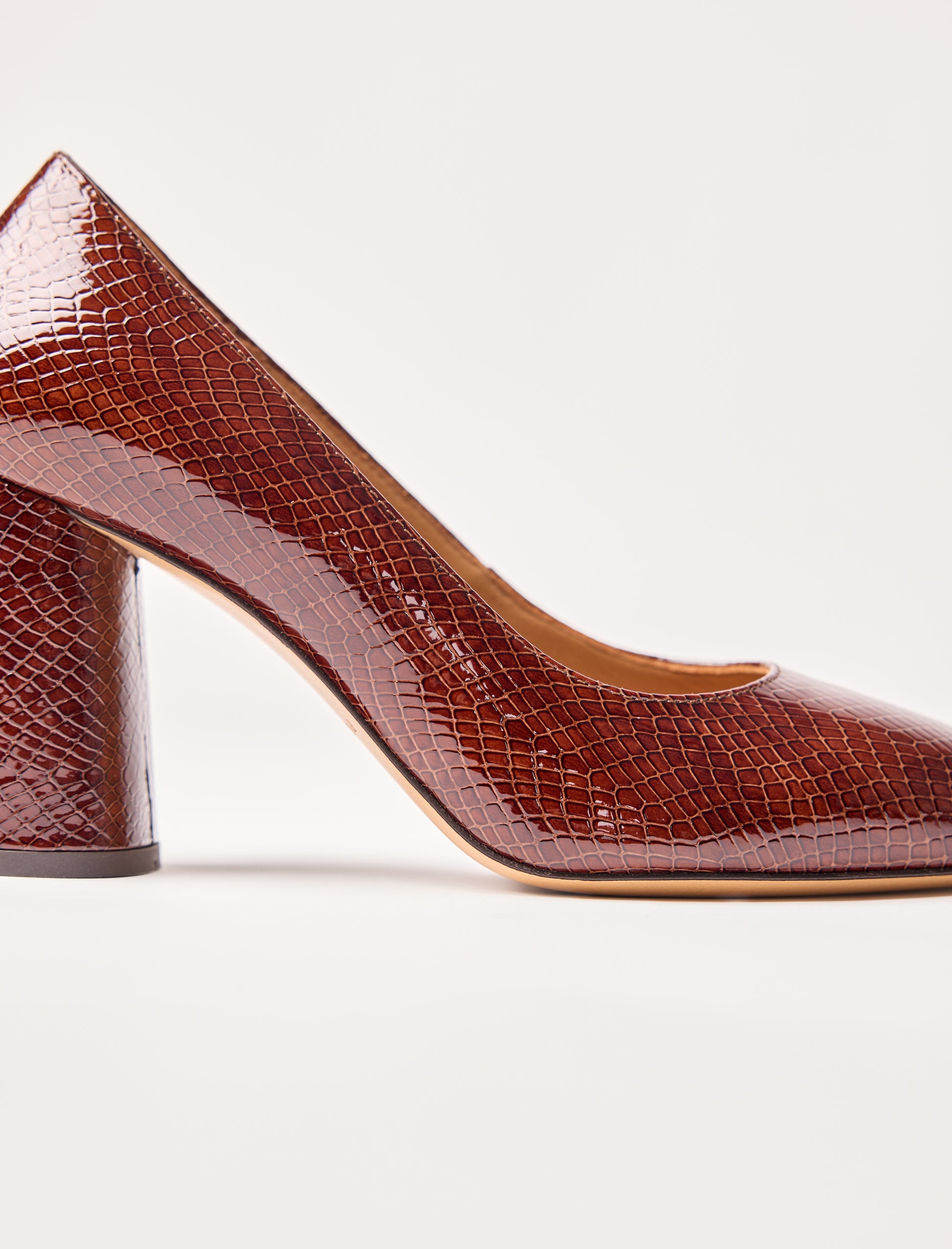 An essential piece in your wardrobe, this pump gracefully transitions through the seasons. Crafted from glossy, scaled leather, featuring an 8 cm flared heel and a cushioned comfort pad at the heel, this pair will be your go-to for any occasion.