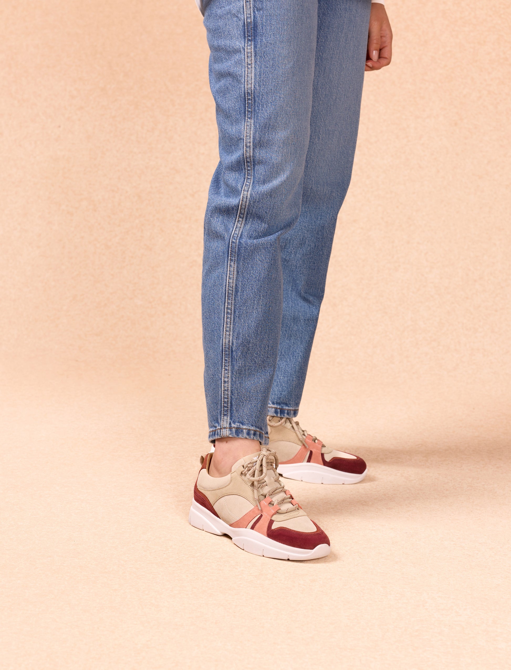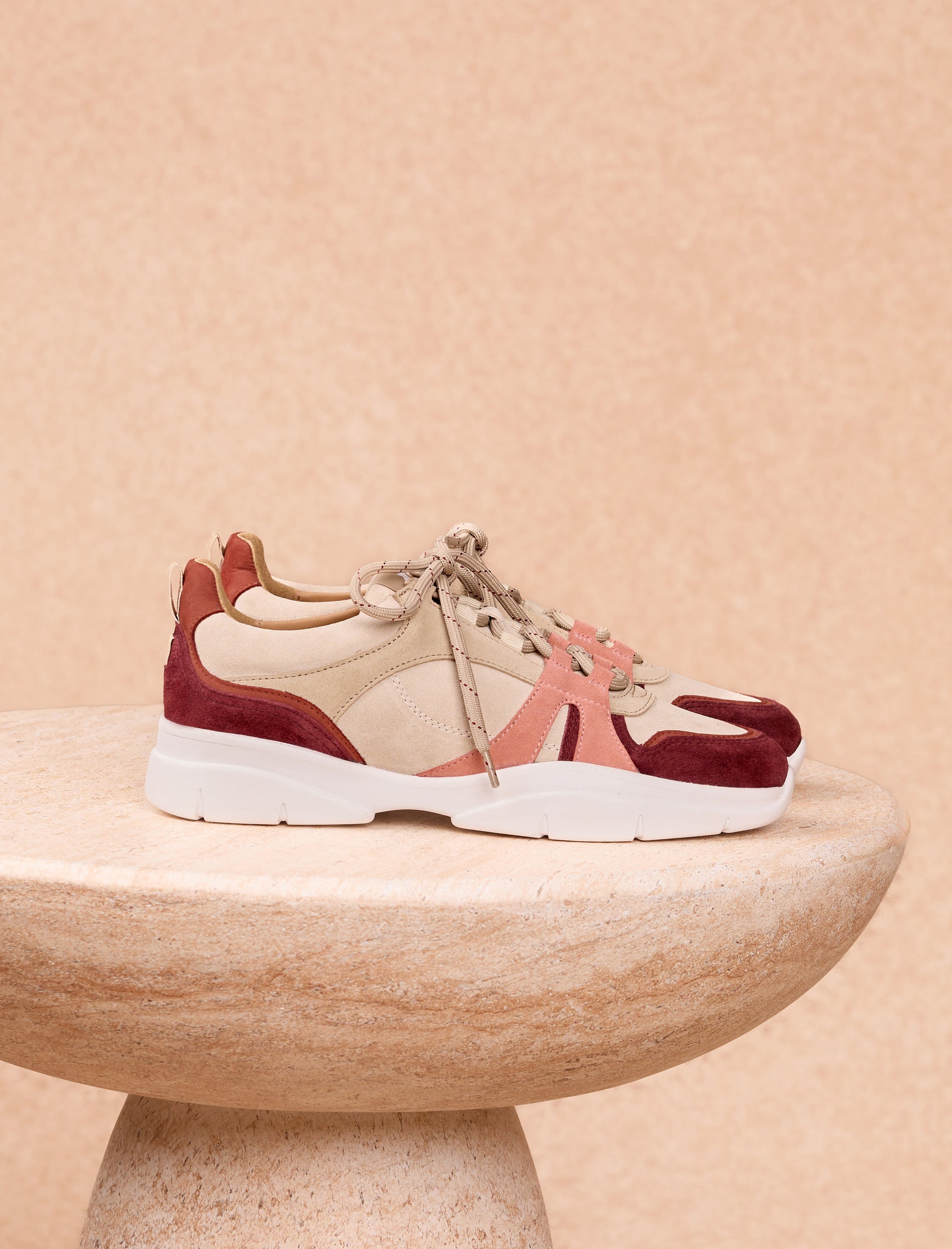 Pied de Biche reimagines her pair of sneakers with a relaxed, urban style, featuring a thick sole. The Paola version stands out with its burgundy-colored suede and nubuck leather. All these leathers, carefully selected in Italy, guarantee exceptional quality and comfort.