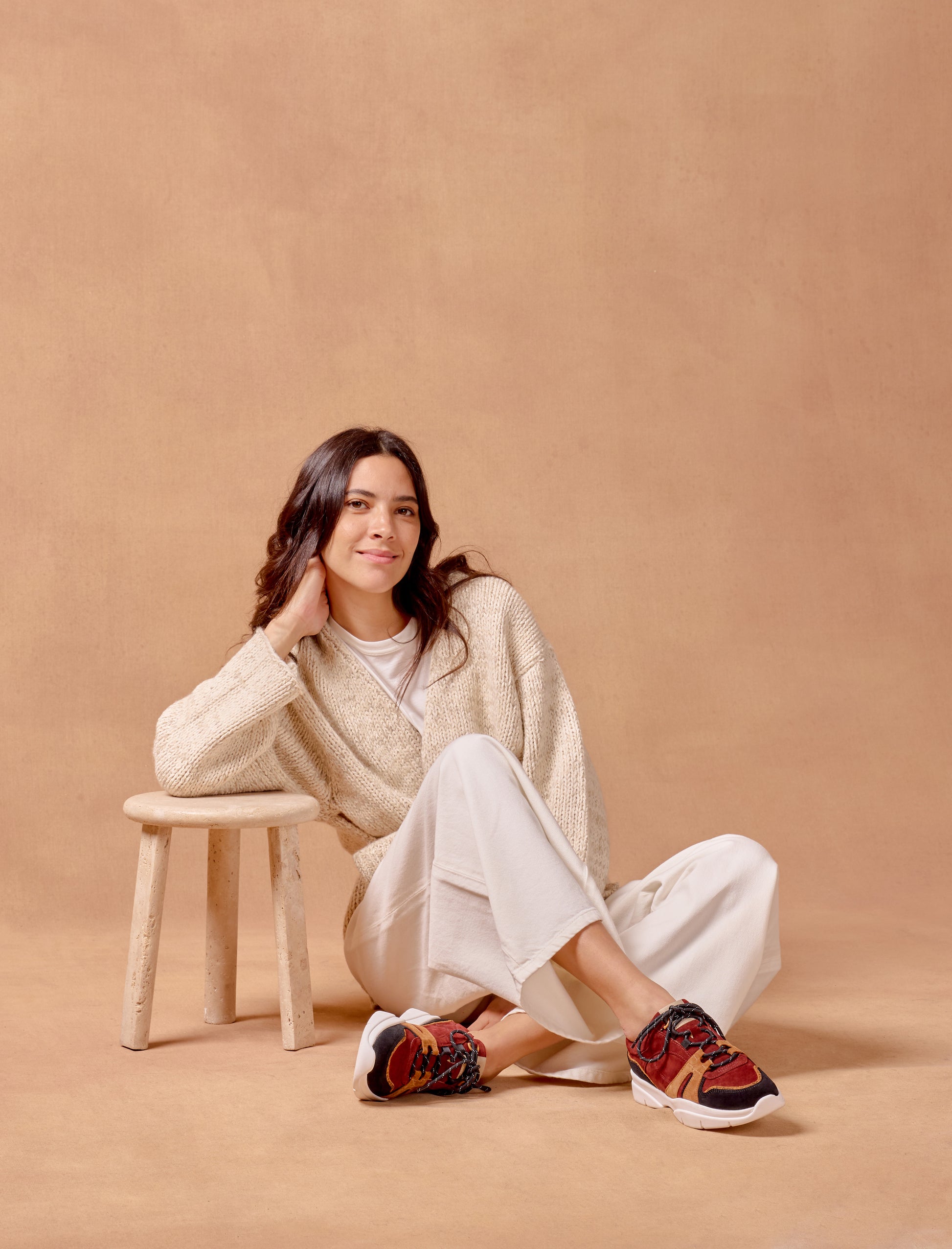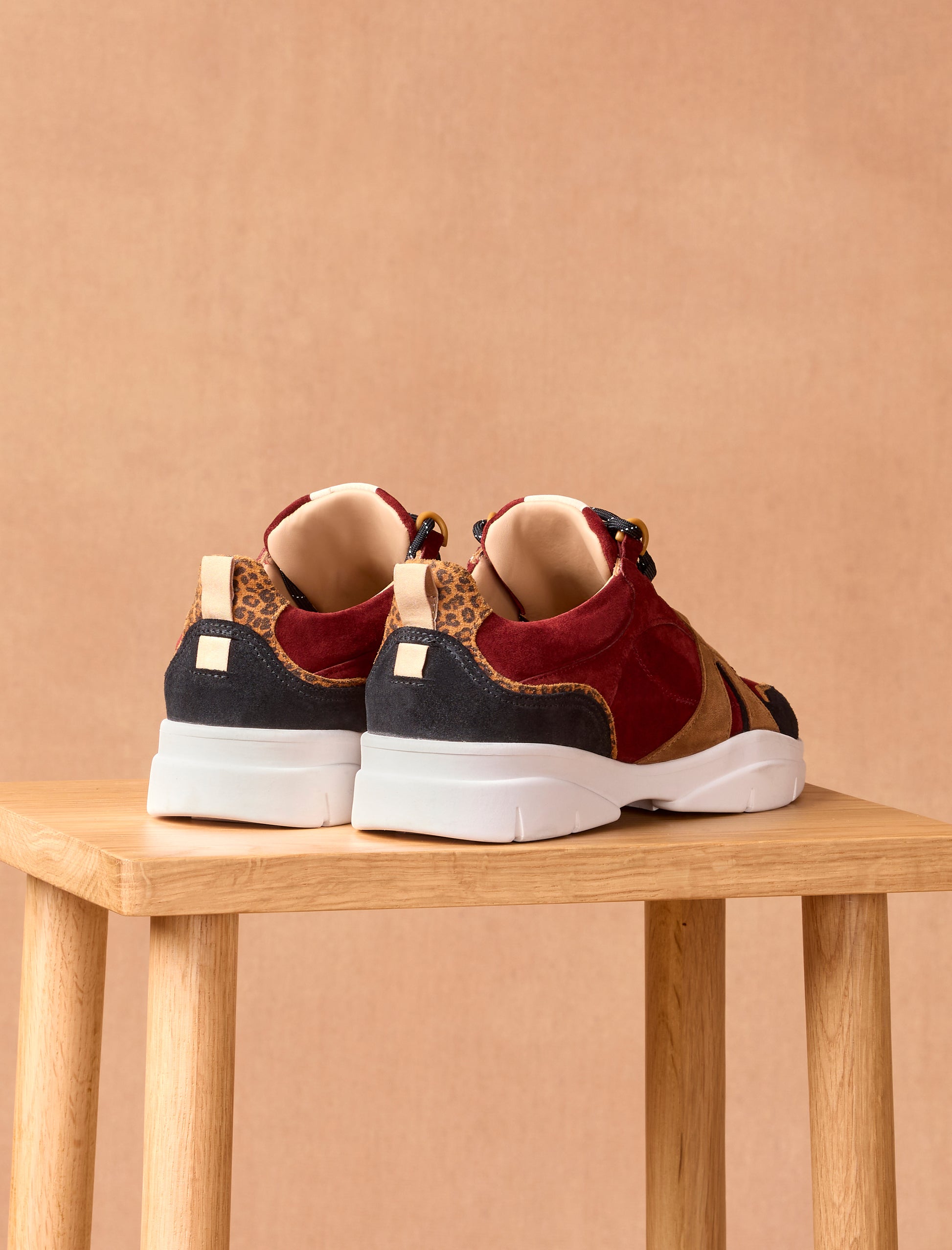 Pied de Biche unveils its brand-new pair of sneakers with a relaxed, urban style, featuring a thick sole. The Paola version stands out with its leopard-printed suede leather, accented with garnet-colored suede details. All these leathers, carefully selected in Italy, guarantee exceptional quality and comfort.