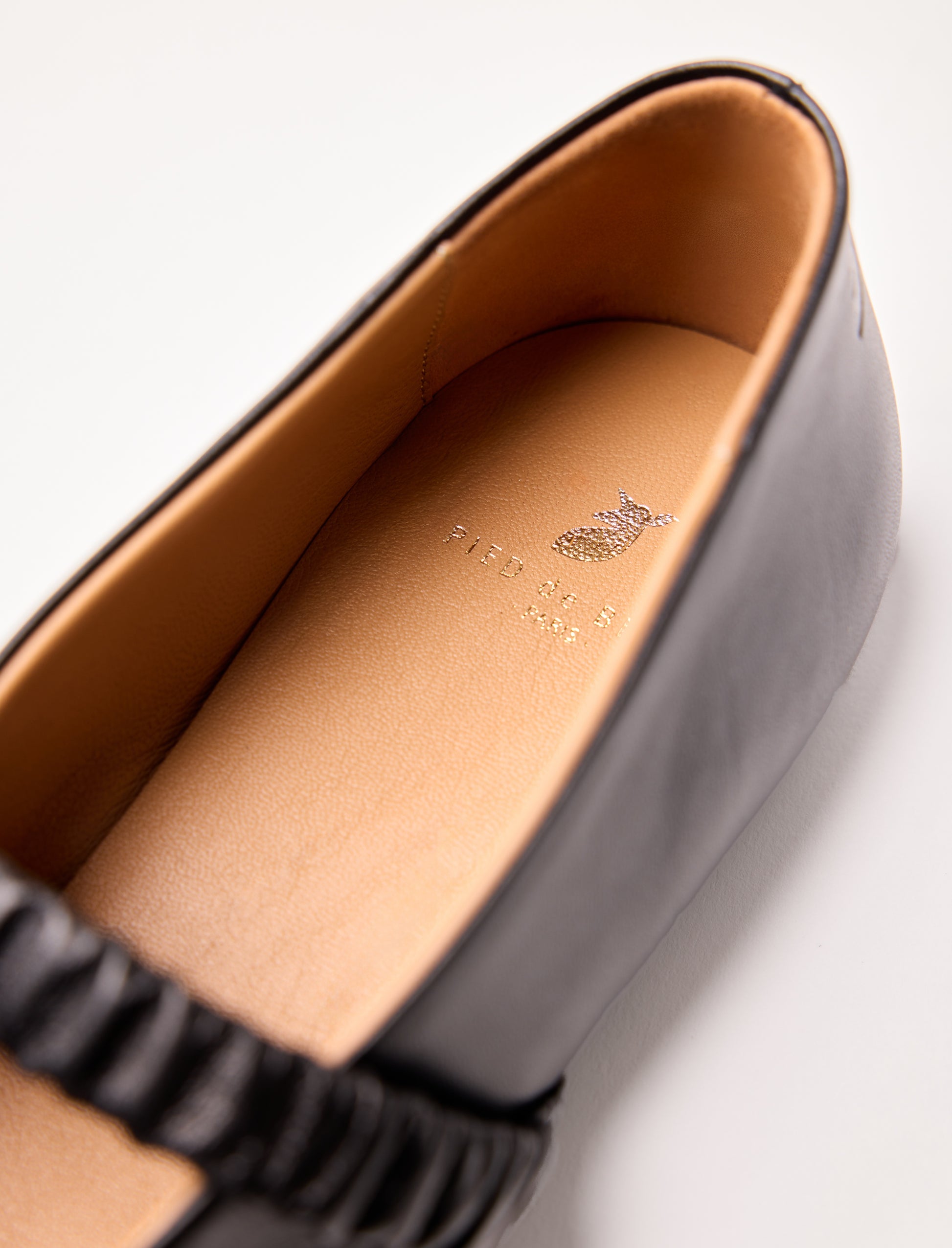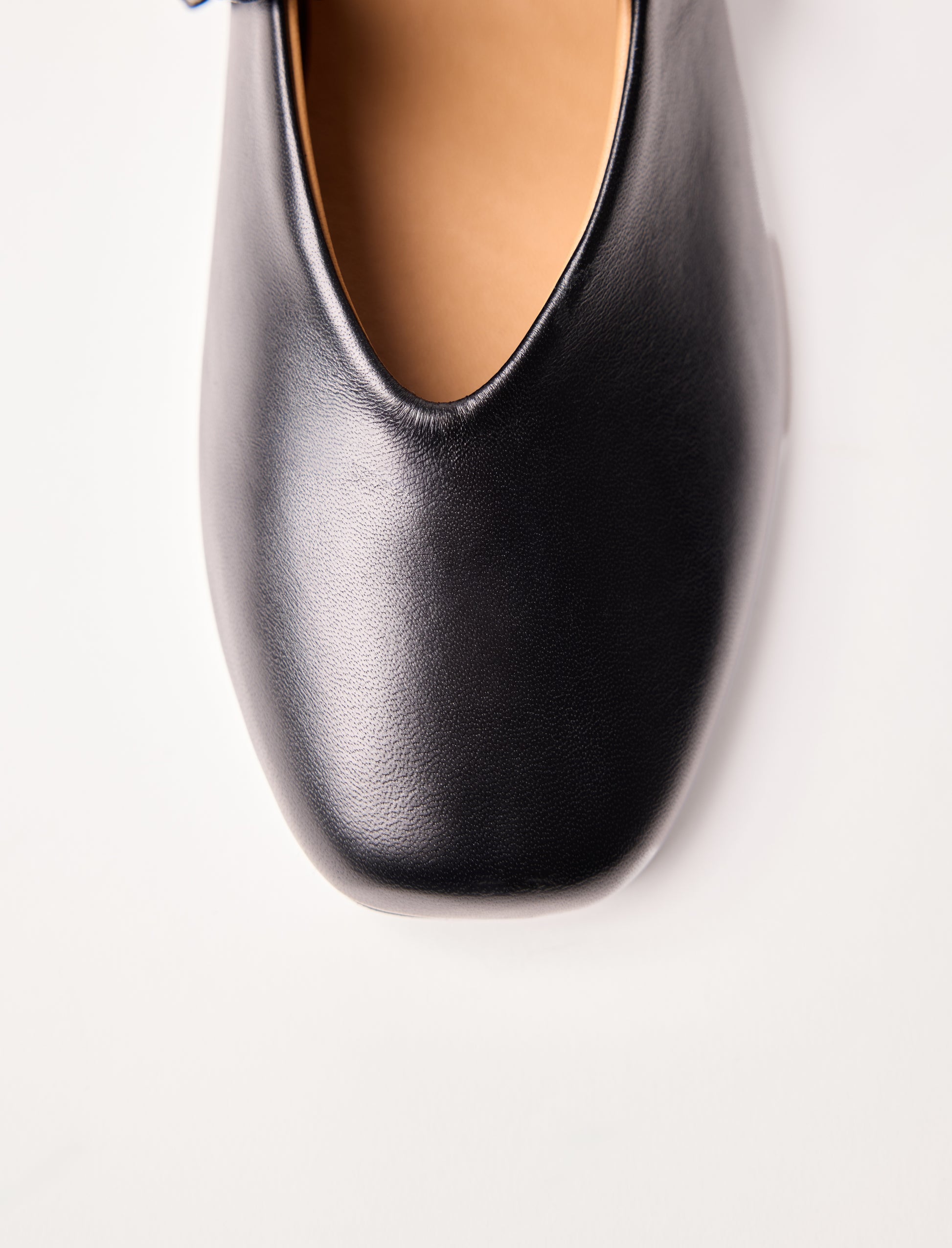 Our smooth black leather ballet flat is the essential style piece for the season. Crafted in Spain, it features a goat leather lining for enhanced comfort. Its nubuck-tanned sole provides lightness, while the elastic strap in pleated leather ensures a secure fit.