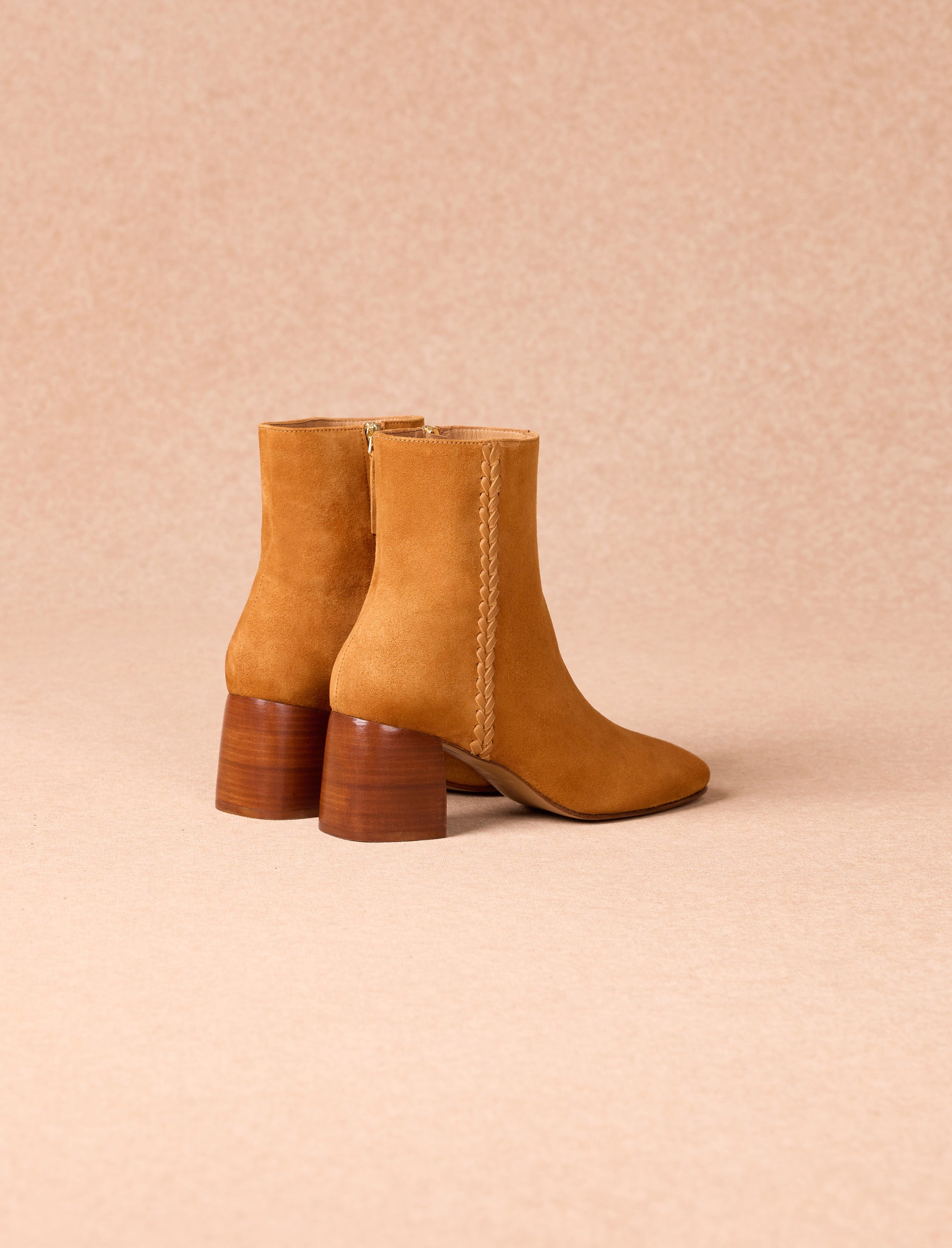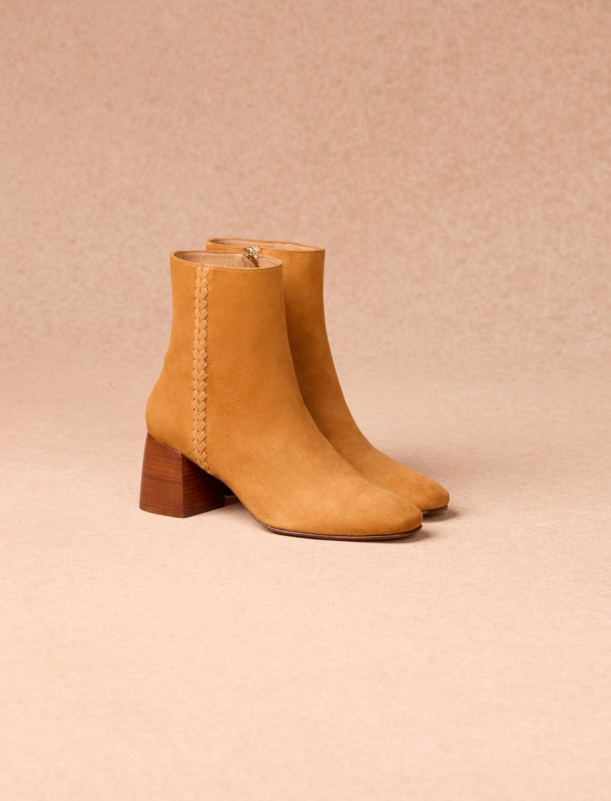 - Velvet camel goat leather ankle boots with braided details in smooth goat leather