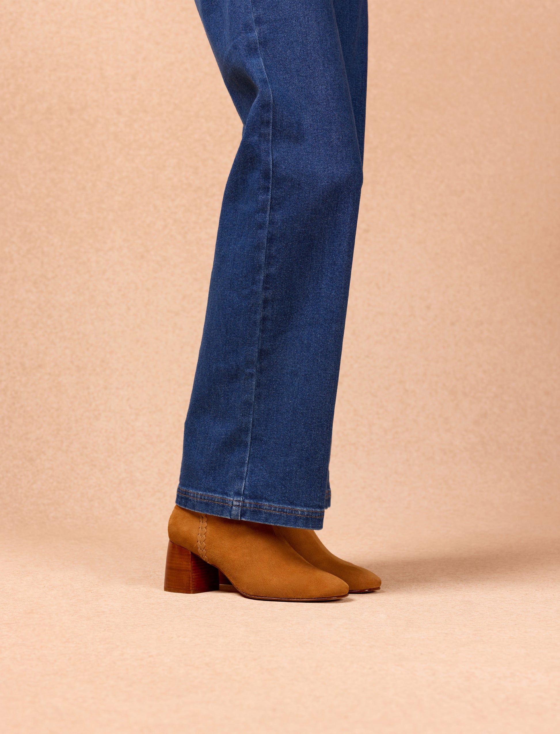 The perfect ankle boot for spring, Sarah stands out with its handcrafted camel suede goat leather braid, complemented by smooth goat leather details. Featuring a 6.5 cm leather-covered heel, this boot combines elegance with comfort. Carefully crafted in Portugal, our ankle boot is lined with goat leather for exceptional softness.