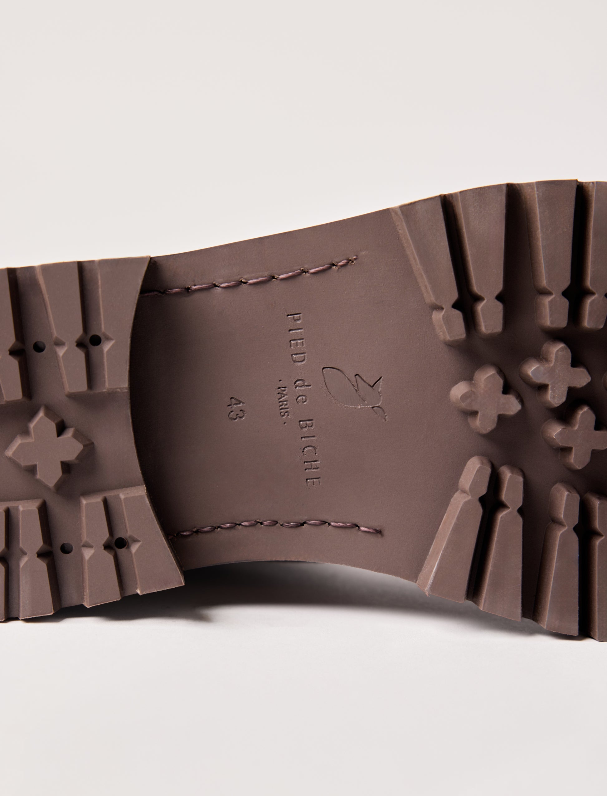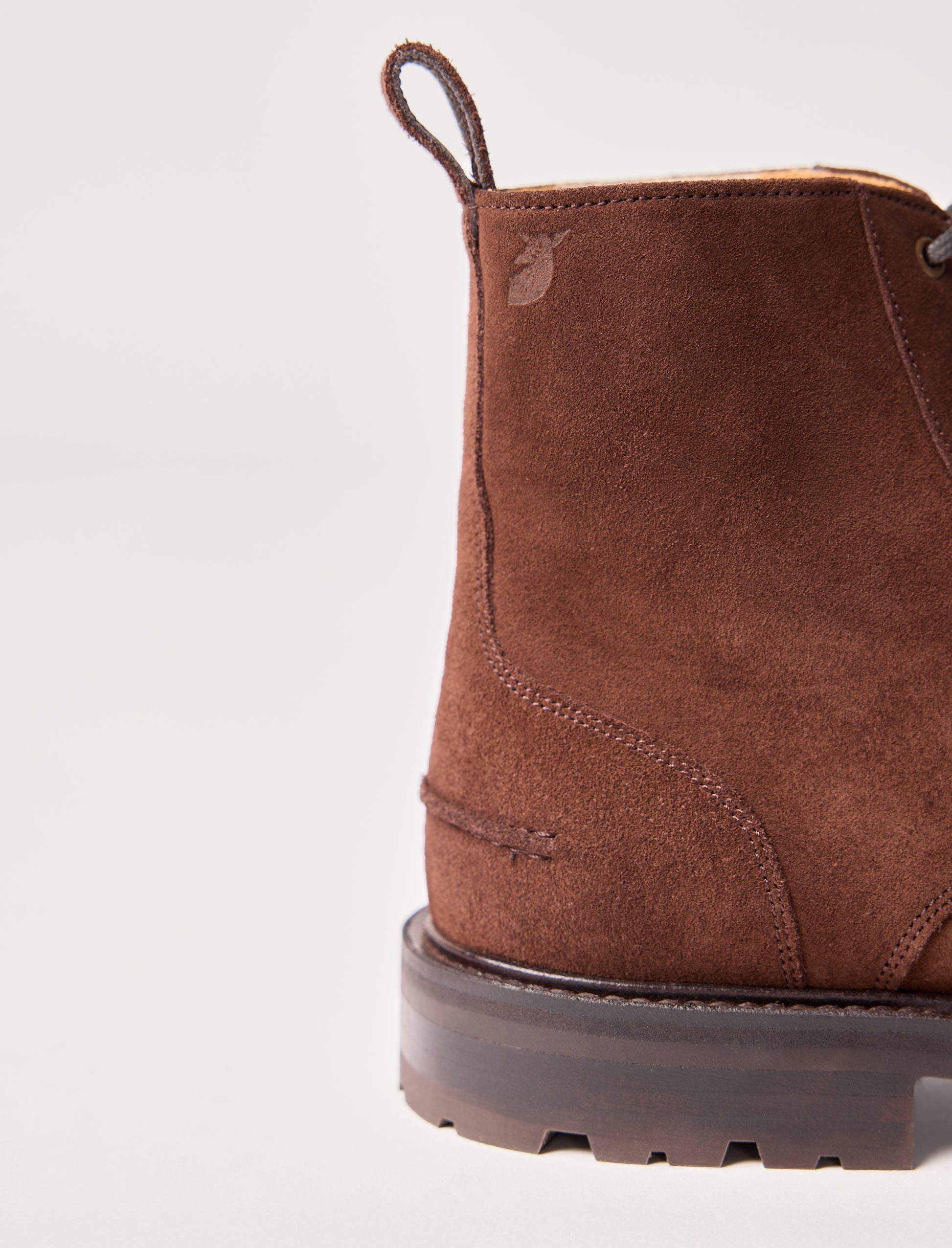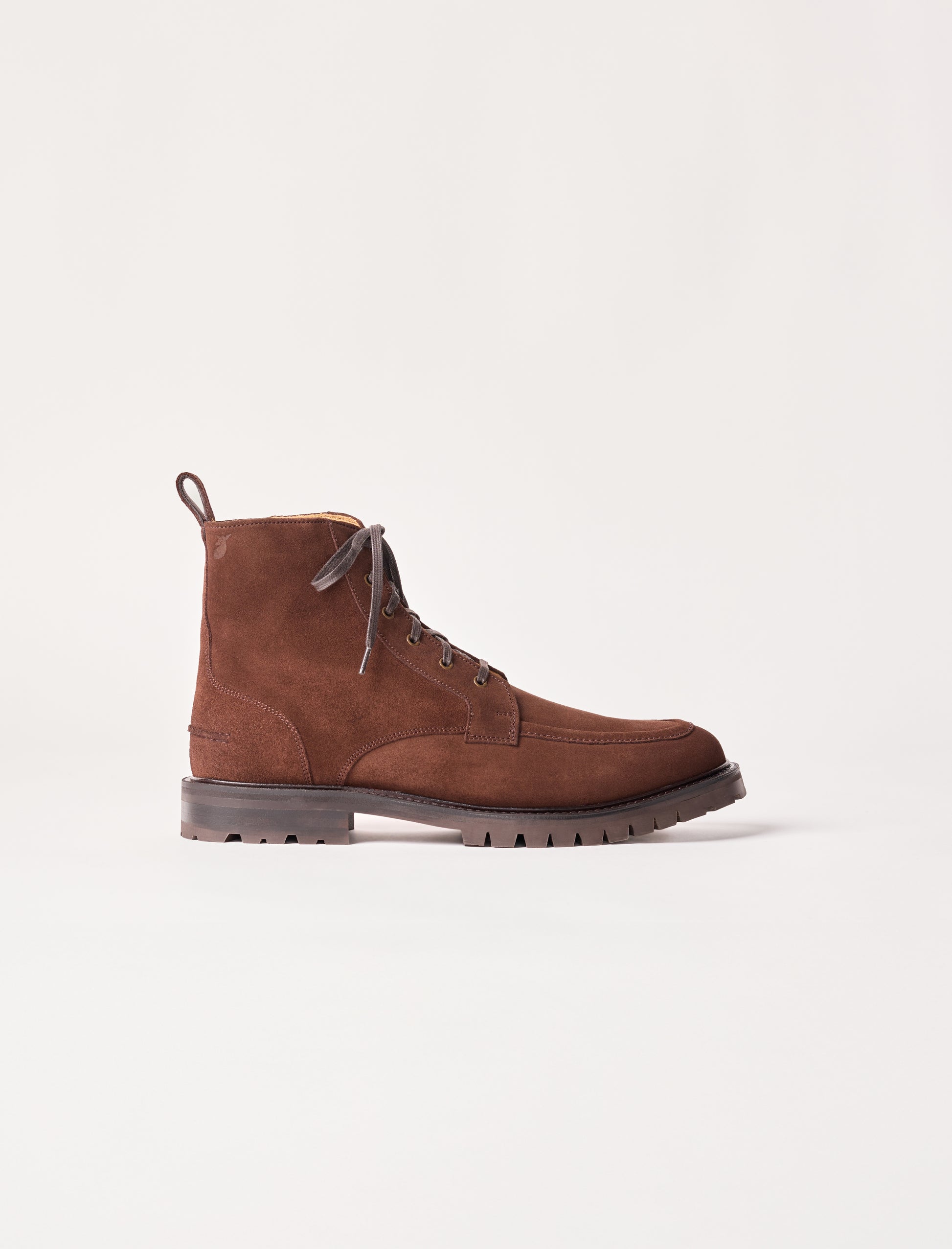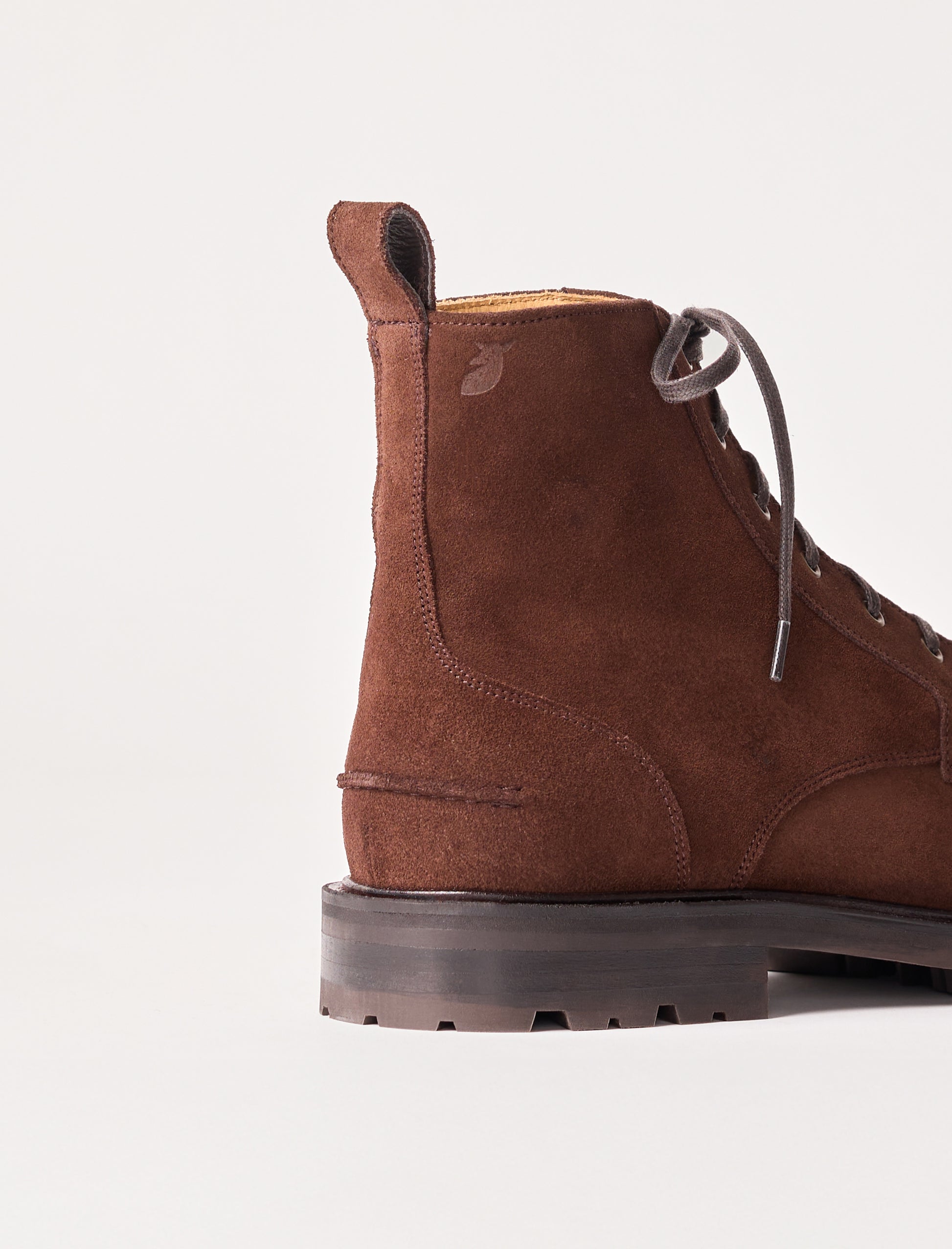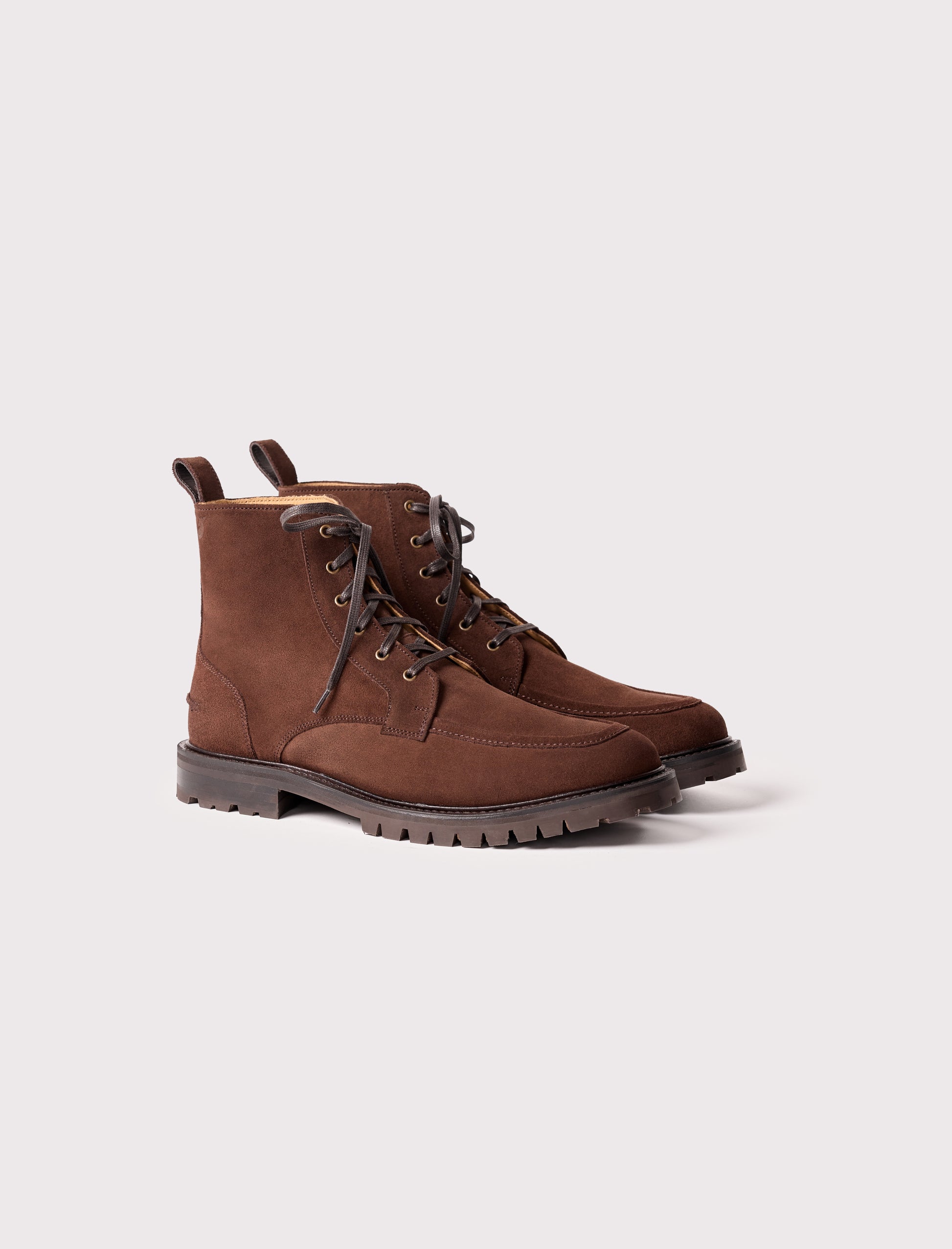 - Bottines combat boots en cuir de vachette suède waterproof brun