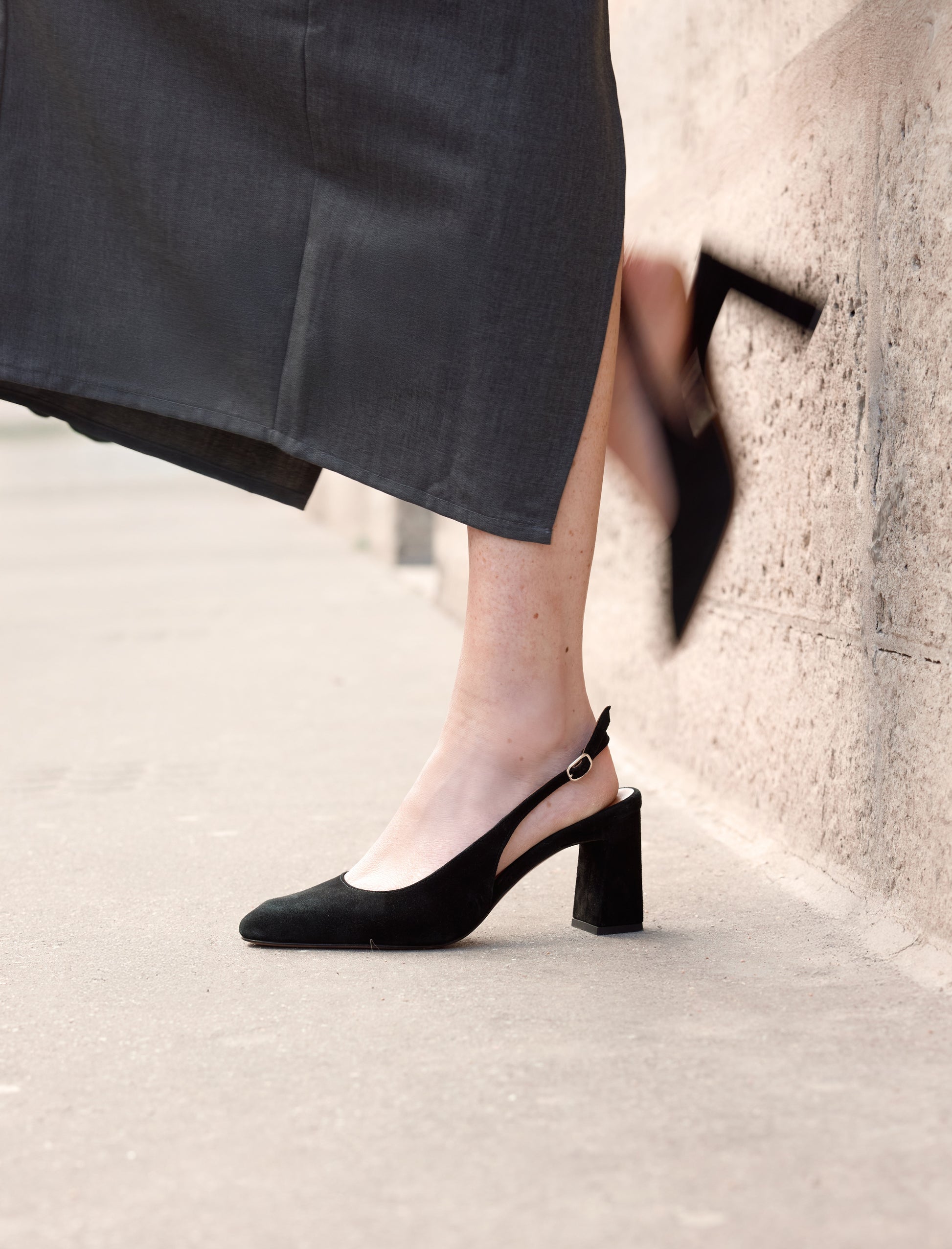 L’escarpin Ambre revisite la slingback dans une version résolument élégante, pensée pour les grandes occasions. Son talon de 7,5 cm élance la silhouette tout en assurant confort pour vos pieds. Décliné en deux teintes, un champagne éclatant pour la mariée et un noir profond pour une allure intemporelle, Ambre s’impose comme une pièce incontournable.