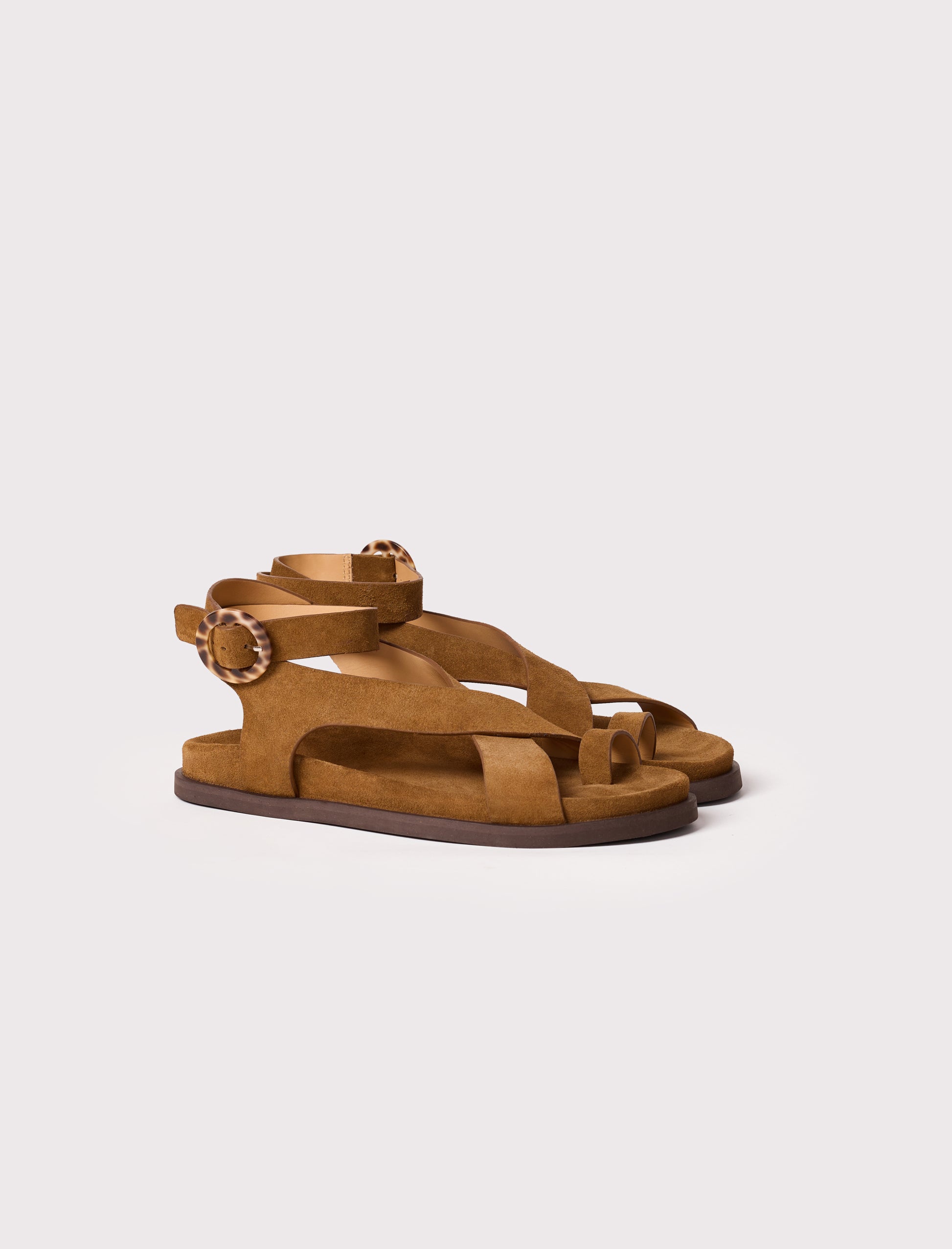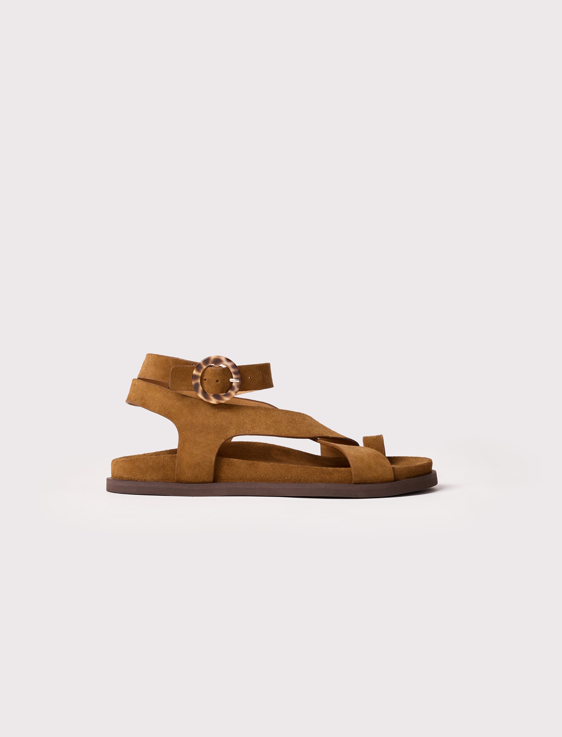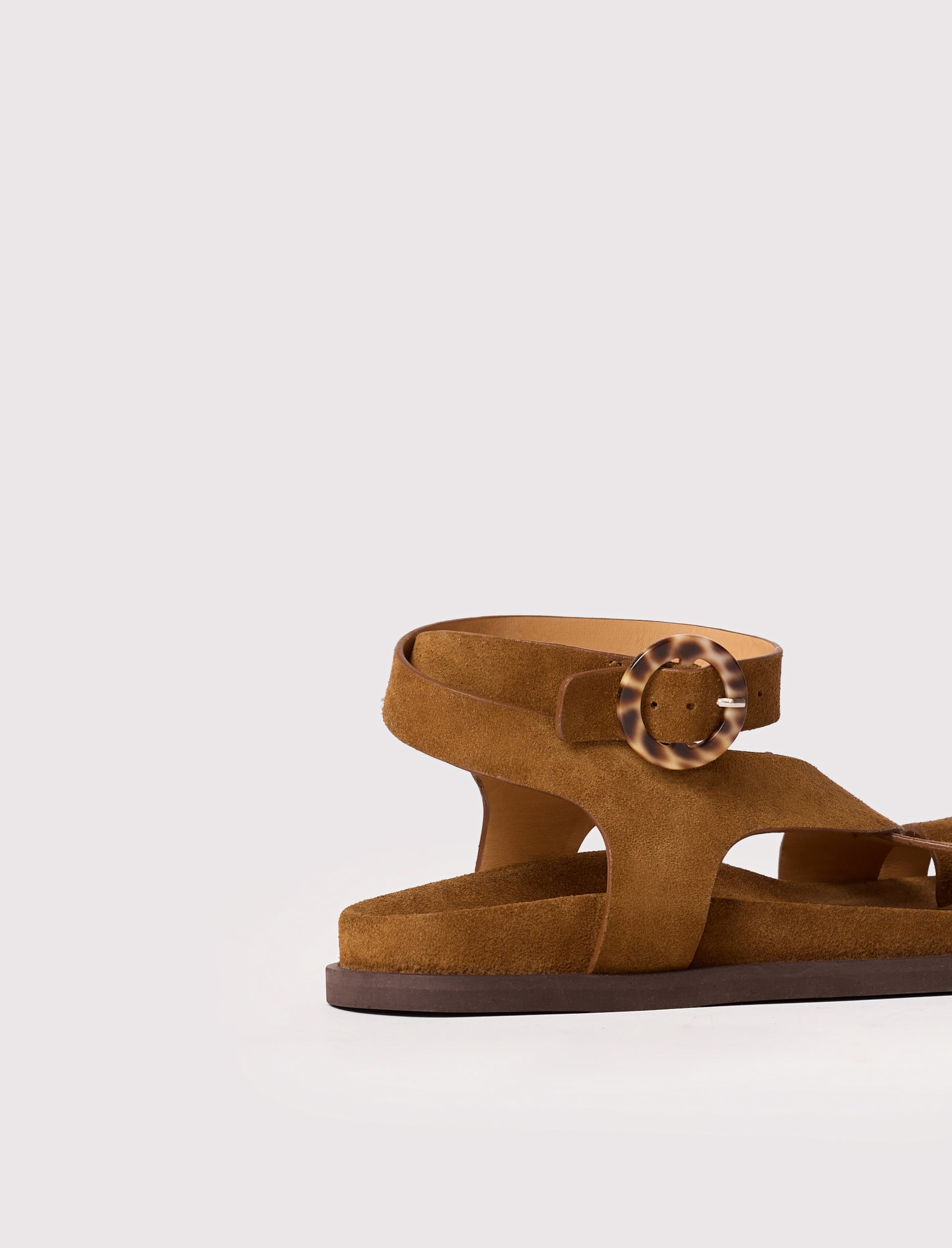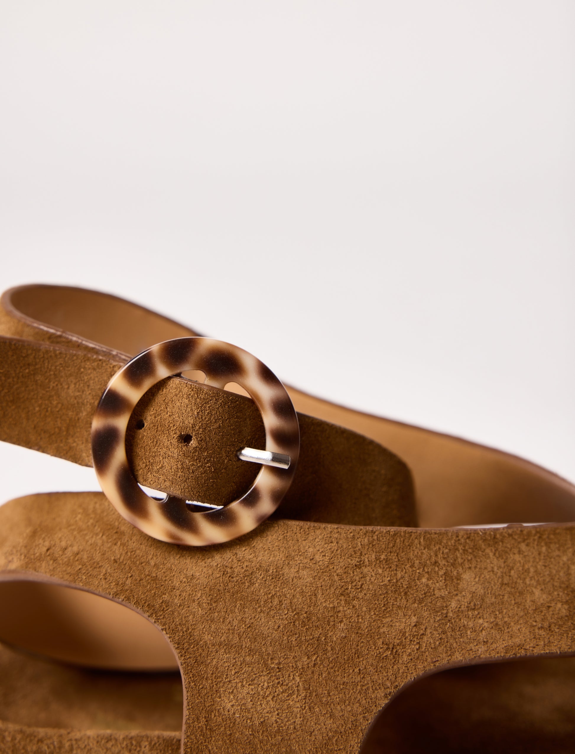 - Sandales plates Fussbett en cuir de vachette suède, avec boucle fantaisie imprimé léopard