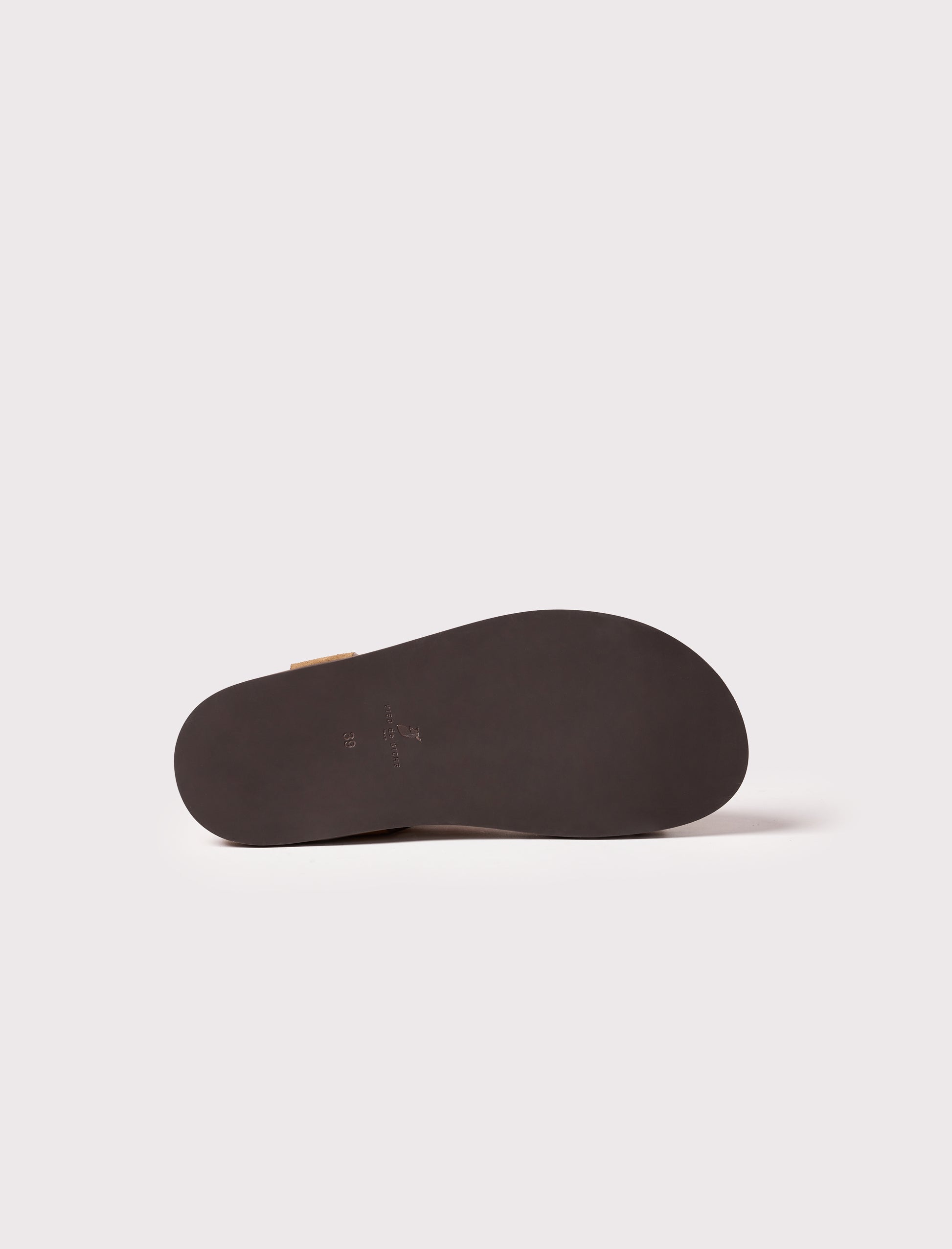 Nouvelle venue dans la collection, la sandale Axelle allie confort et allure avec son style inspiré des Fussbett. Ses larges brides s’entrelacent autour de la cheville et se ferment par une boucle à imprimé léopard. Un modèle à l’allure élégante et décontractée.