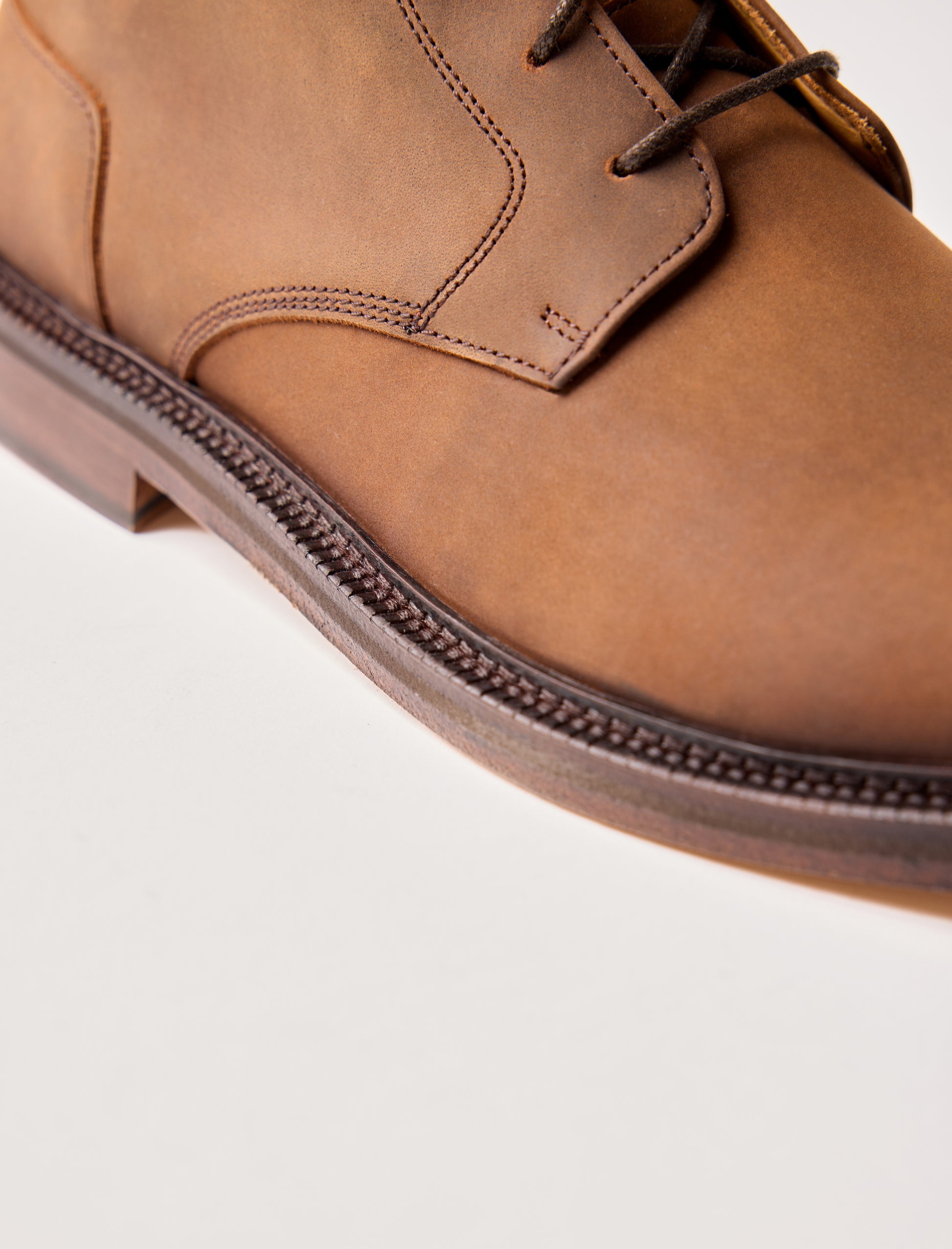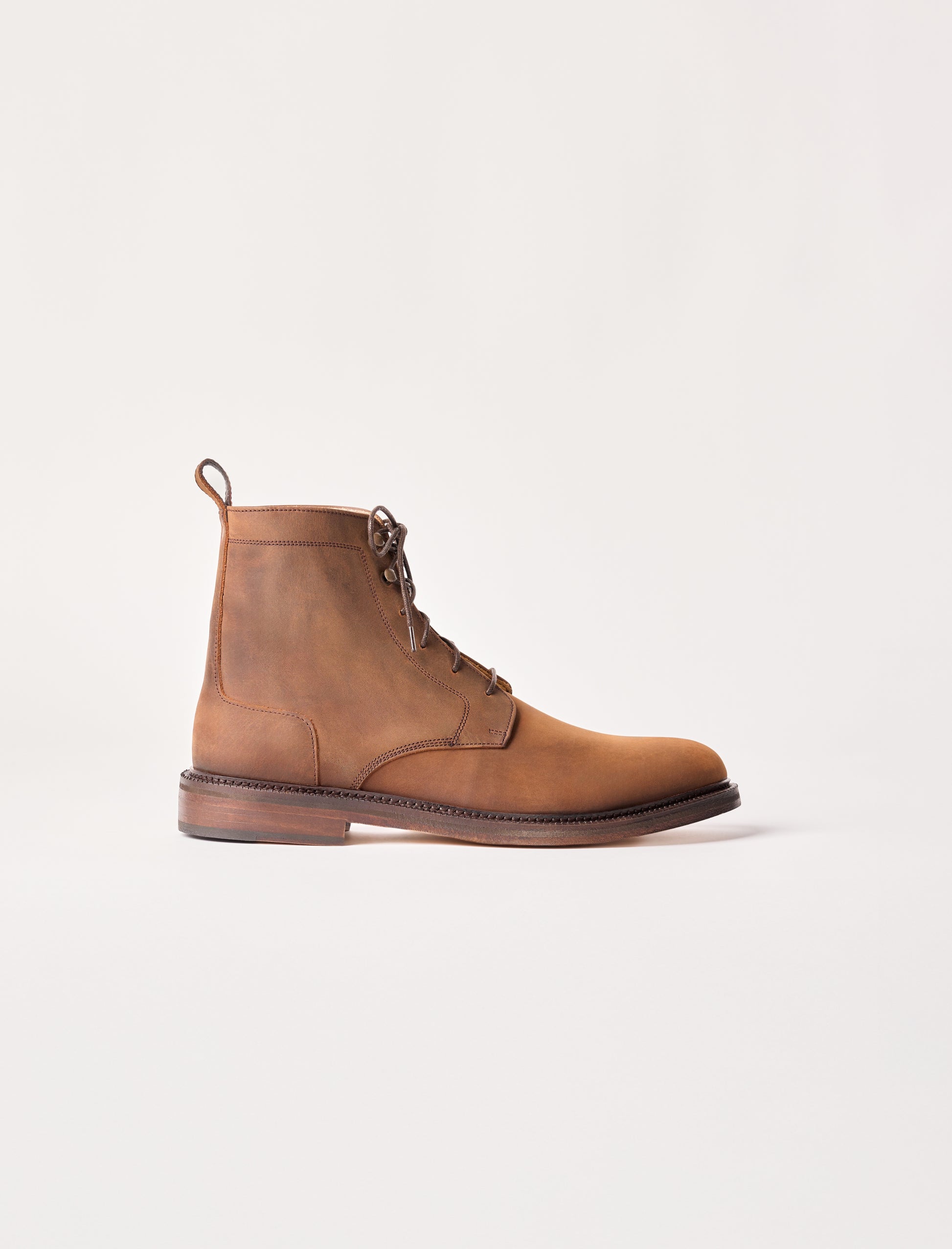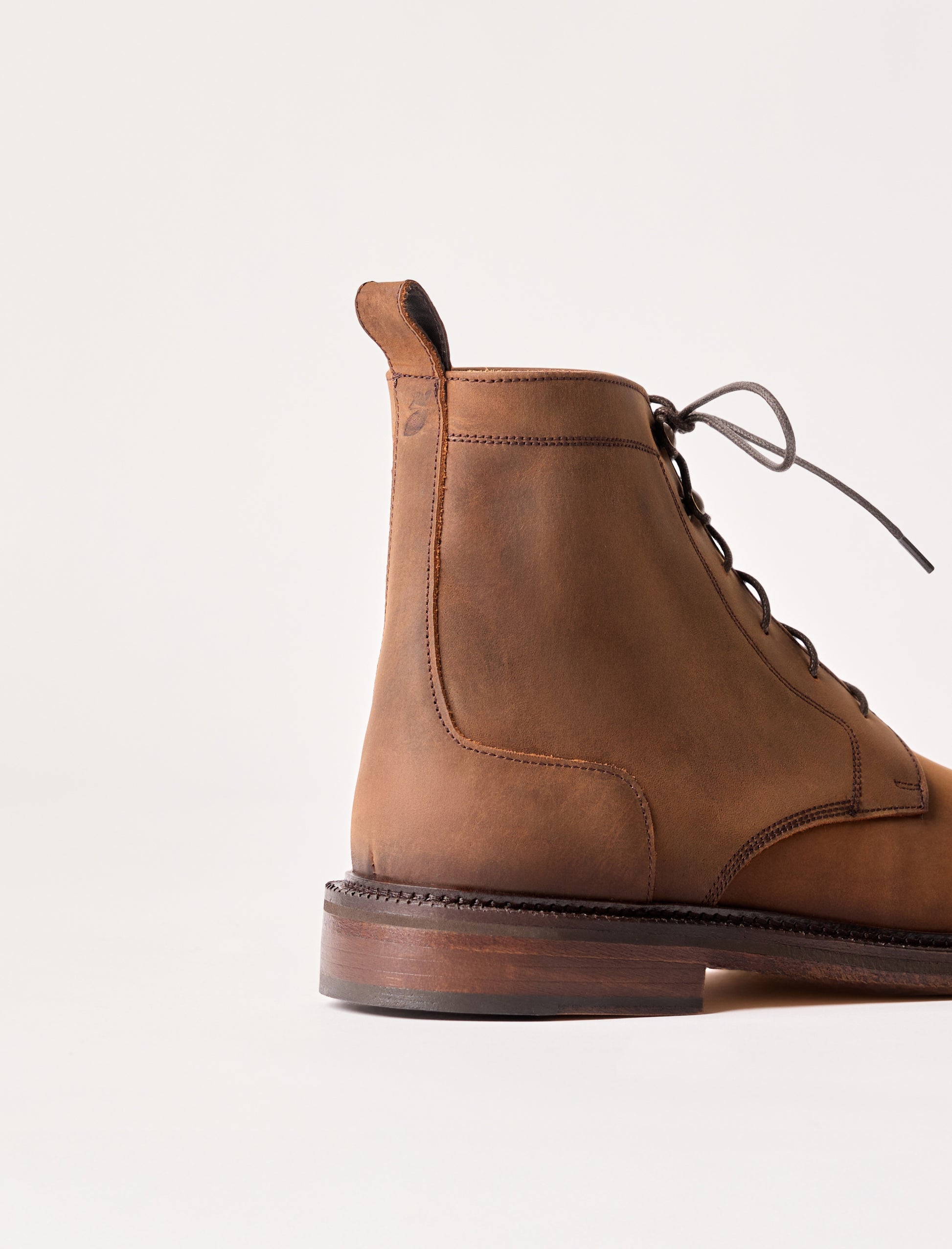 Fabriquées à la main au Portugal, ces combat boots pour homme présentent un montage et une finition irréprochables. Chez Pied de Biche, la durabilité est au cœur de notre processus de création. Nous valorisons les pièces qui se bonifient avec le temps et nous nous assurons de concevoir des chaussures qui deviennent de plus en plus belles avec l'âge. Chaque détail de cette bottine a été soigneusement pensé : cuir 100% italien, construction cousu Blake, tige et semelle en cuir avec trépointe en cuir.