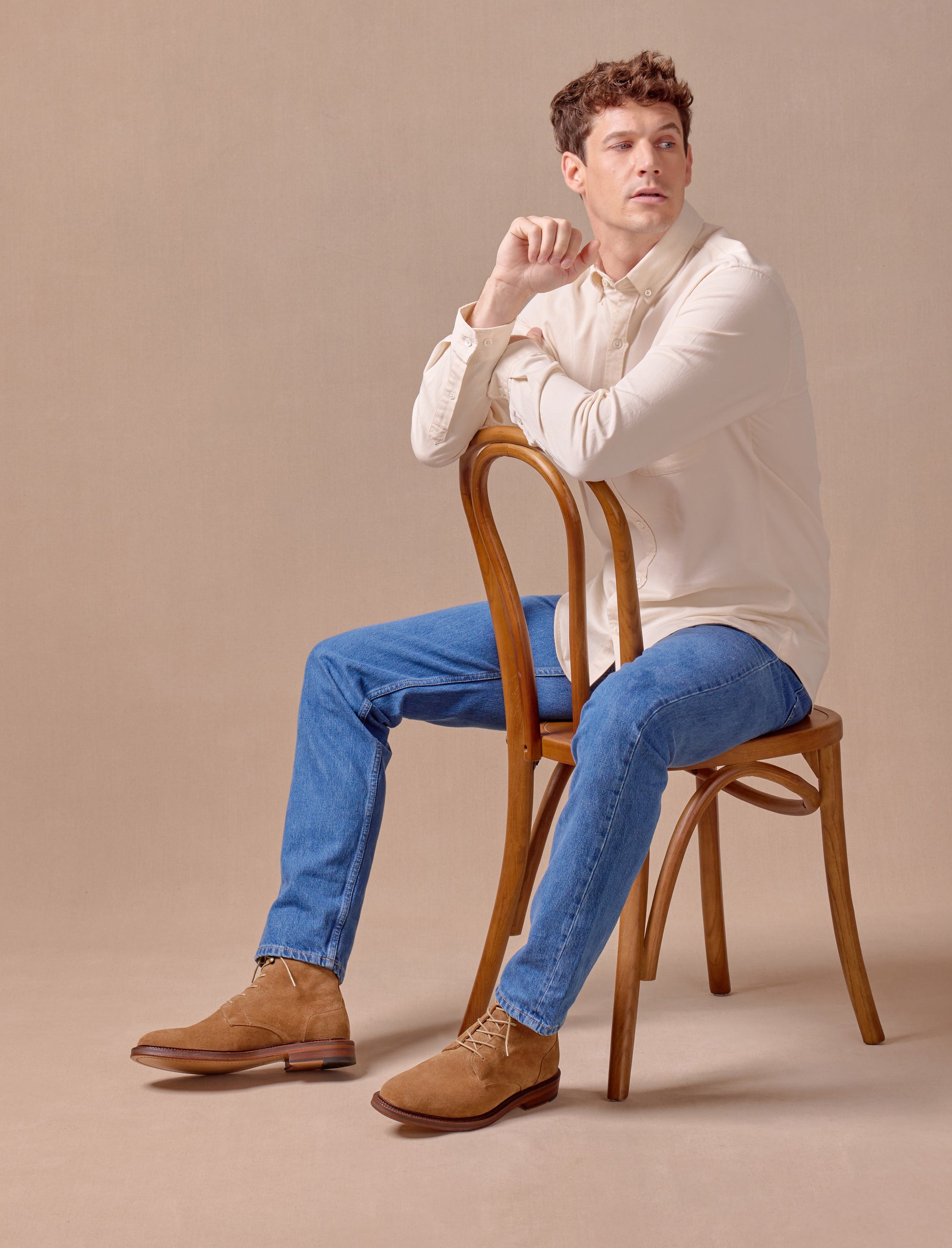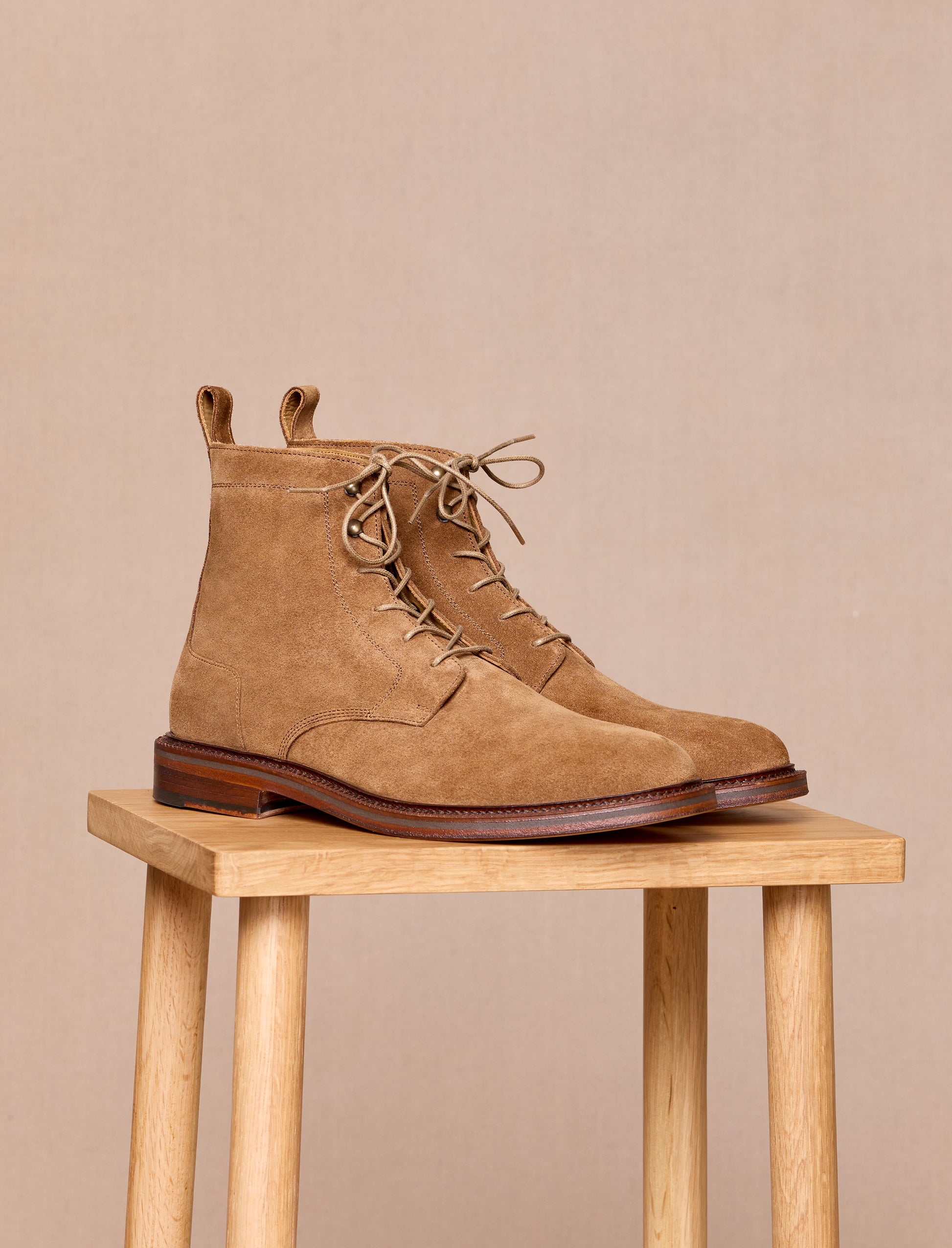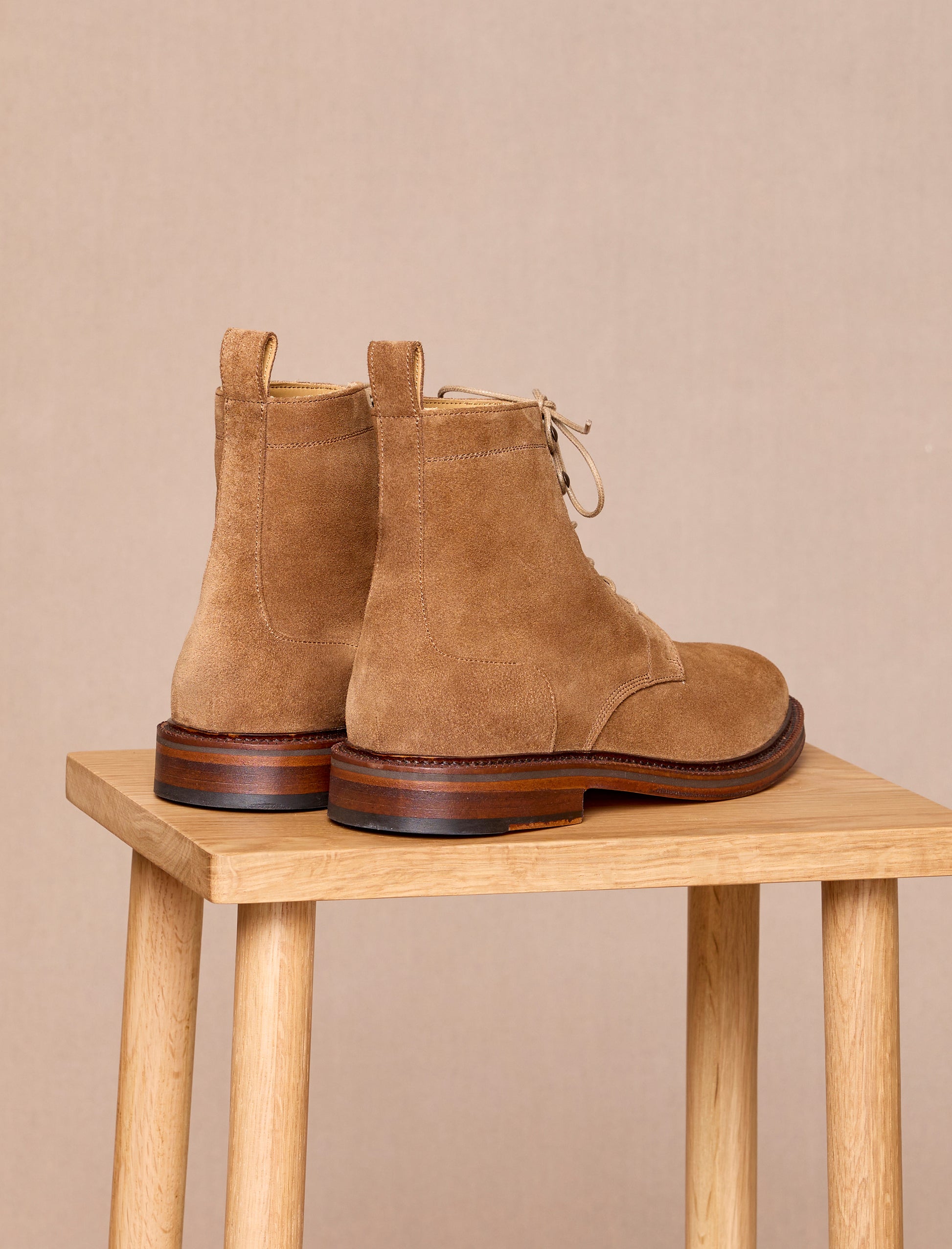- Combat boots en cuir veau velours camel