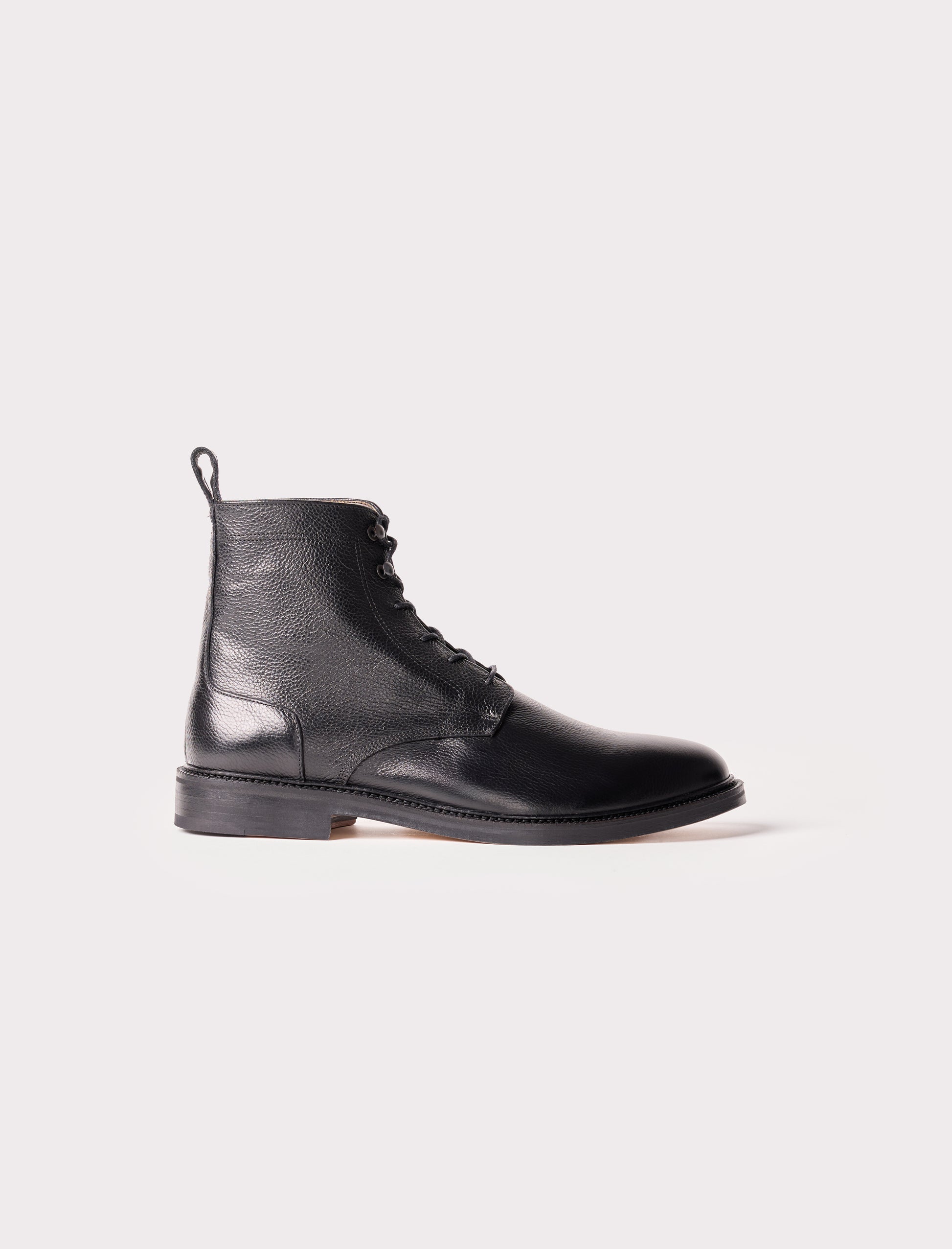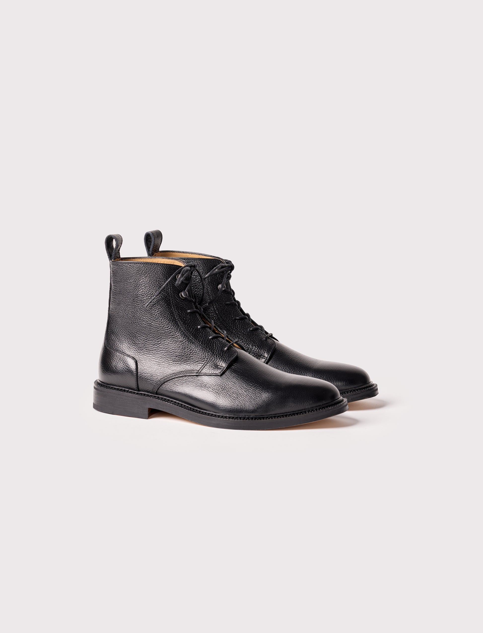 - Bottines combat boots en cuir de vachette noir grainé