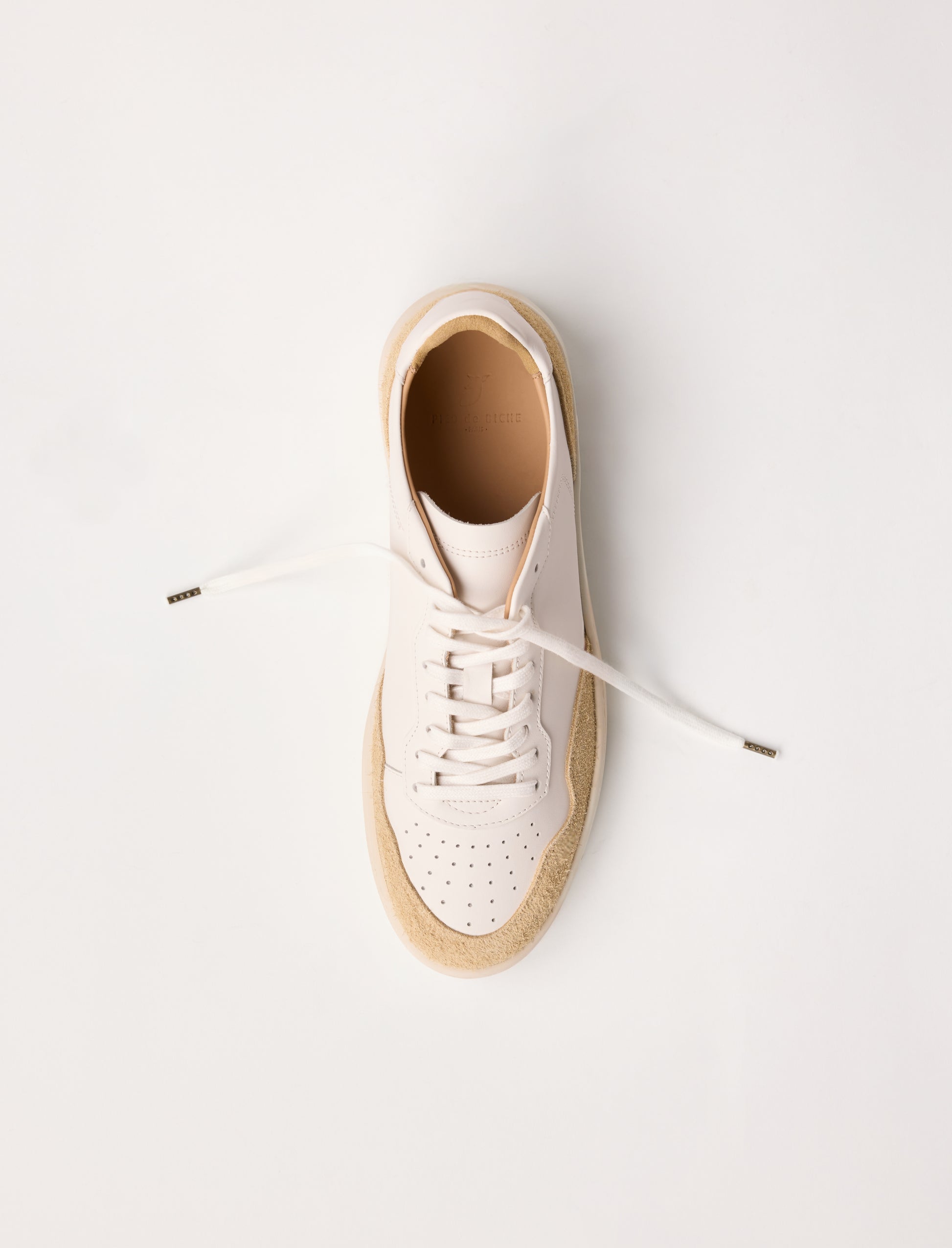- Sneakers en cuir lisse de vachette, avec empiècements en cuir texturé : hairy suède