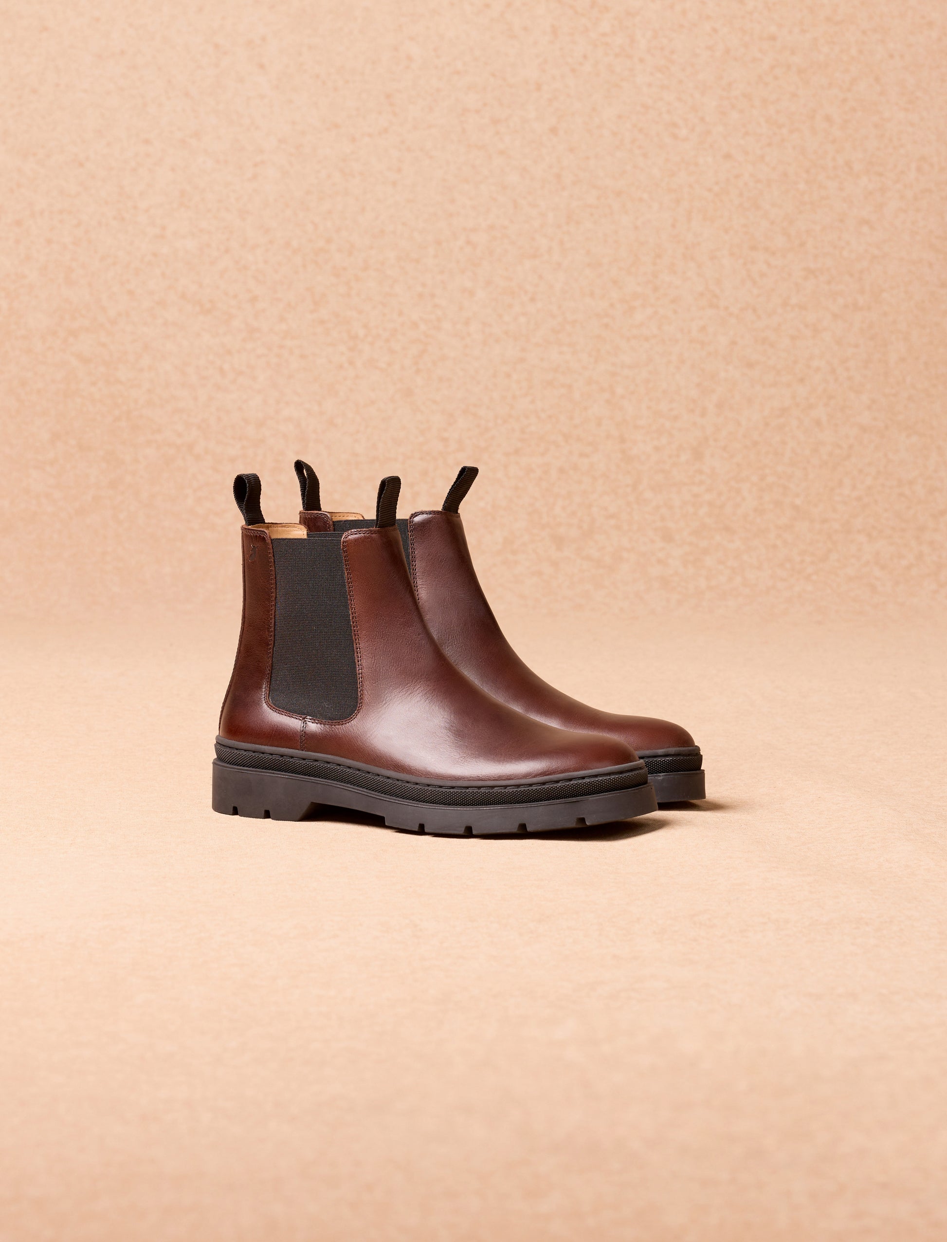 Avec leur allure classique et leur confort au quotidien, les chelsea boots Franklin sont rapidement devenues une valeur sûre chez Pied de Biche. Confectionnées en cuir pull-up marron tonka, ces bottines sont montées sur une semelle crantée en caoutchouc pour une bonne accroche. Les deux tirettes et le renfort arrière rendent l’enfilage facile et renforcent leur durabilité.