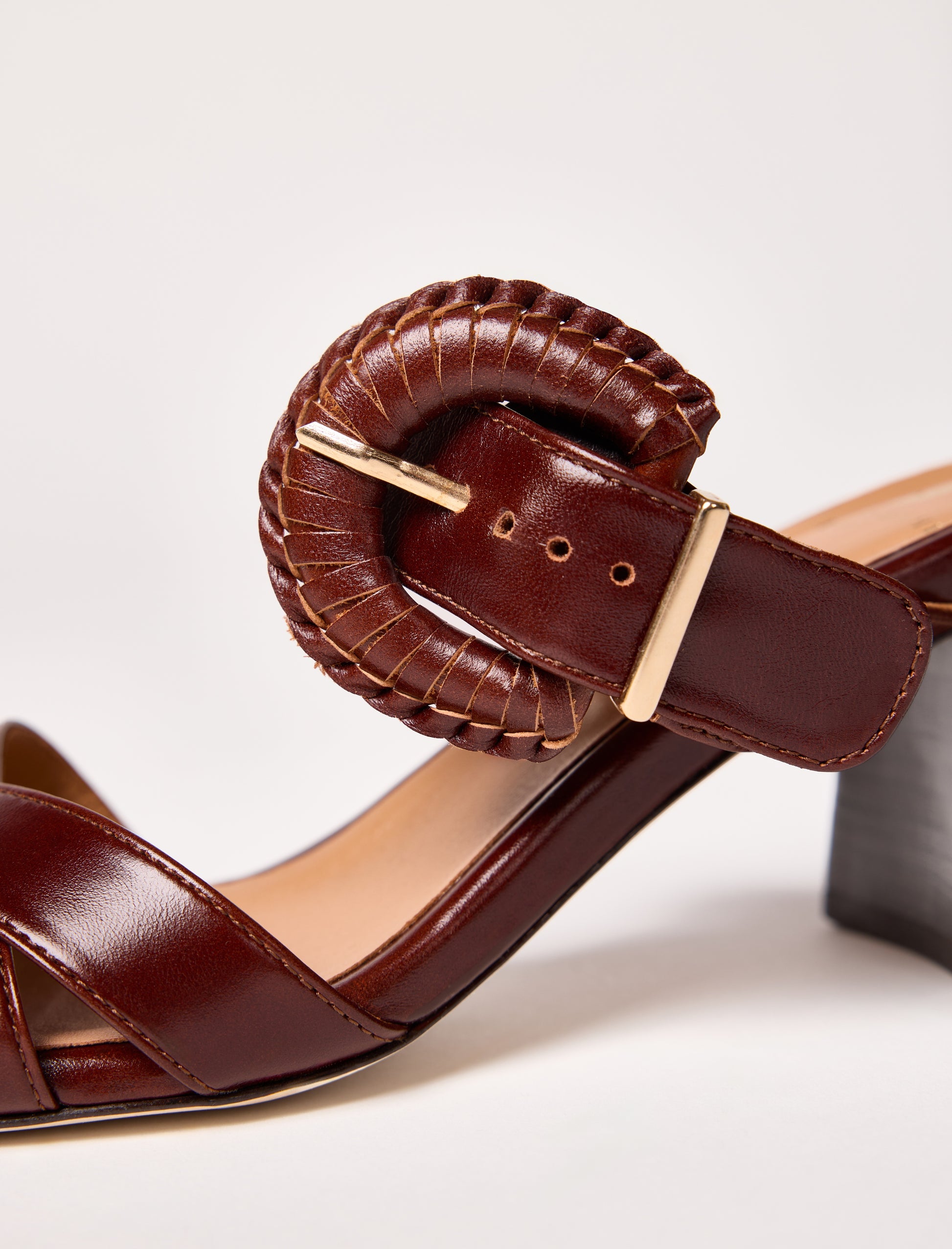 - Mules en cuir de vachette lisse vieilli bourgogne