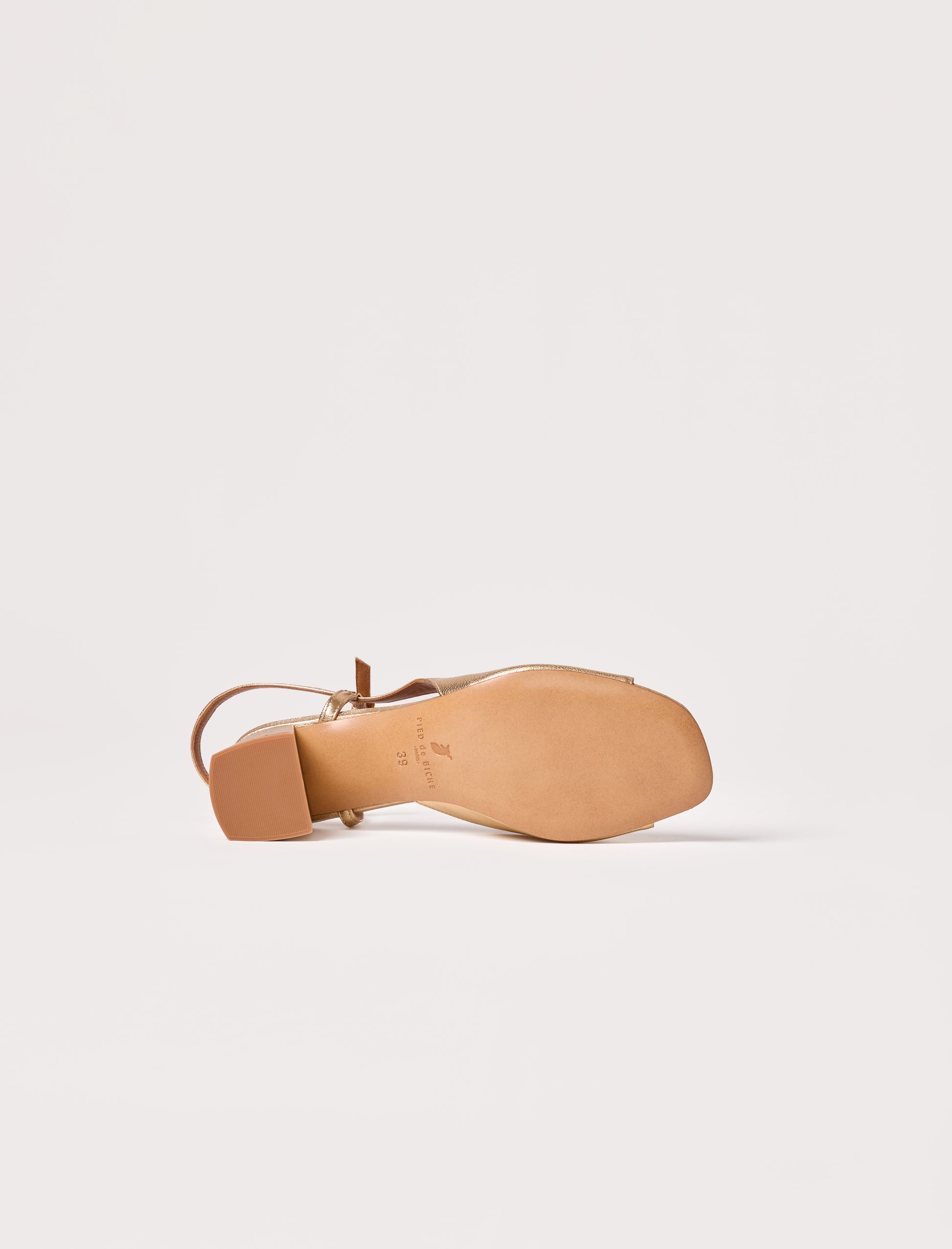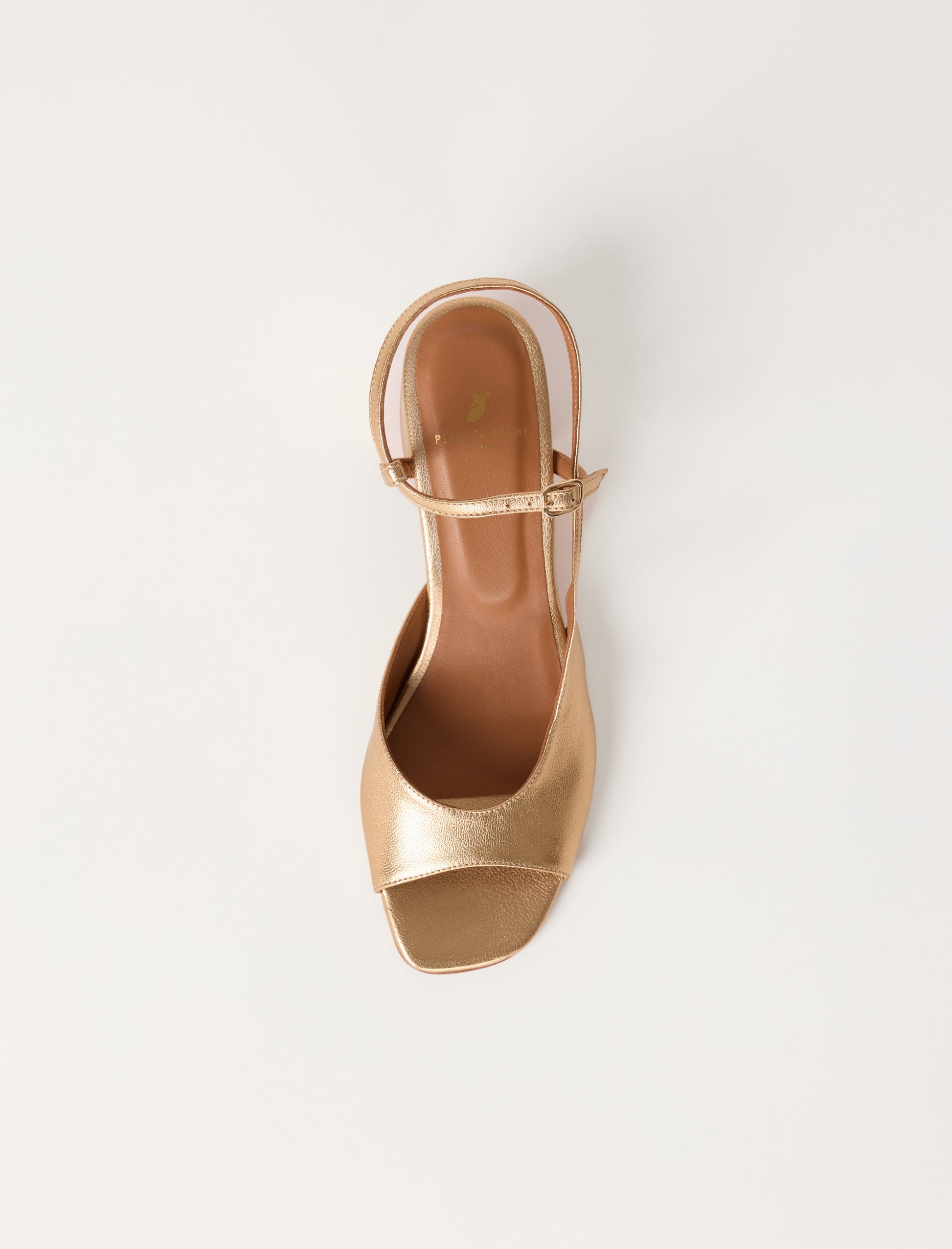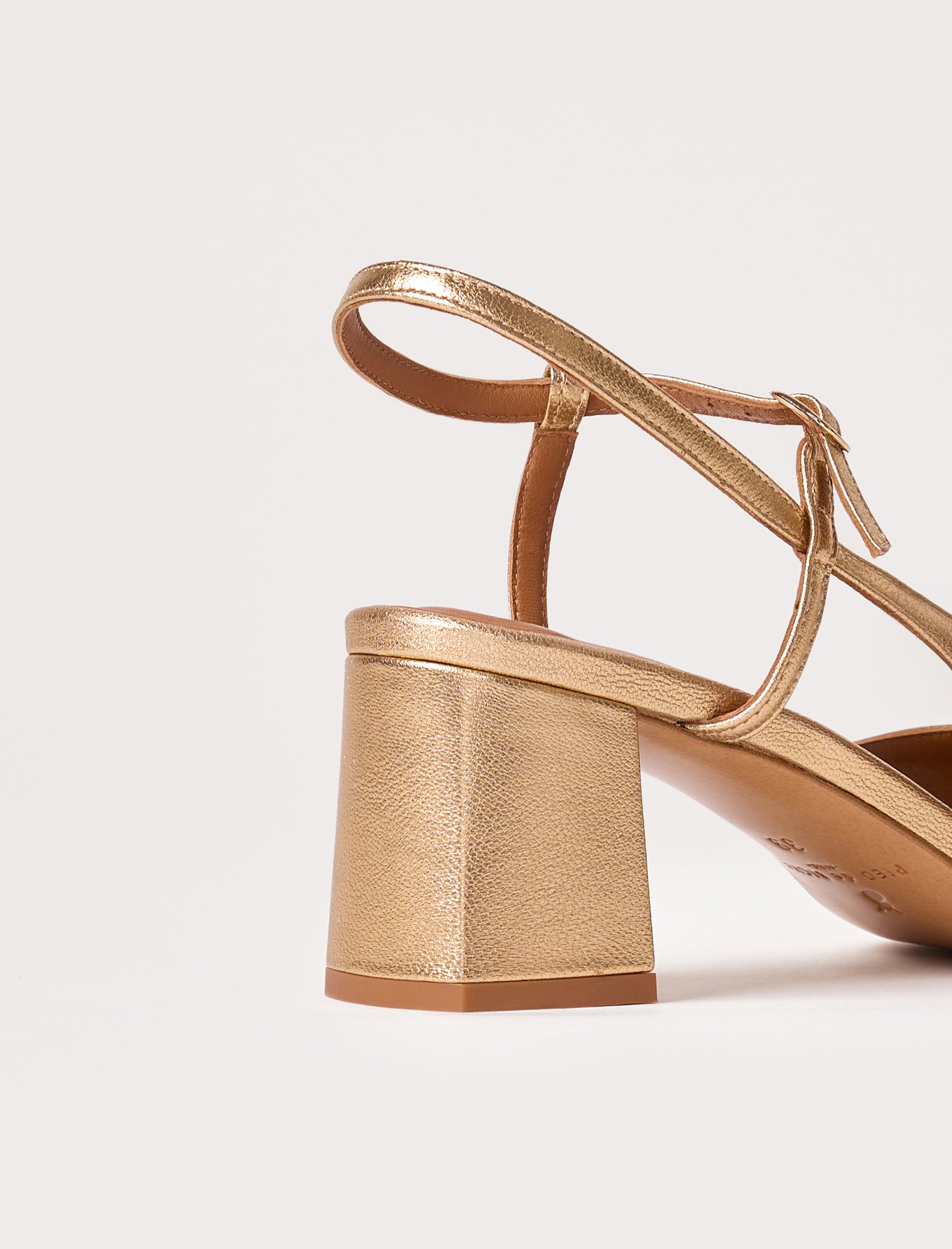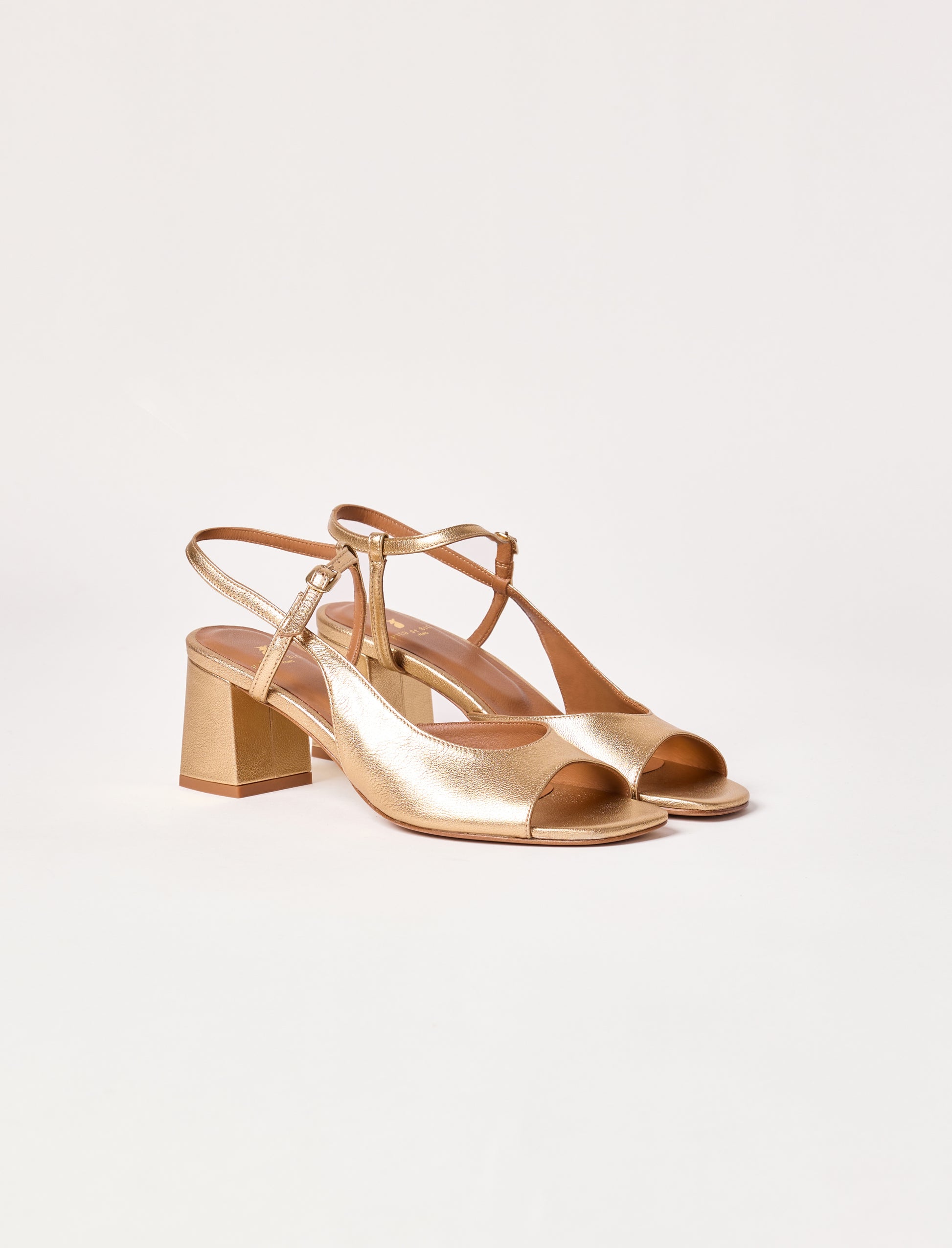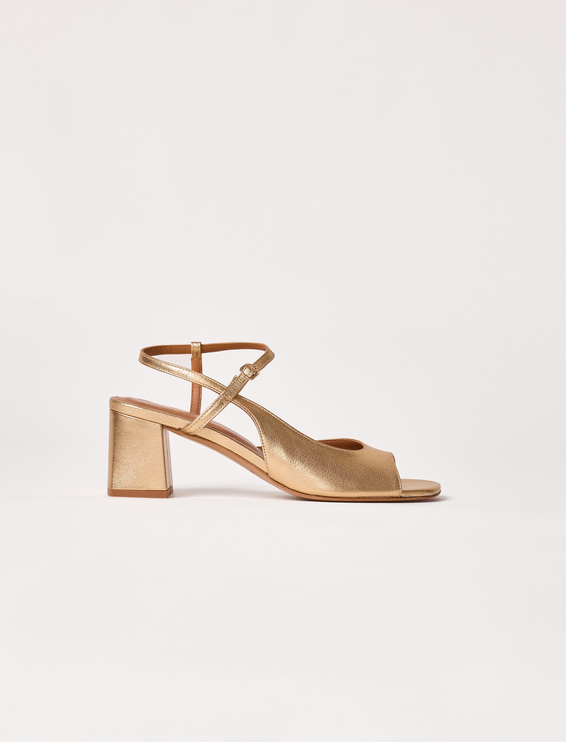 - Sandale asymétrique en cuir lamé de chèvre doré