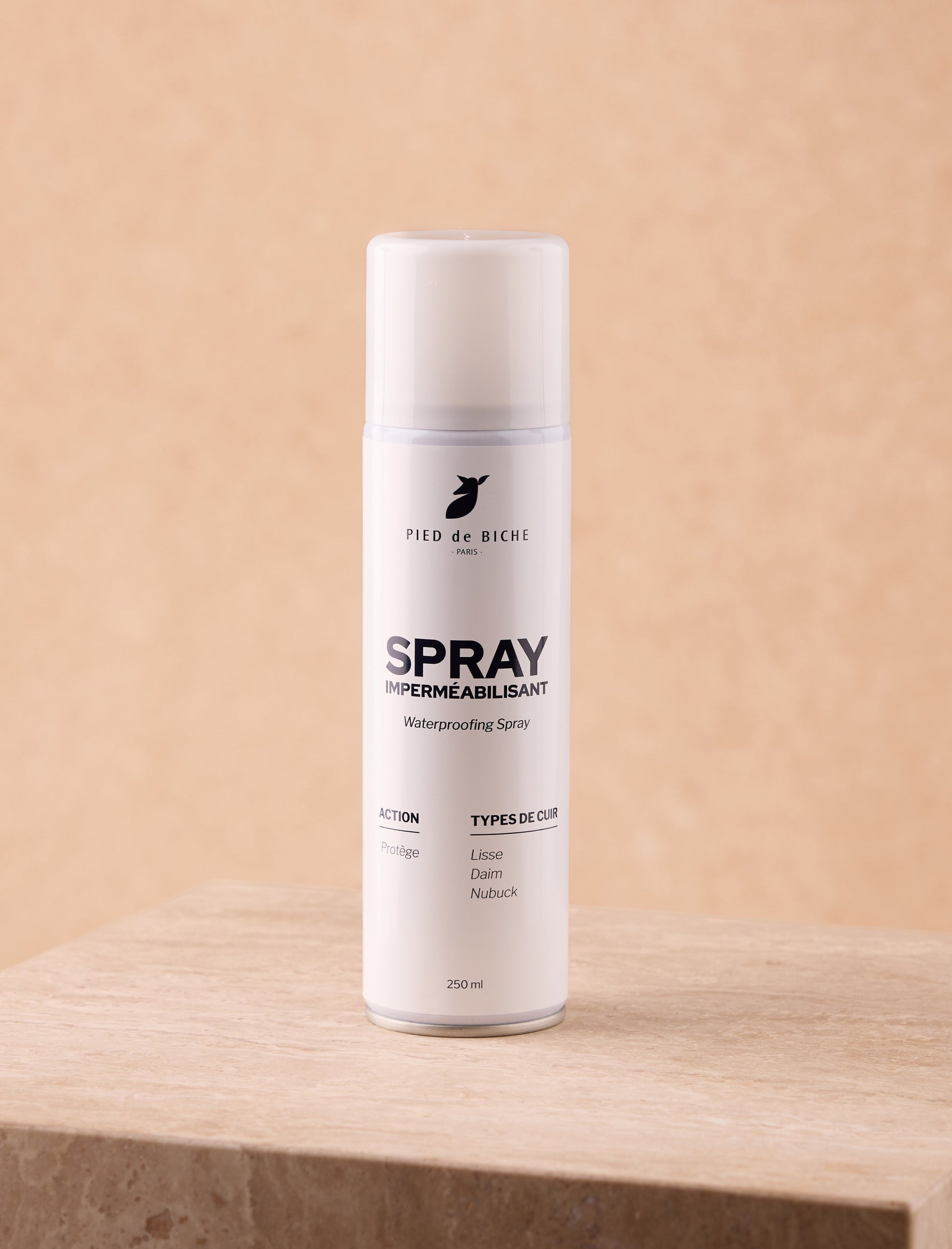 - La bombe imperméabilisante Pied de Biche a été conçue spécifiquement pour tous les cuirs que nous utilisons pour confectionner nos souliers