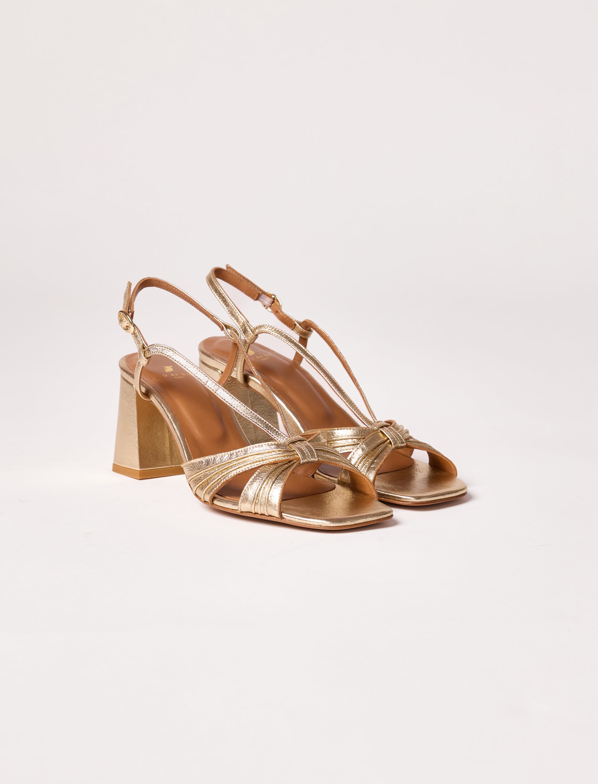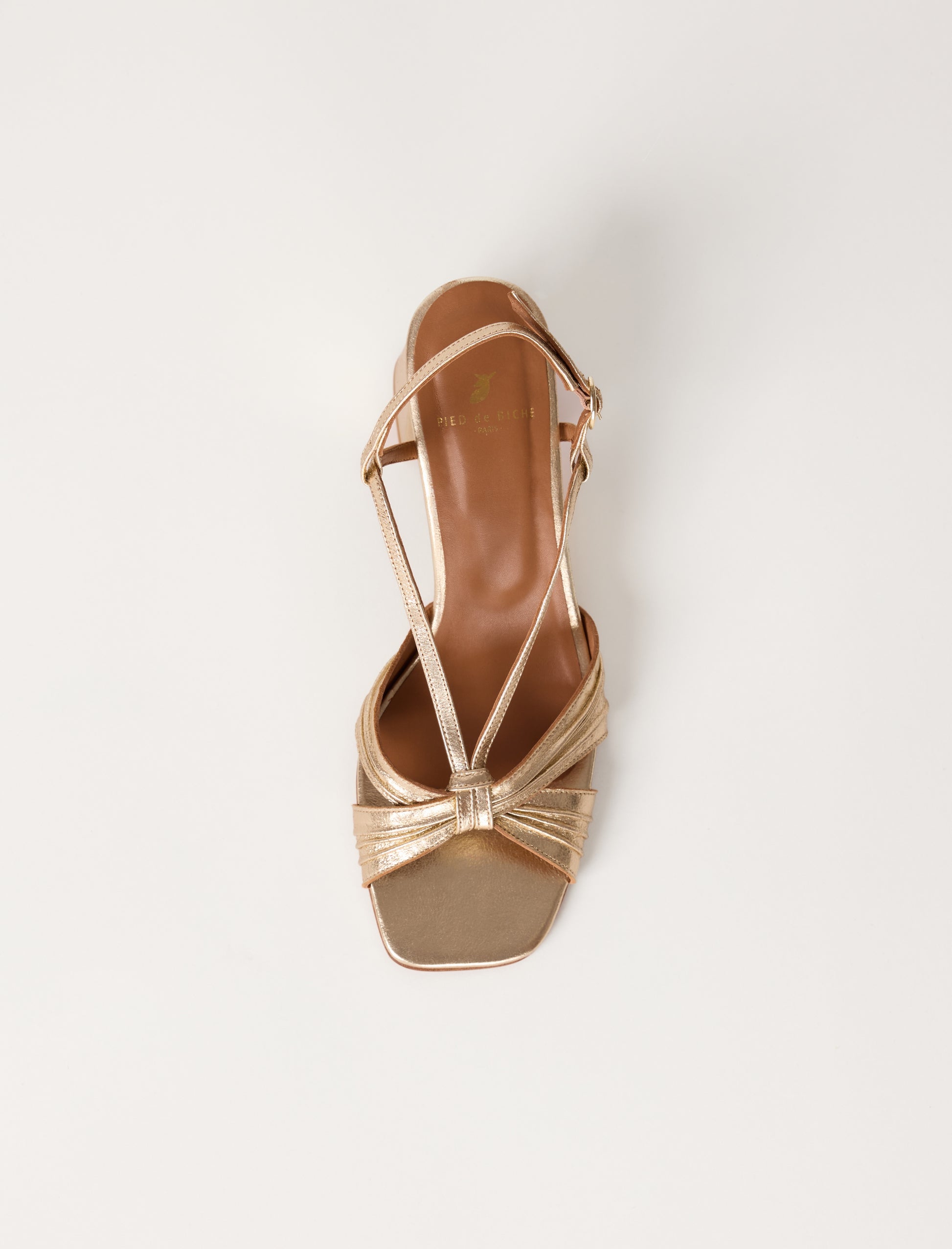 - Sandales slingback en cuir lamé de chèvre, dotées d’un drapé sur l’avant et de brides nouées au centre du pied