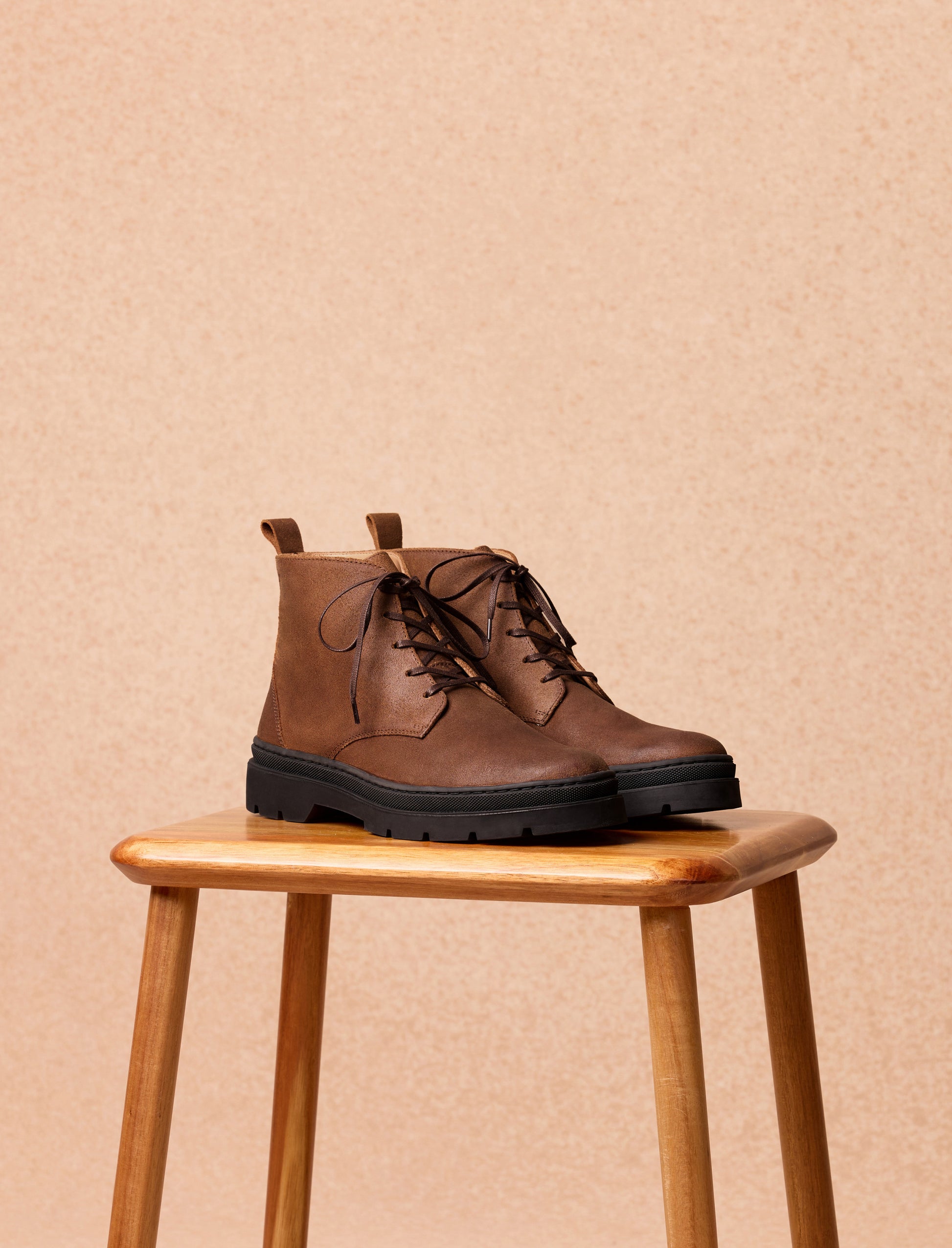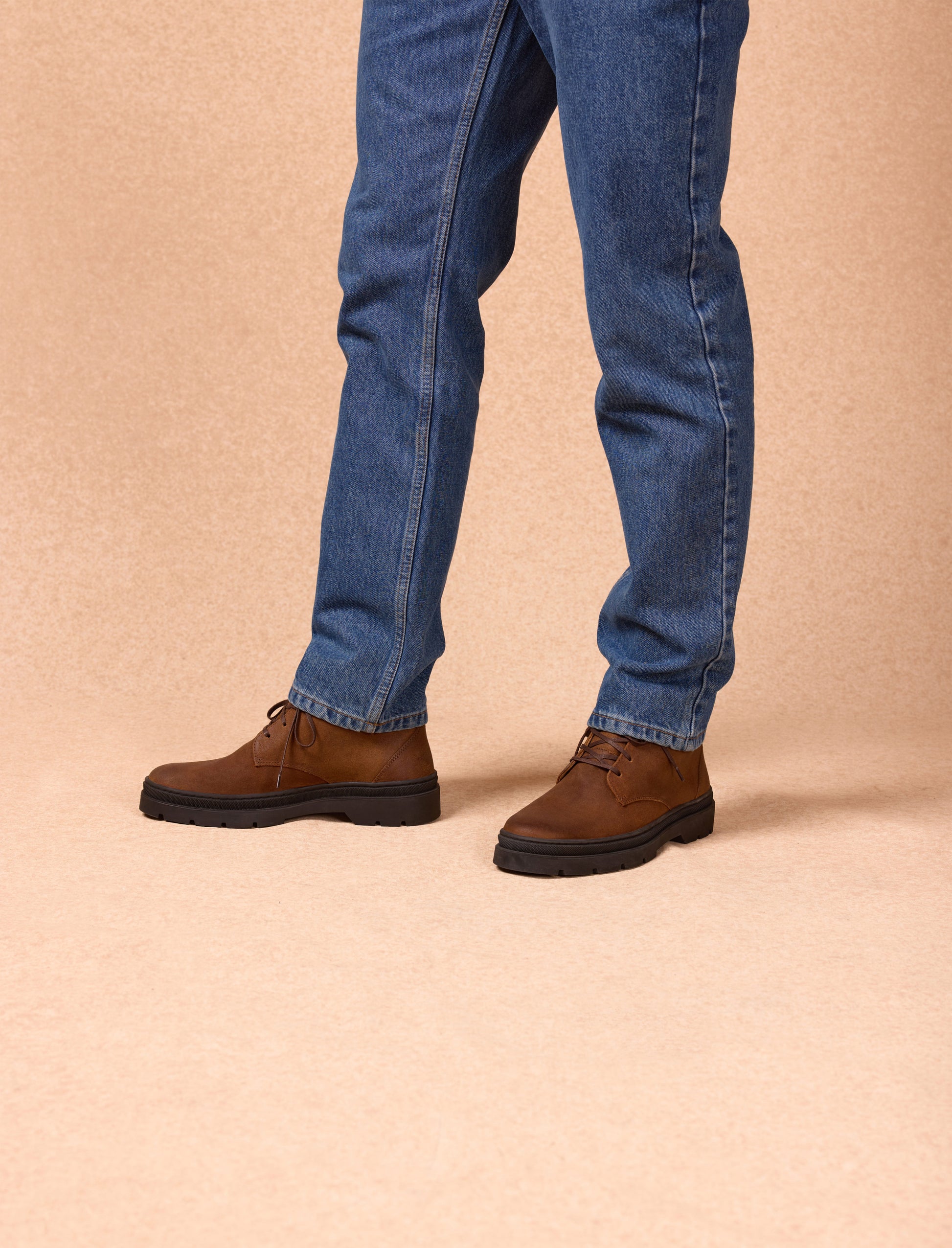 La bottine Jack, chukka boots en cuir de vachette split écorce, mise sur un style simple et authentique. Conçue avec un cuir italien de qualité et montée sur une semelle crantée en caoutchouc, elle offre à la fois résistance et confort. Son montage cousu latéral garantit solidité et souplesse, parfaite pour accompagner vos looks au quotidien.