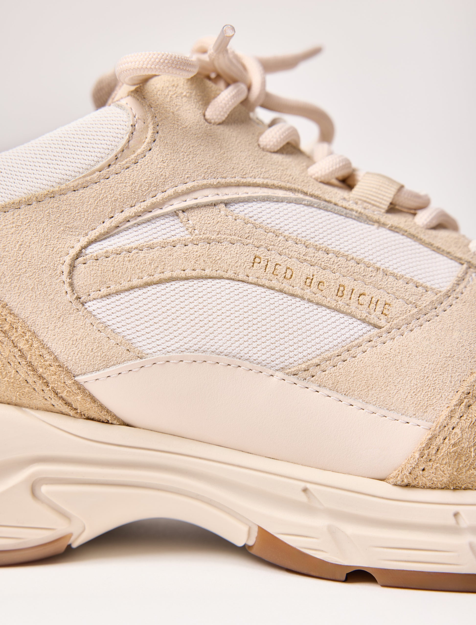 Inspirées de la tendance dad shoes, la sneakers Léo adopte un style résolument streetwear. Son mix de matières : mesh respirant, cuir suède et cuir lisse beige crée une silhouette texturée et moderne. Légère et confortable grâce à sa doublure en mesh et sa semelle épaisse, elle accompagne vos journées avec aisance et caractère.