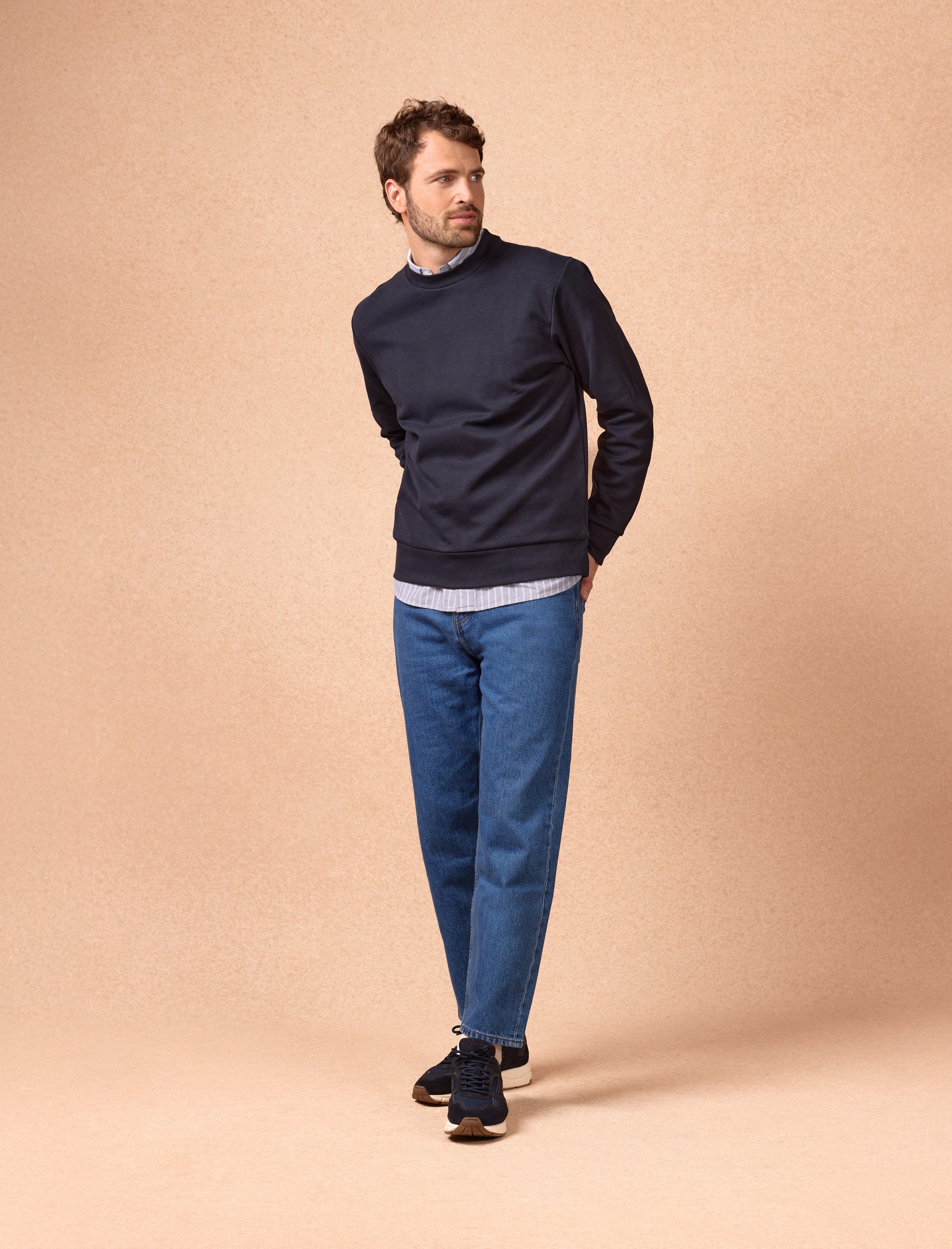 Pensée pour le quotidien, la sneakers Léo adopte un style résolument streetwear. Son mix de matières : mesh respirant, cuir suède et cuir lisse bleu navy crée une silhouette texturée et moderne. Grâce à sa doublure en mesh, elle reste légère et agréable à porter toute la journée. Un modèle urbain, facile à porter, à l’allure affirmée.