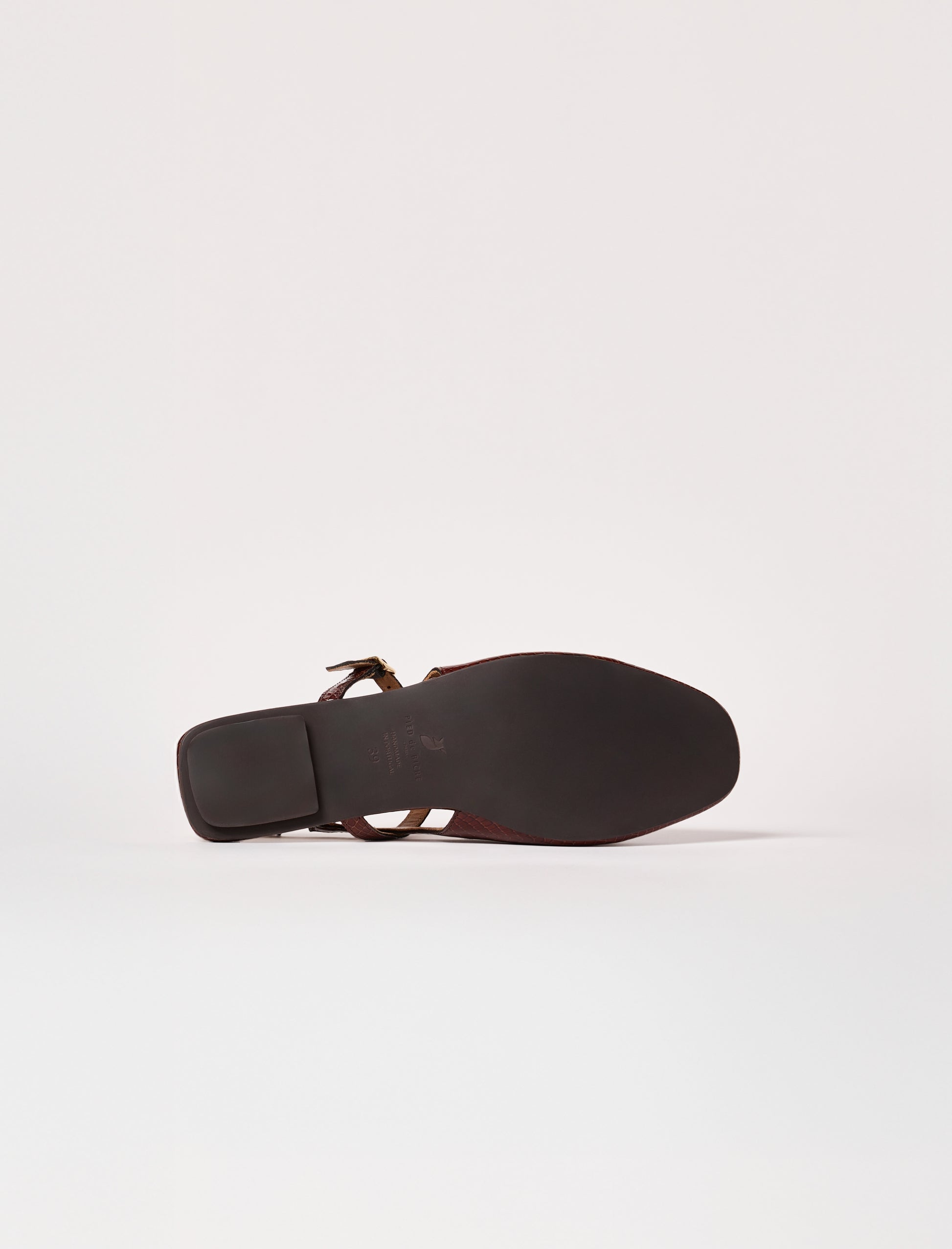 - Arrière carré, agrémenté d’un petit talon subtilement encastré dans la semelle